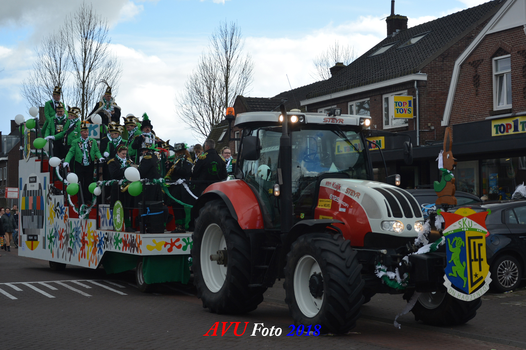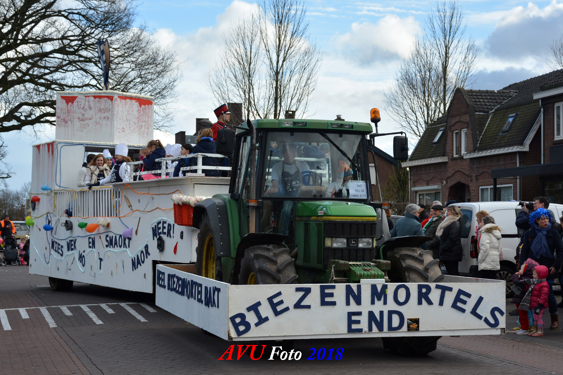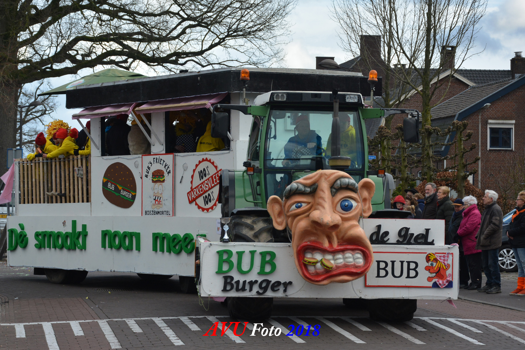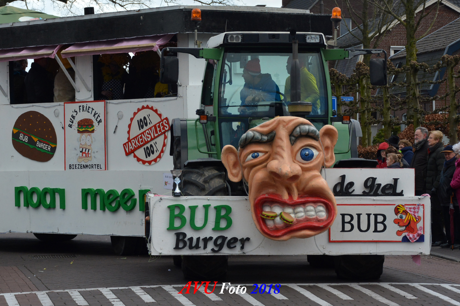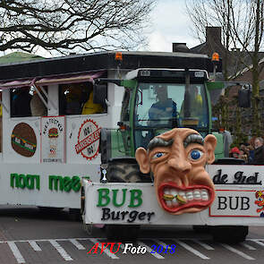 Tussen de hagelbuien door verschenen zoals elk jaar diverse losse groepen en menig landbouwtrekker of ander voertuig om een buurtschap te vertegenwoordigen in dn opstoet. De opgebouwde noodstroomaggregaten en hun geluids- en lichtinstallaties zorgden voor een uitbundig feest in het dorp, zeker ook later op de avond.