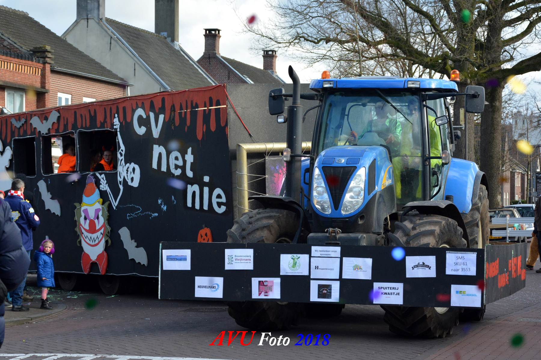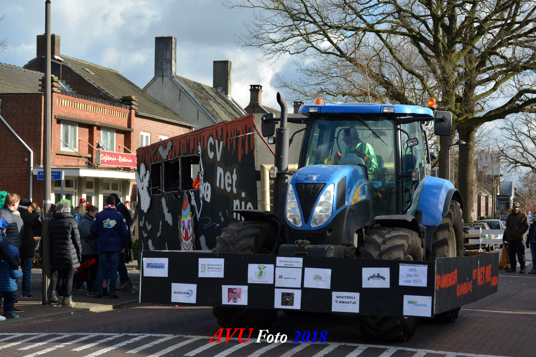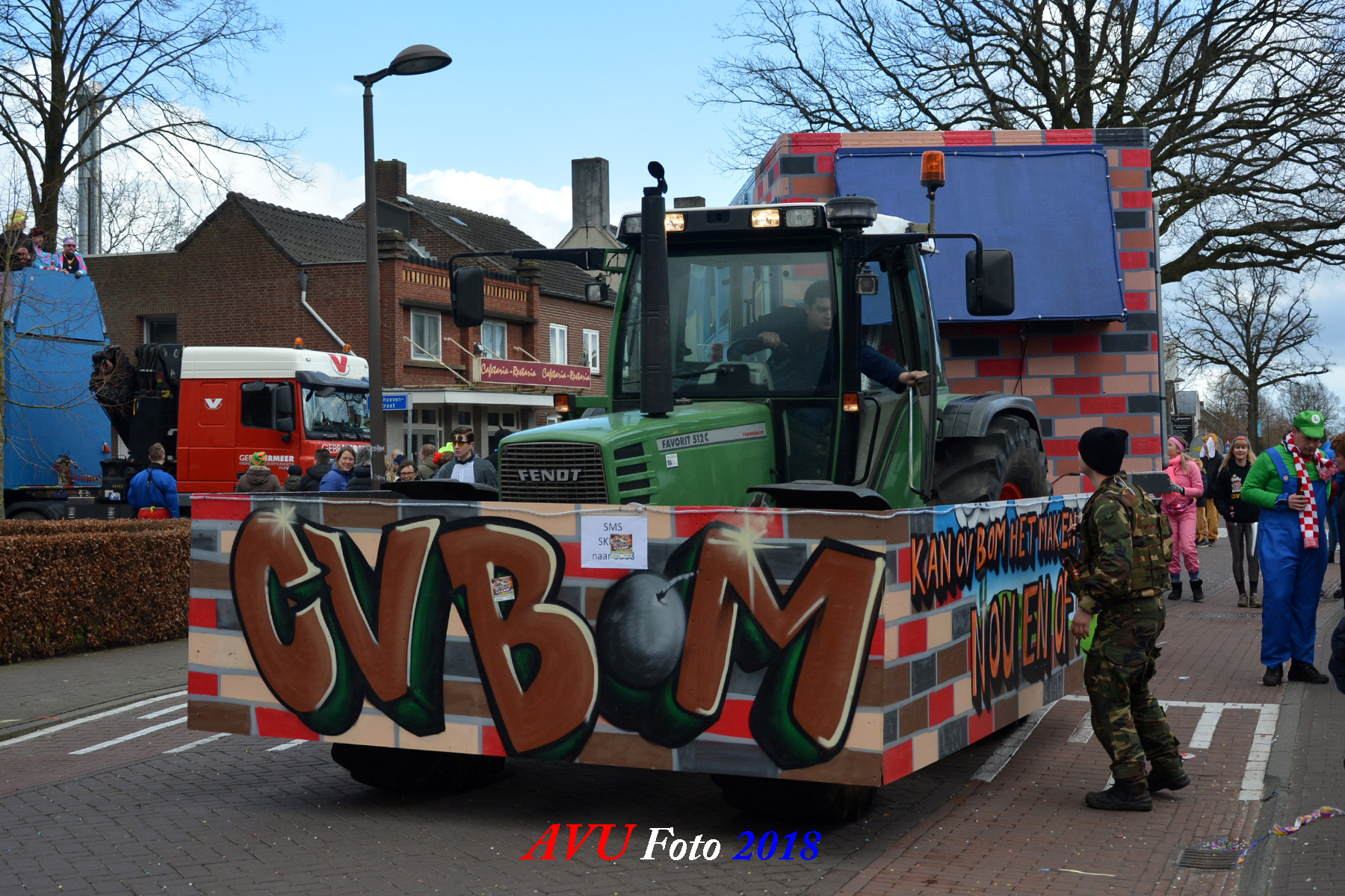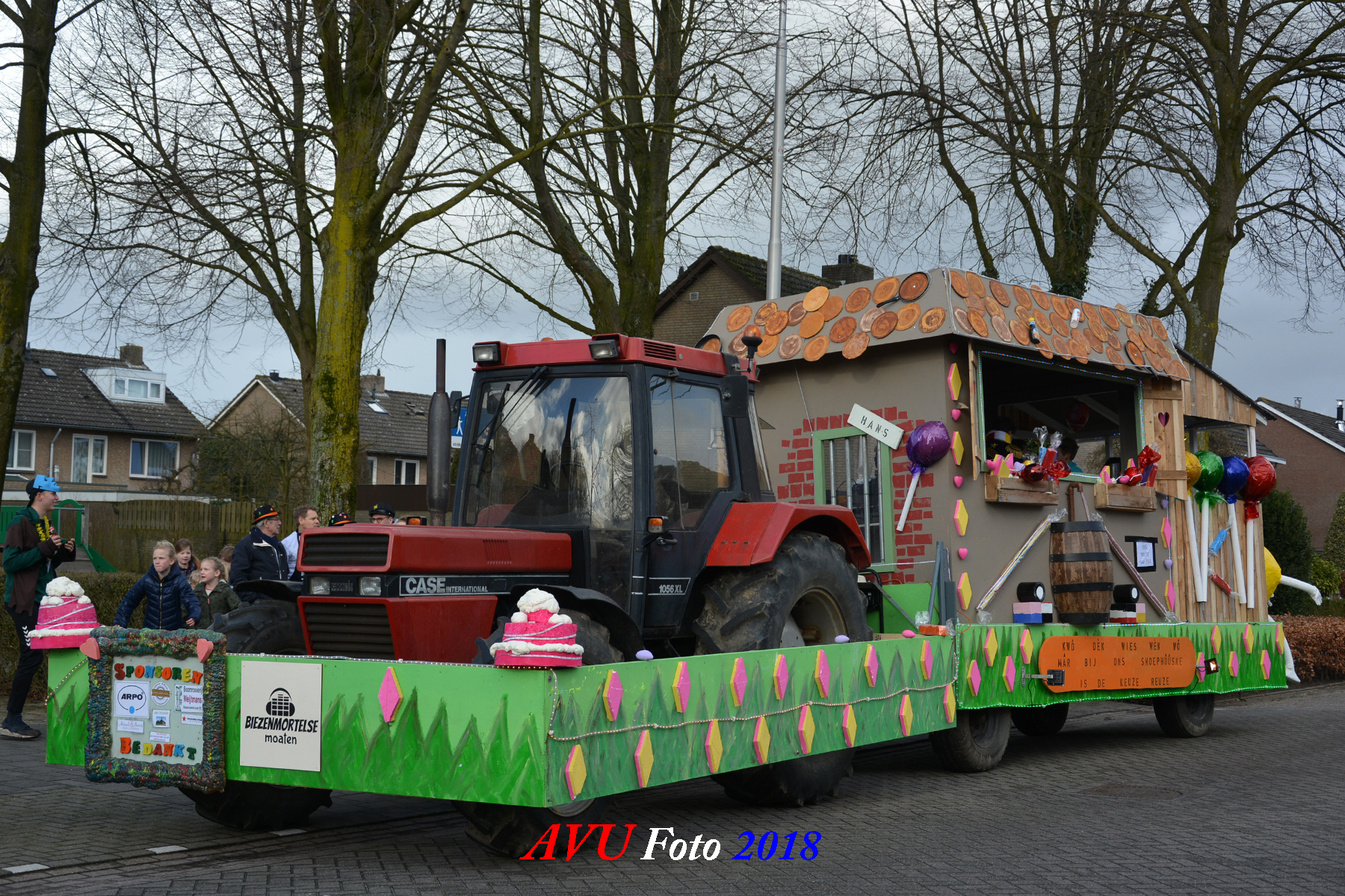 Tussen de hagelbuien door verschenen zoals elk jaar diverse losse groepen en menig landbouwtrekker of ander voertuig om een buurtschap te vertegenwoordigen in dn opstoet. De opgebouwde noodstroomaggregaten en hun geluids- en lichtinstallaties zorgden voor een uitbundig feest in het dorp, zeker ook later op de avond.