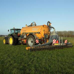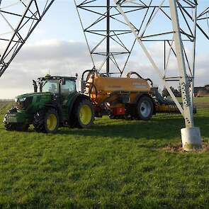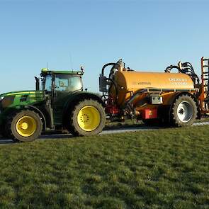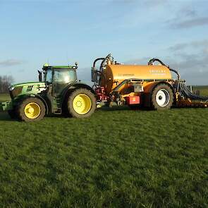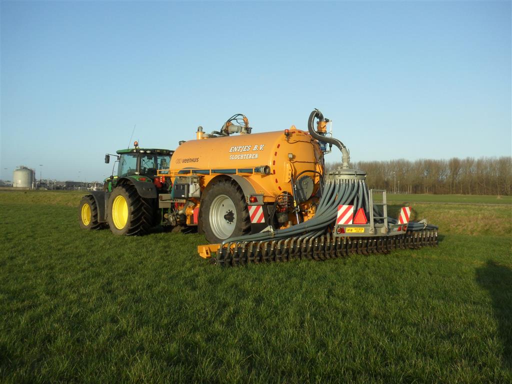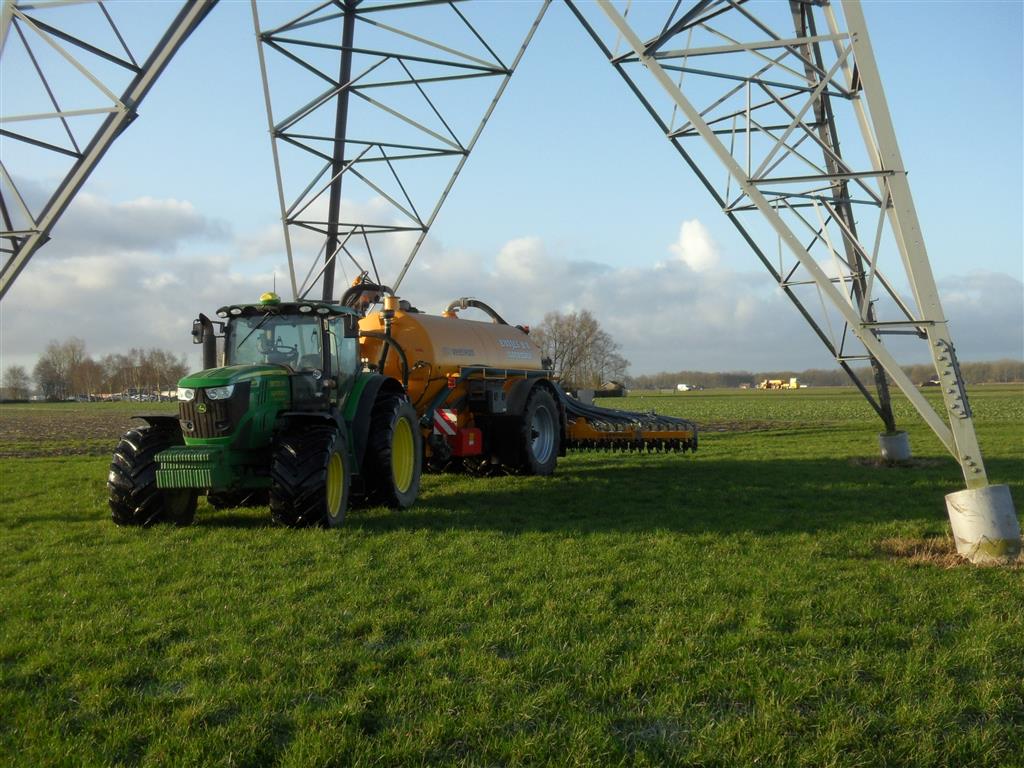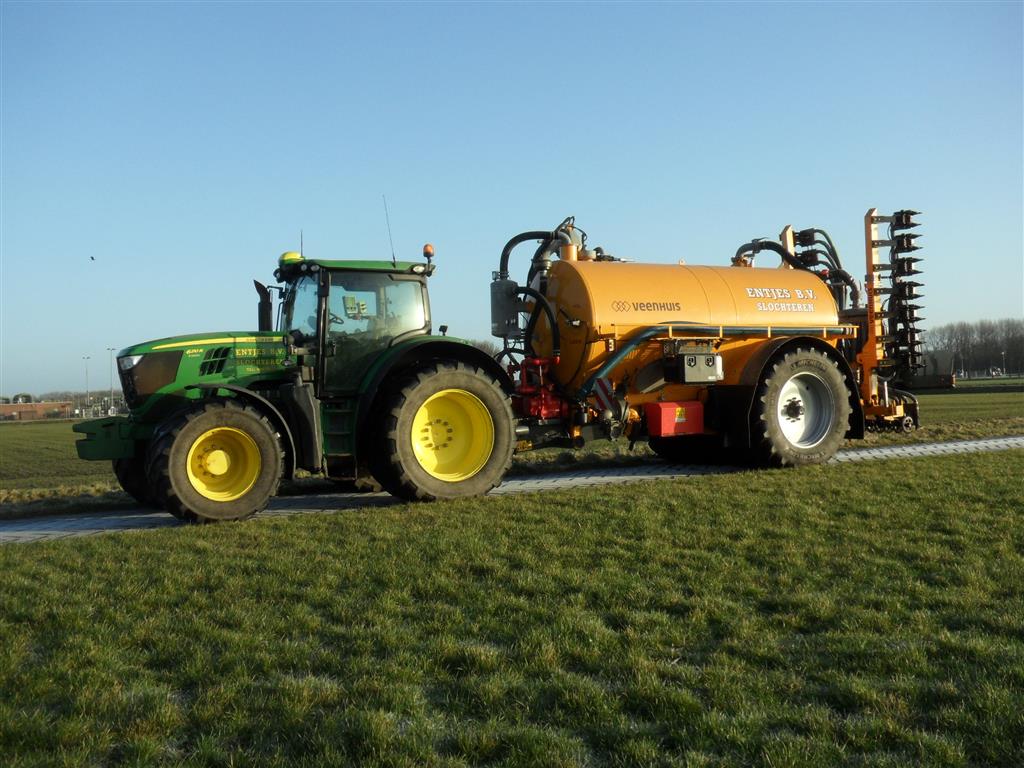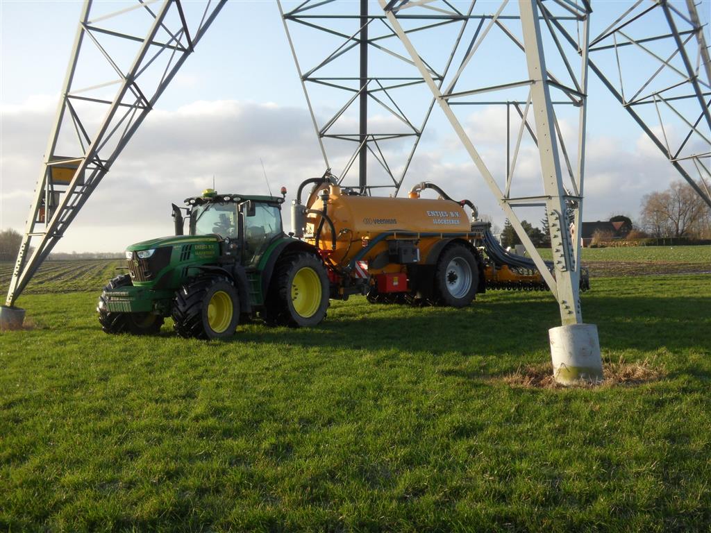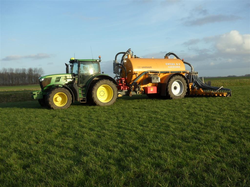 Entjes Slochteren ook weer volop in de mest met de John Deere 6210R + Veenhuis 11 M3 Premium quad mest tank.