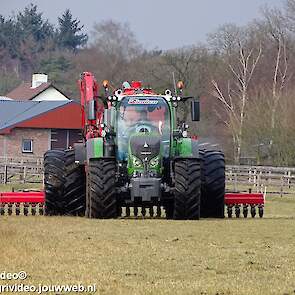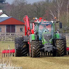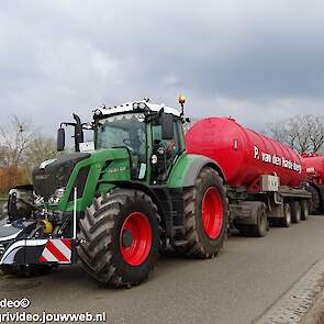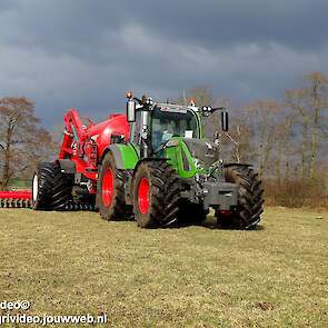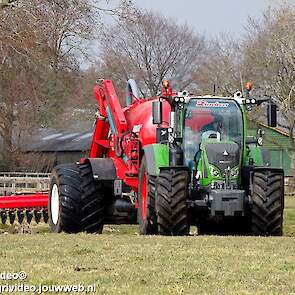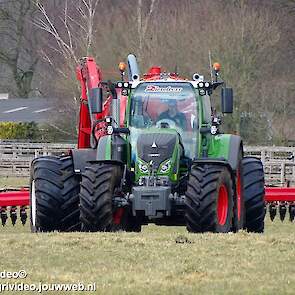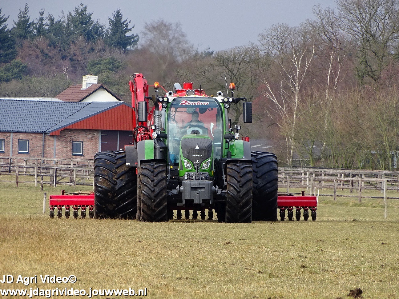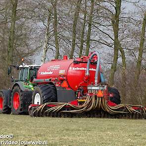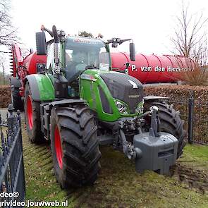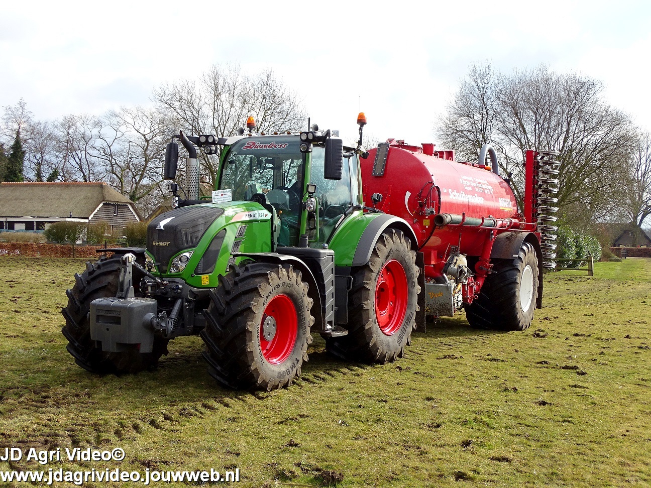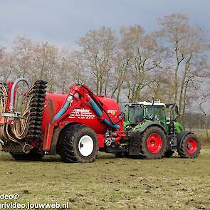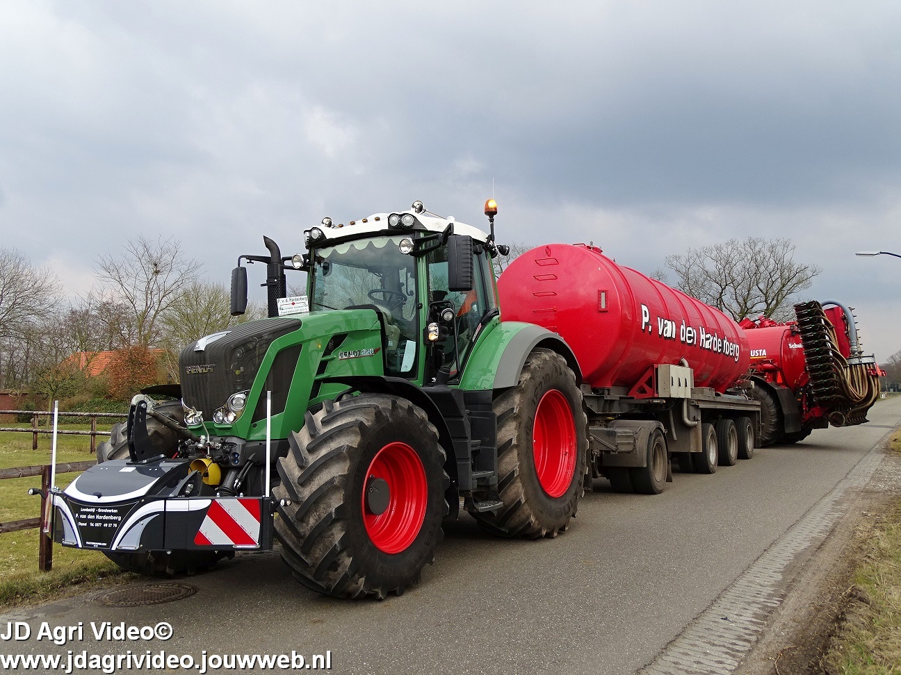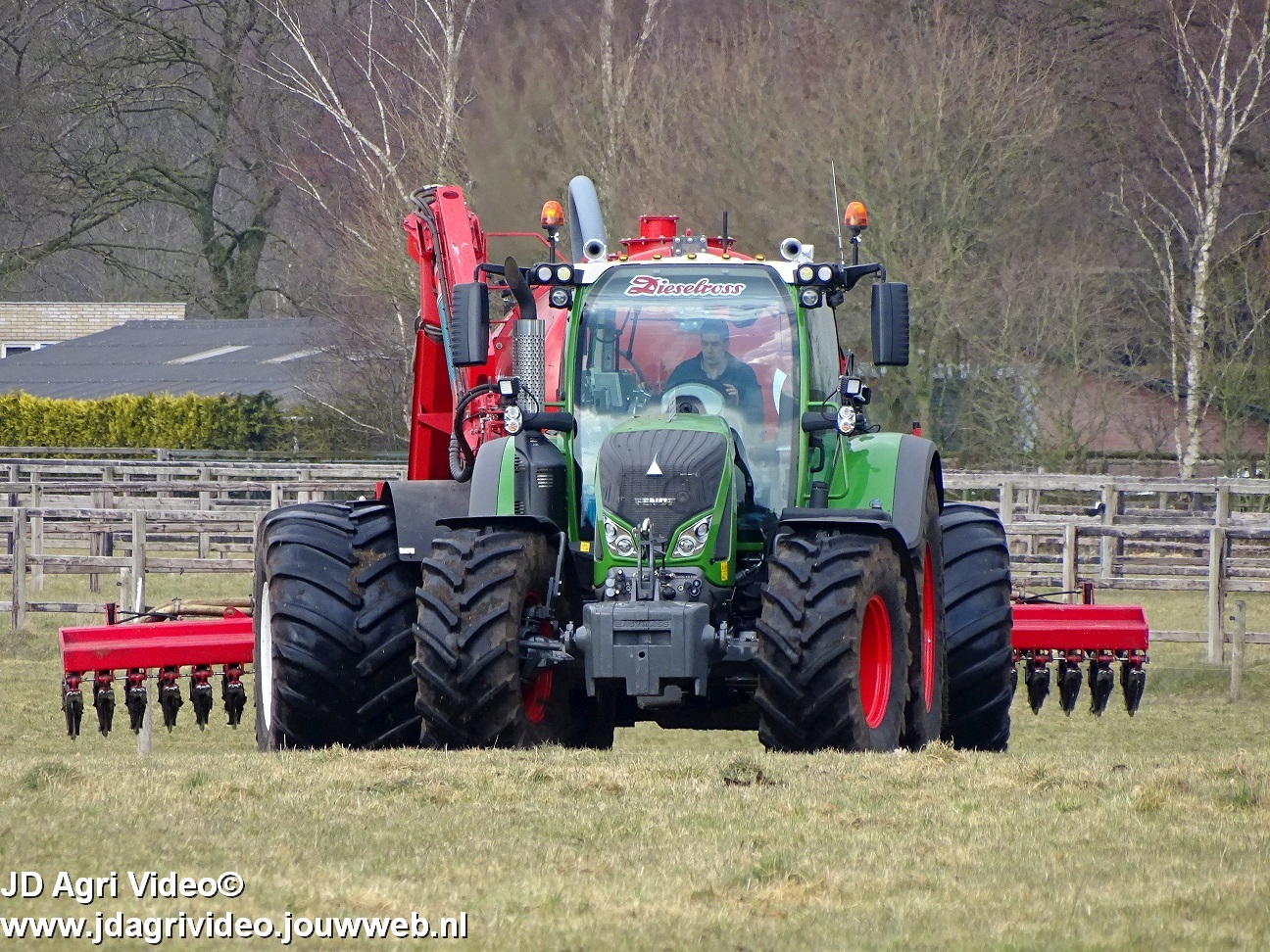 Loonbedrijf P van den Hardenberg uit Elspeet aan het mest injecteren met de nieuwe Fendt 724 met Schuitemaker Robusta mesttank en voor het transport de pas aangeschafte Fendt 828.