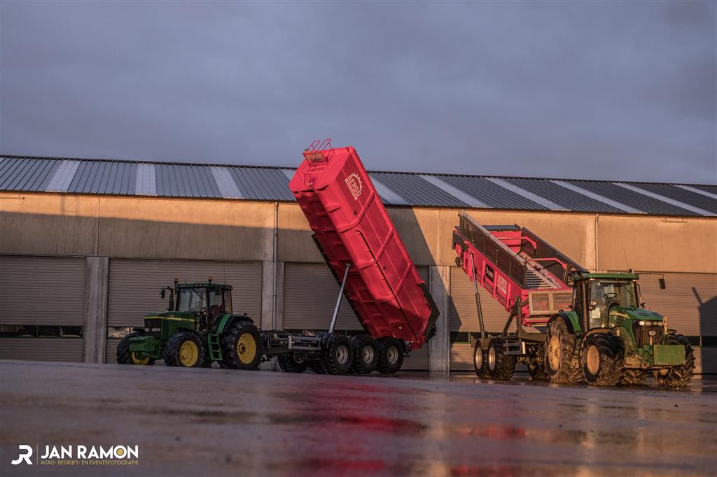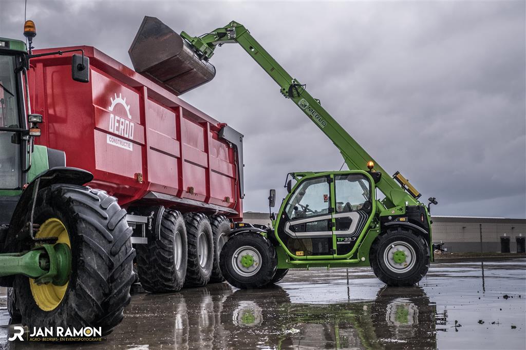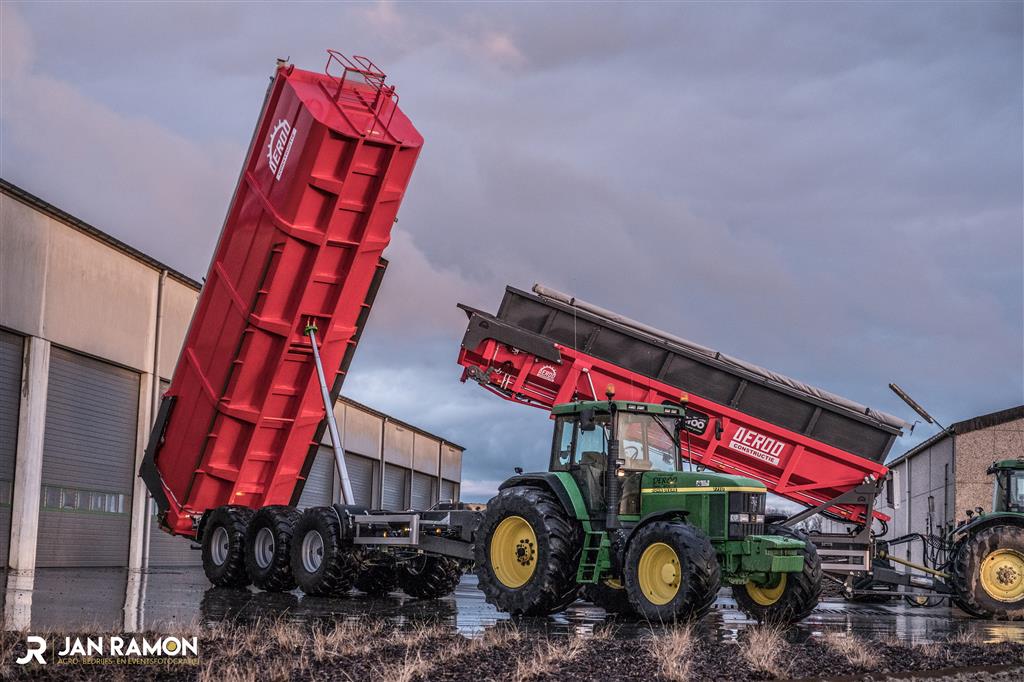 Het Belgische bedrijf Deroo stelde onlangs een nieuwe volumekipper voor. Deze kipper is ontworpen om een hoog gewicht aan lichte producten te vervoeren, zoals wortelen, bonen en dergelijke. Deroo is ervan overtuigd dat deze kipper ook in Nederland gebruikt kan worden. Zo maakt het grote volume het mogelijk om deze kipper mee te sturen met een haksel-team, om daarmee grote hoeveelheden gras of maïs in één keer naar de kuil te vervoeren. De kipper kan ook in het oogst- en pootseizoen van aardappelen ingezet worden. De RVS vloer garandeert een hoge glijbaarheid van het product. Bijzonder aan de getoonde kipper is dat deze een afstandsbediening heeft. Dat maakt het bijvoorbeeld mogelijk om tijdens het triëren even iets bij de kippen, zonder in de trekker te moeten kruipen.