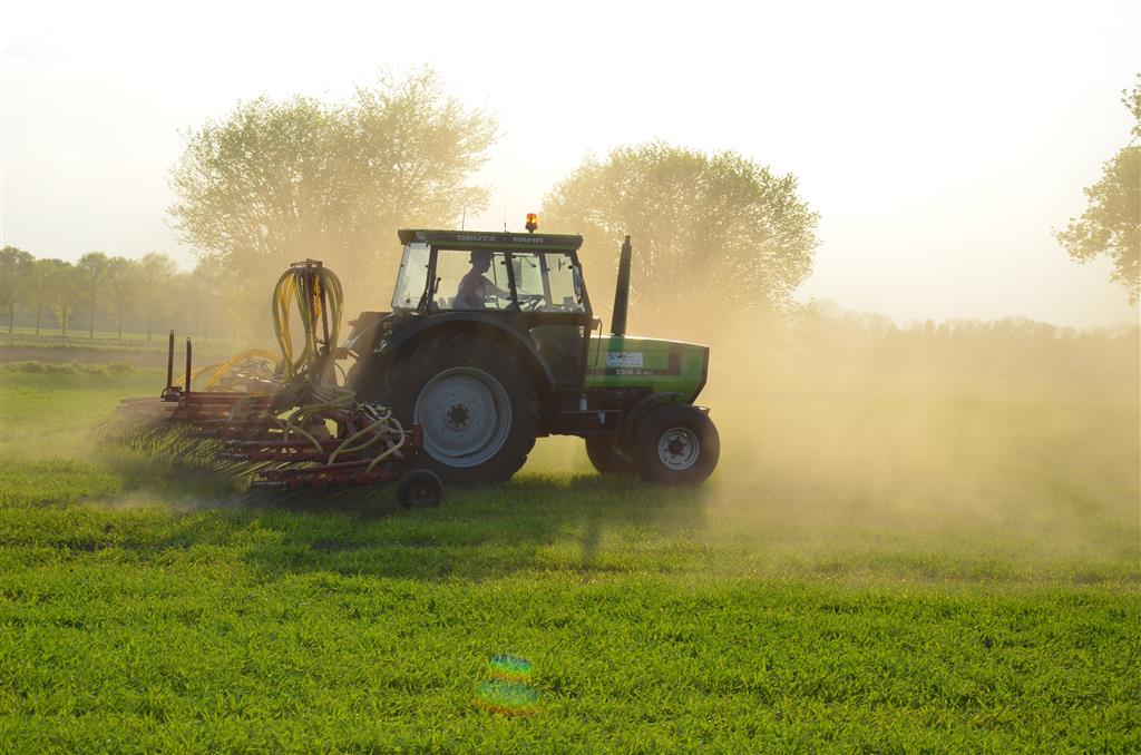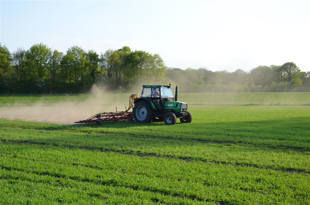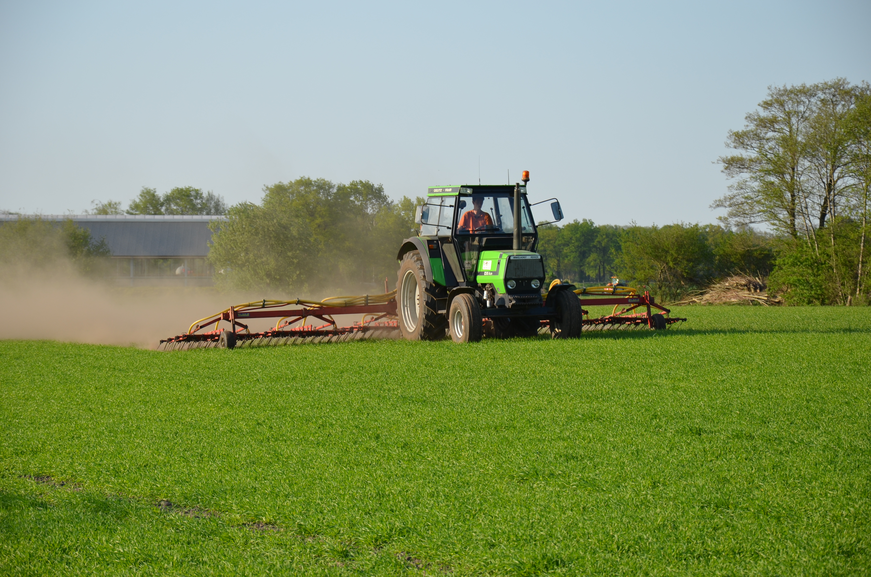 Wiedeggen in de triticale onder perfecte omstandigheden, met een Deutz-Fahr DX 4.20 van Loonbedrijf Winkelhorst uit Rekken.