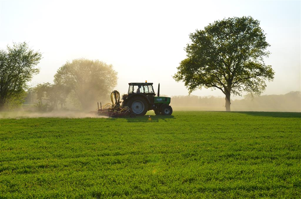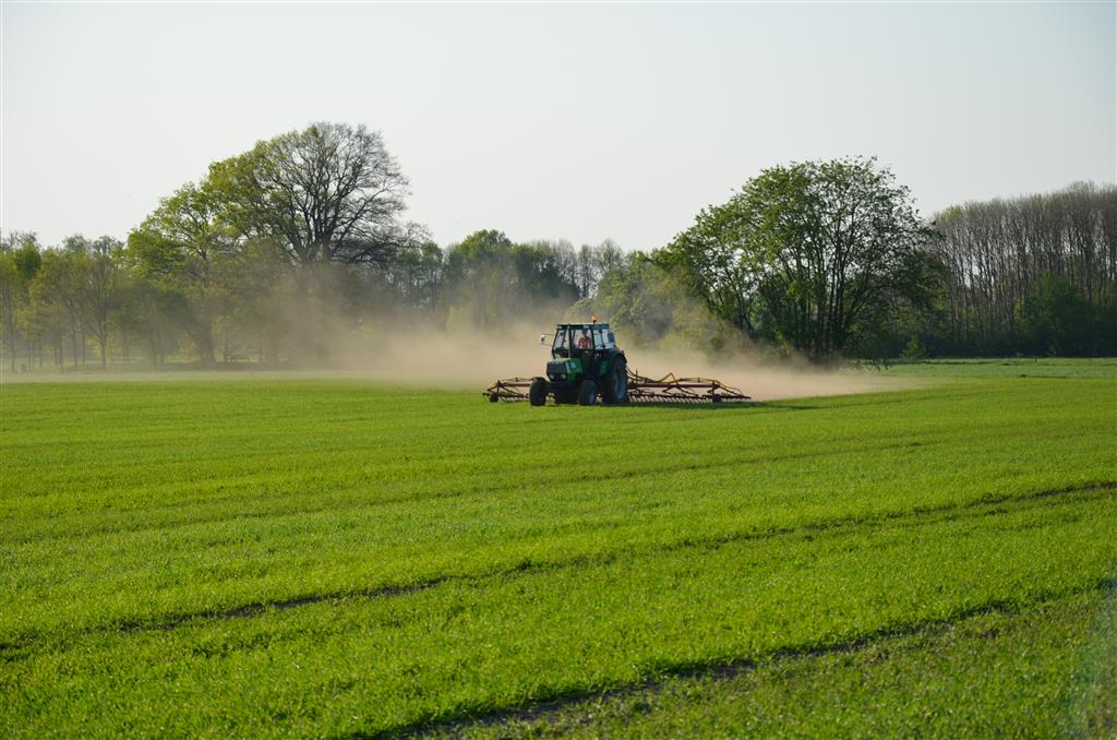 Loonbedrijf Winkelhorst aan het wiedeggen in graan