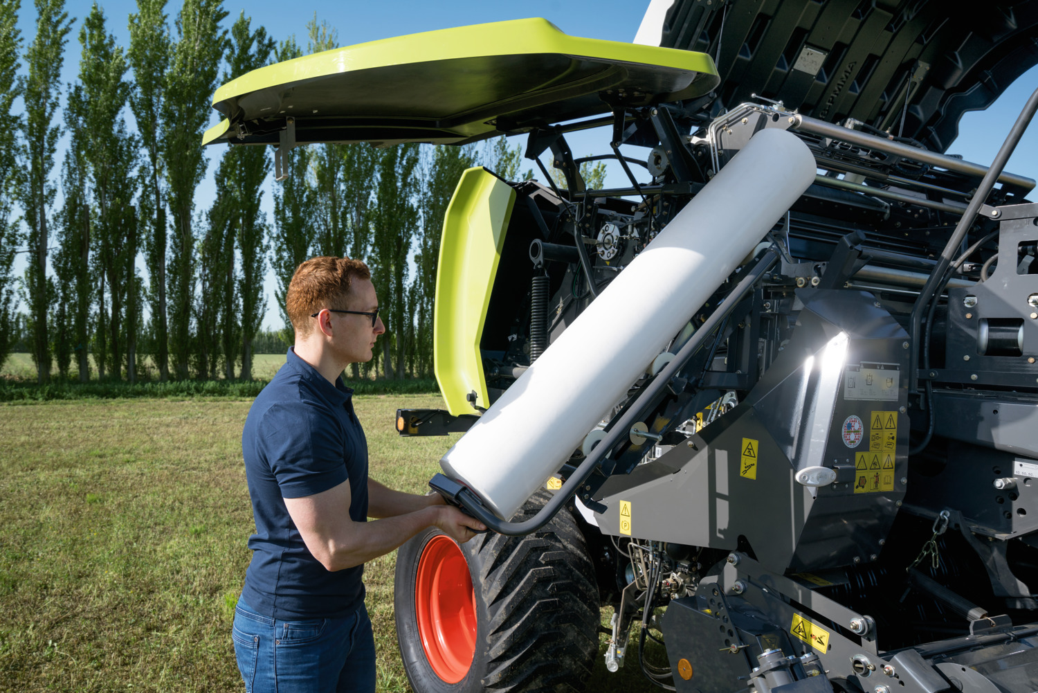 In de Rollant 540 heeft de gebruiker de keuze tussen net- en folieverpakking. Het wijzigen van de wikkelmodus is een gereedschapvrije bewerking, eenvoudig uitgevoerd door de zijschroeven van de geleiderol af te stellen. Een helling aan de rechterkant van de machine vereenvoudigt de taak van het laden van het wikkelsysteem. Een vervangende rol (folie of net) kan ook worden meegenomen. Met het Comfort-systeem als optionele uitrusting kunnen de wikkelsysteeminstellingen rechtstreeks vanuit de cabine worden uitgevoerd.