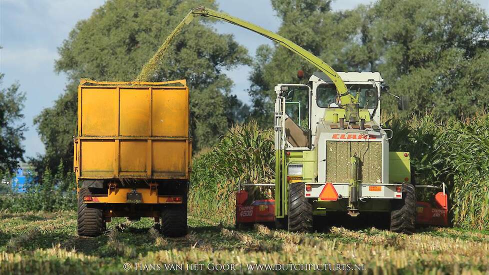 Maïs hakselen door maïsploeg Kootwijkerbroek Het Velkemeen