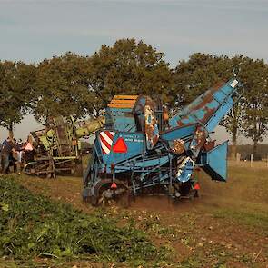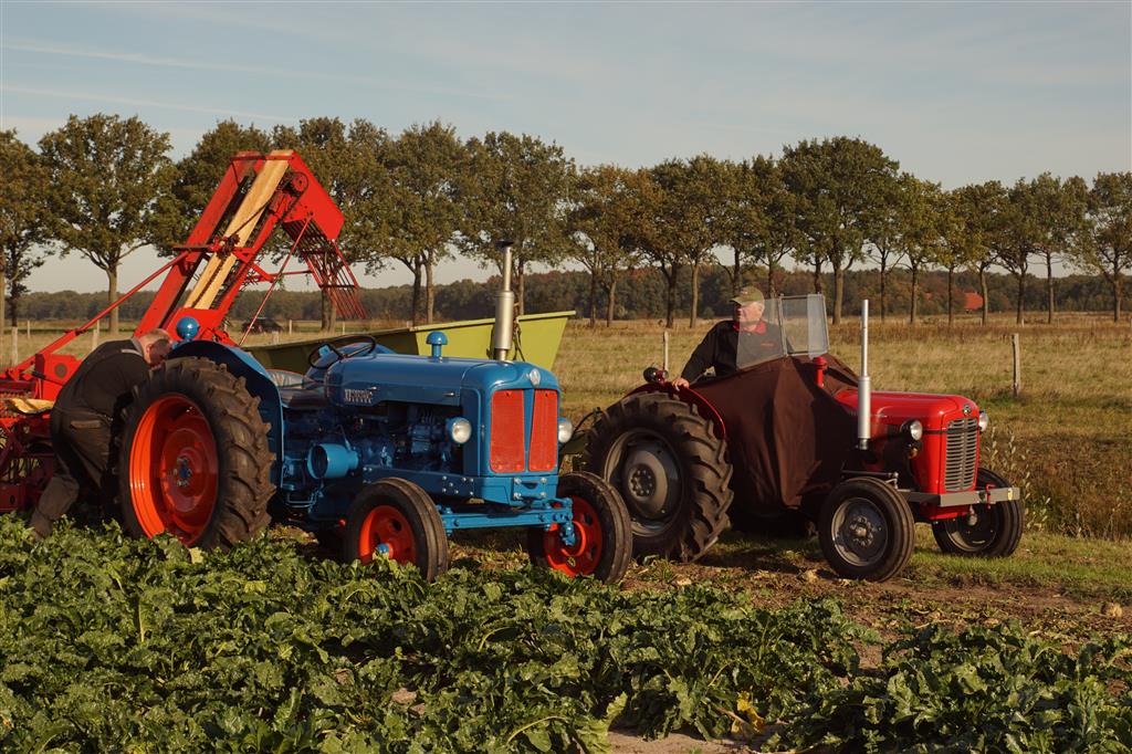 Ouderwets bieten rooien met eenrijige bietenrooiers en oldtimer kippers. Er waren vier oude eenrijige bietenrooiers die meededen in Harpel (GR). Het doel van deze dag was om het gebruik van oude machines in stand te houden en de kennis daarvan over te brengen.