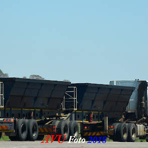 Wat je zoal tegen kunt komen in Zuid-Afrika. Van slooptrekkers tot moderne tractoren. En speciale trucks voor het vervoer van mijnbouwproducten. We waren bij een bedrijf dat 620 stuks van deze combinaties, alleen Volvo en Scania, in vier businessgroepen had zitten. Verder was het super rustig op het land, de stoppels moesten nog bewerkt gaan worden, de temperatuur was slechts 12-15 graden.