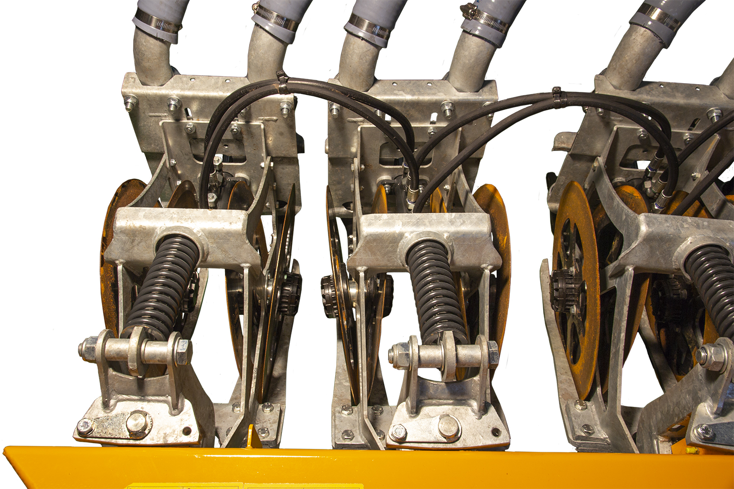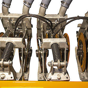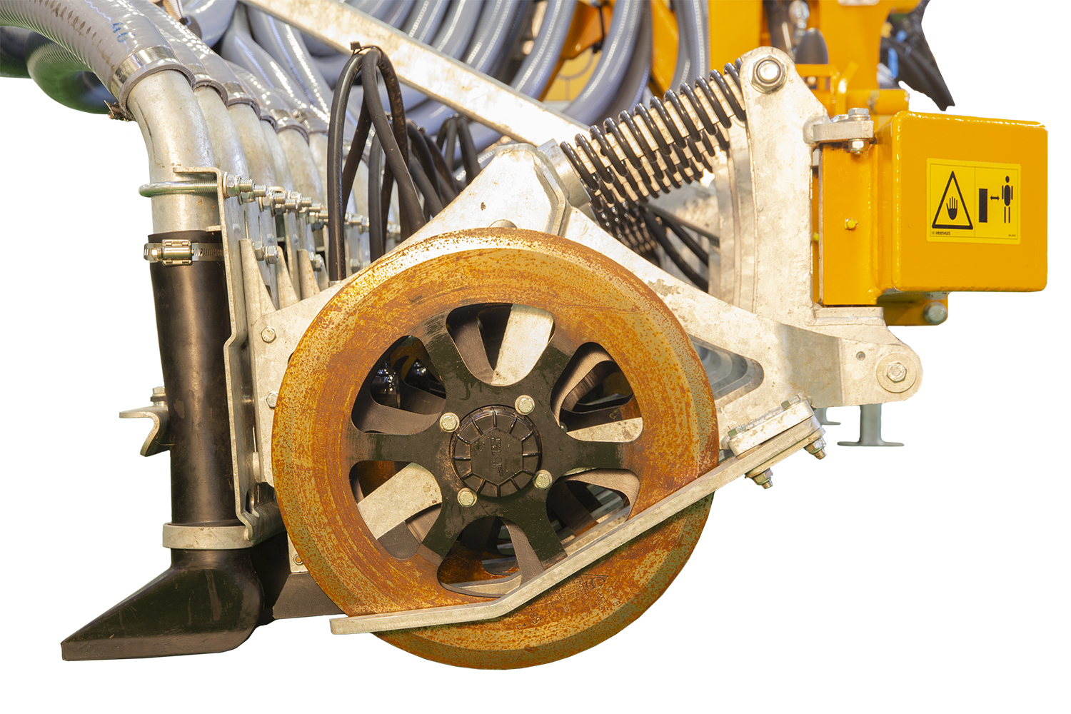 Met een schijfafstand van 18,75 cm in combinatie met sectieafsluiting (hydraulisch of pneumatisch) kan de Veenhuis Euroject Twin bemester ook voor rijenbemesting worden ingezet.