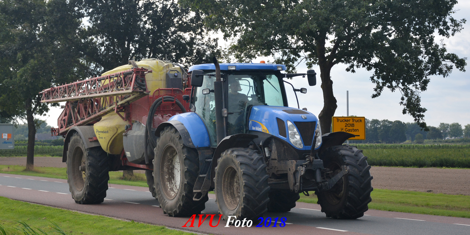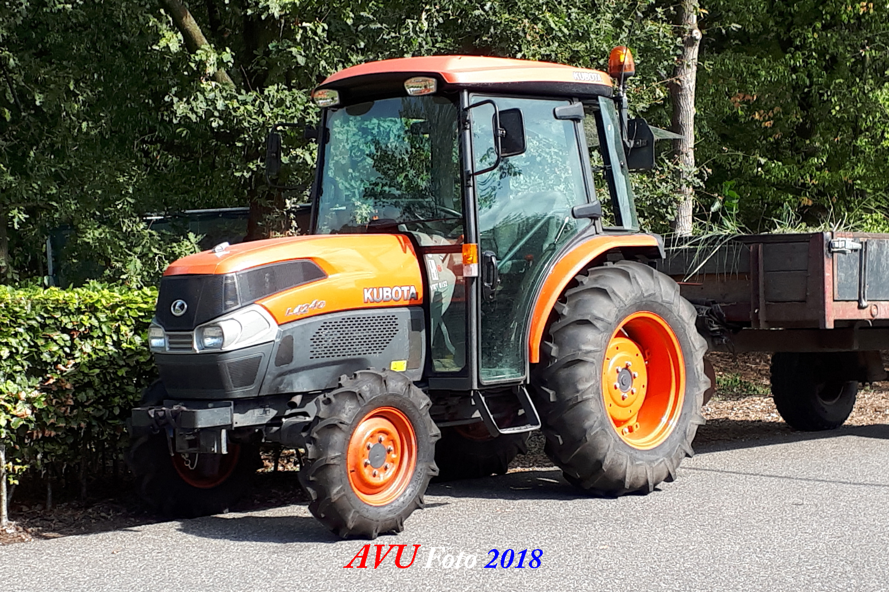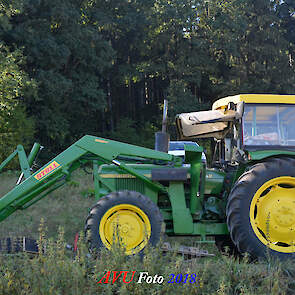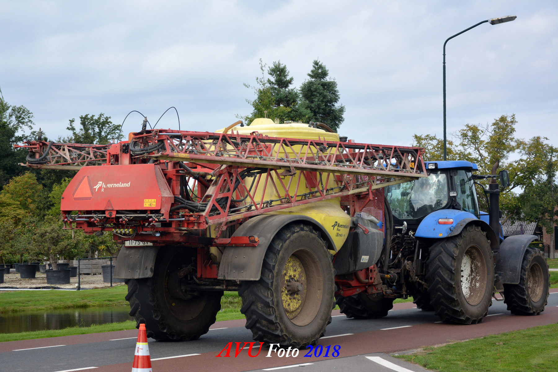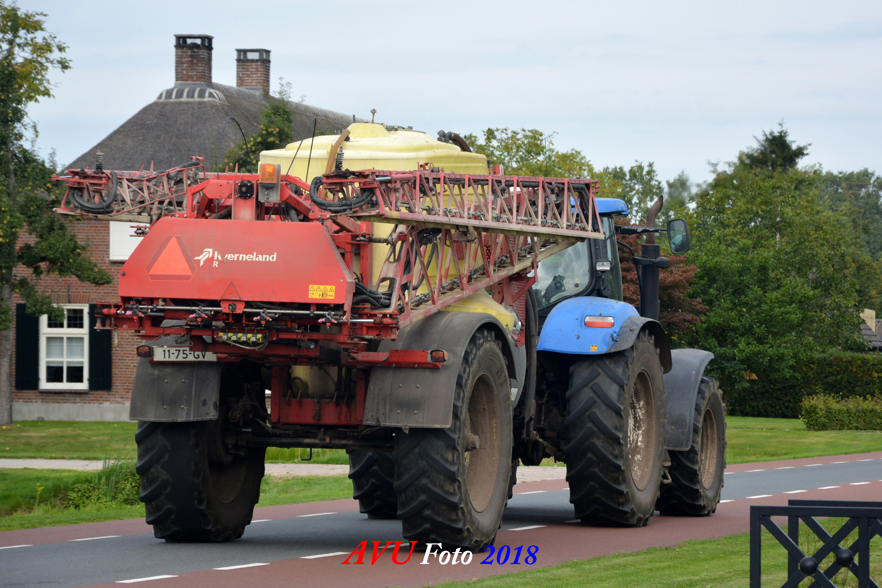 Zoals een blauwe Imants dieptandcombinatie, een New Holland T 7030 met getrokken Kverneland Rau Xtrack landbouwspuit, een John Deere 2030 4 wd met Stoll voorlader, een John Deere 1130 met voorlader, een oude Deutz trekker met vingerbalk, een oude Hatz H 220 en een Kubota L 4240 met aanhanger.