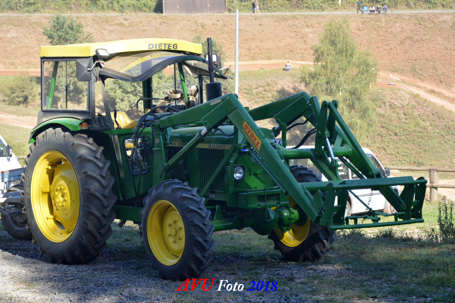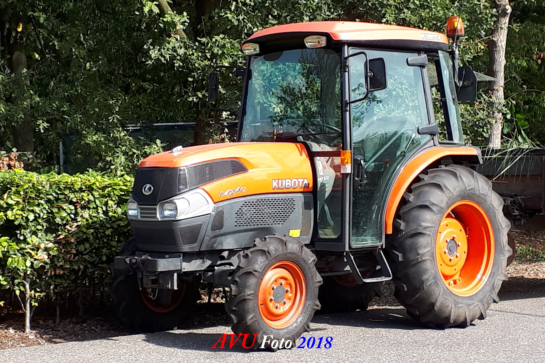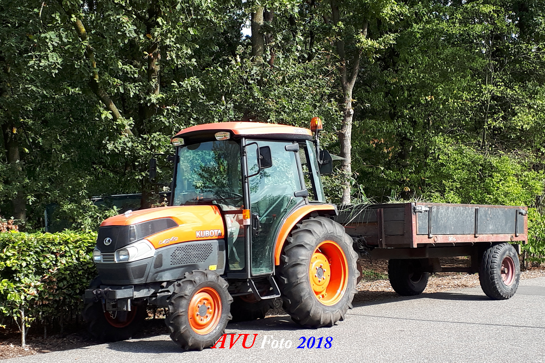 Zoals een blauwe Imants dieptandcombinatie, een New Holland T 7030 met getrokken Kverneland Rau Xtrack landbouwspuit, een John Deere 2030 4 wd met Stoll voorlader, een John Deere 1130 met voorlader, een oude Deutz trekker met vingerbalk, een oude Hatz H 220 en een Kubota L 4240 met aanhanger.