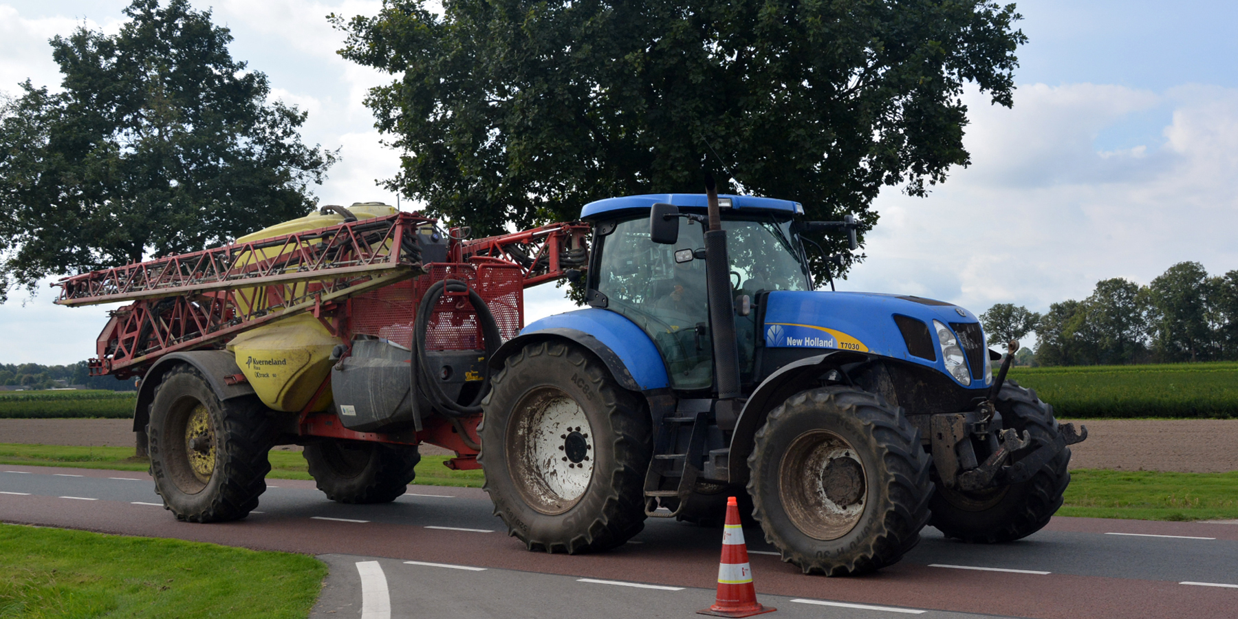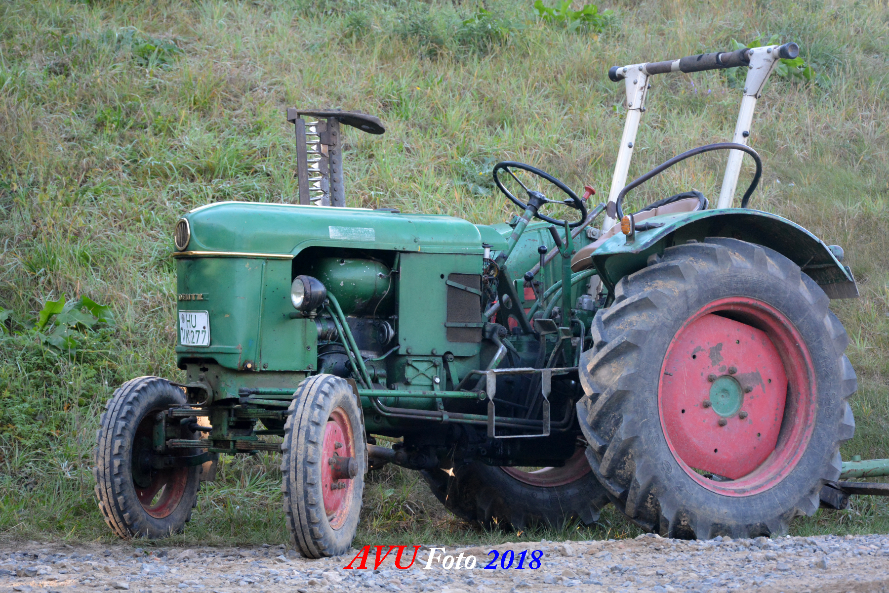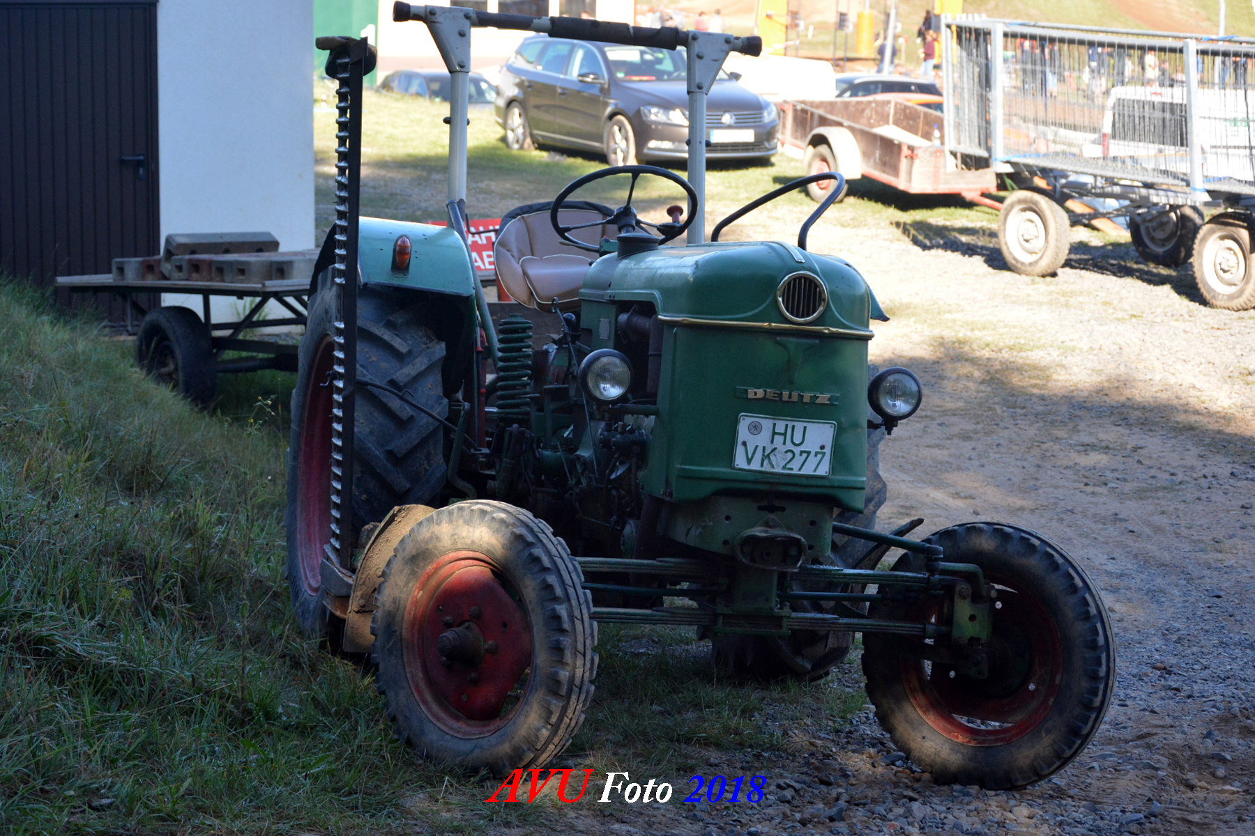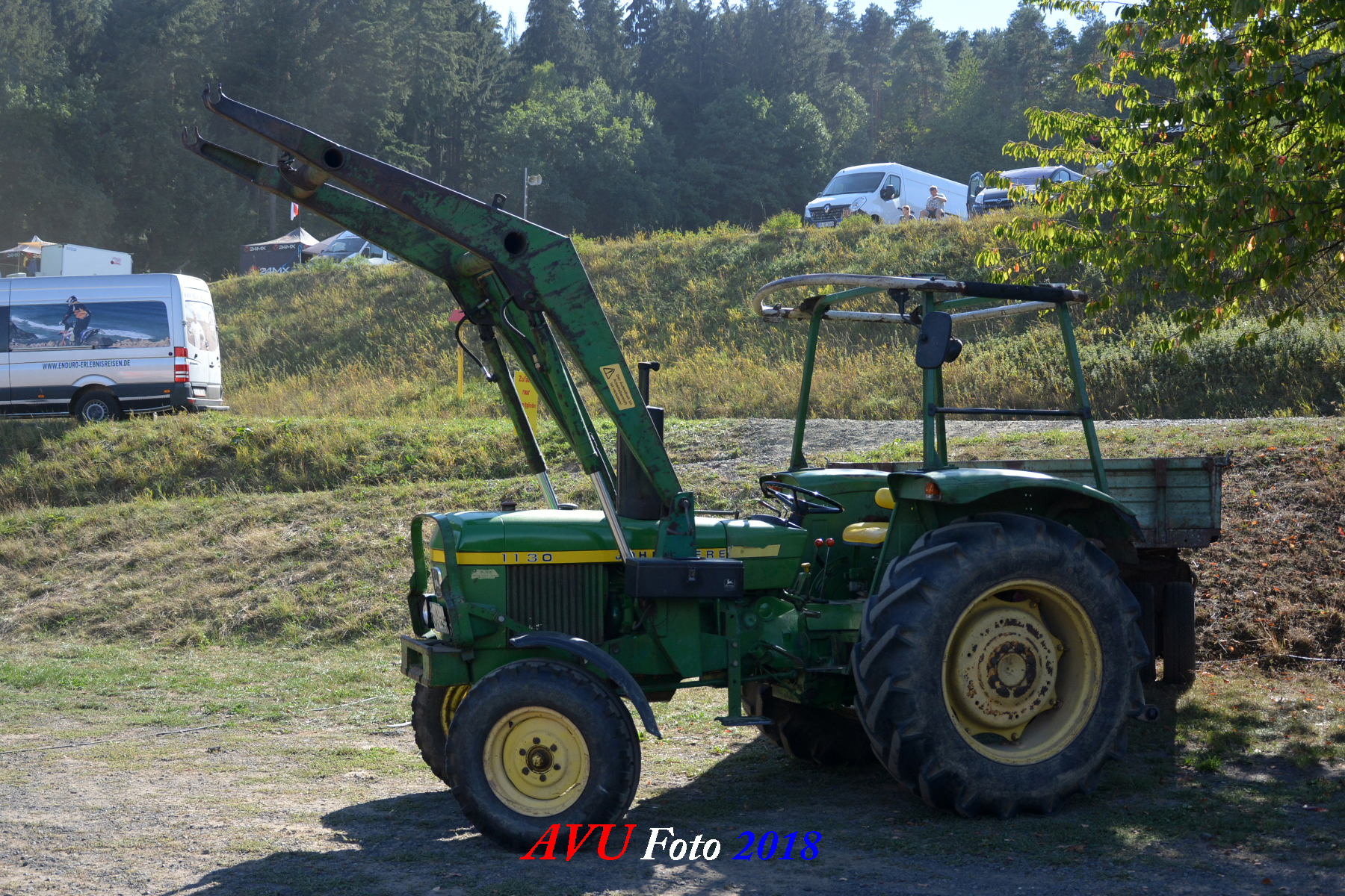Zoals een blauwe Imants dieptandcombinatie, een New Holland T 7030 met getrokken Kverneland Rau Xtrack landbouwspuit, een John Deere 2030 4 wd met Stoll voorlader, een John Deere 1130 met voorlader, een oude Deutz trekker met vingerbalk, een oude Hatz H 220 en een Kubota L 4240 met aanhanger.
