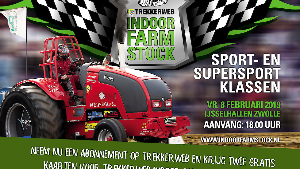 Voor het 36e jaar komt de tractorpullingscene bij elkaar in de IJsselhallen Zwolle tijdens de gezelligste en spectaculairste indoor van Europa. Zodra de eerste deelnemer van start gaat, staat het publiek op de banken, schudt de IJsselhallen op haar grondvesten en is het genieten geblazen van de sensationele deelnemers die werkelijk alle laatste pks uit de machines halen. Op vrijdagavond 8 februari gaan de sport- en supersporttractoren van start voor Trekkerweb Indoor Farmstock. Zaterdag is het de beurt aan de Grand National machines tijdens Oliehandel.nl Indoor Tractor Pulling. Met deelnemers uit o.a. Nederland, Denemarken, Duitsland, Engeland, Frankrijk, Zweden en Noorwegen is de top van Europa aanwezig.