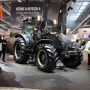 De nieuwste A-uitvoering van Valtra met onder meer powershift staat op de SIMA in een uitvoering van zwart met goud.