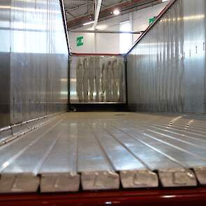 Deze transportwagen is uitgerust met een 'walking floor', die de lading naar achteren schuift. In de landbouw wordt dit systeem nog niet toegepast, maar het zou een uitkomst kunnen zijn voor situaties waar je niet kunt kiepen.