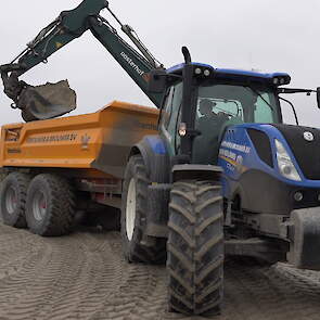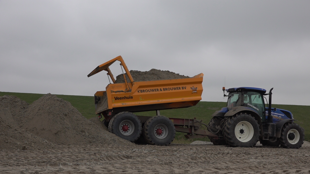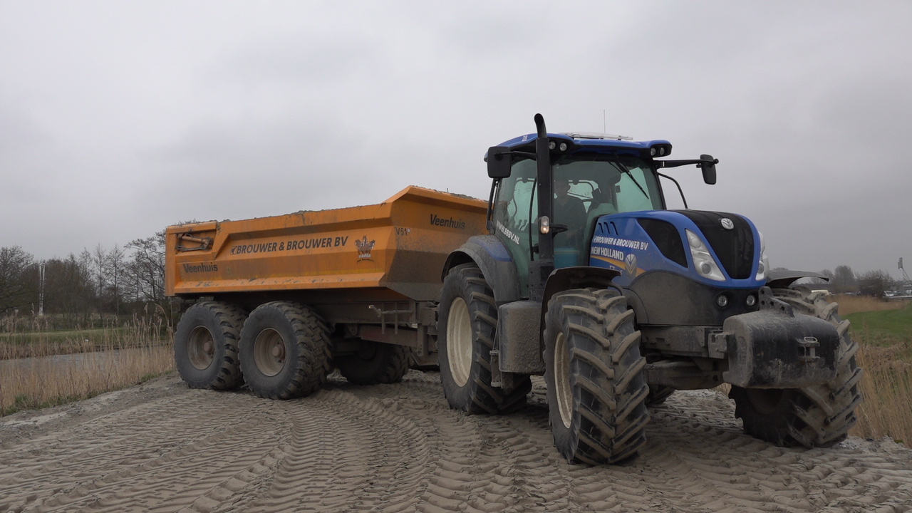 Loonbedrijf Brouwer & Brouwer BV in het grondverzet met Jan Veenhuis-zandkippers en New Holland trekkers (http://bbbv.nl/).