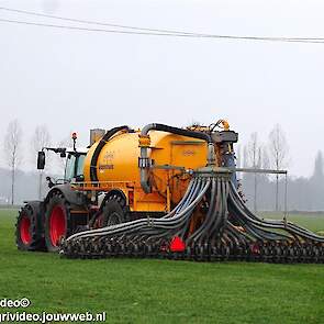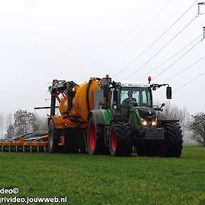 Loonbedrijf Pannekoek uit Nijbroek aan het mest injecteren met een Fendt 720, een VMR Veenhuis Premium mesttank en een Veenhuis Euroject 3500 bemester.