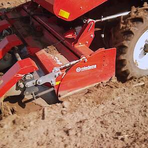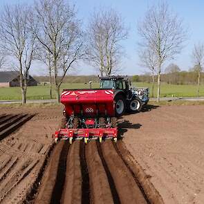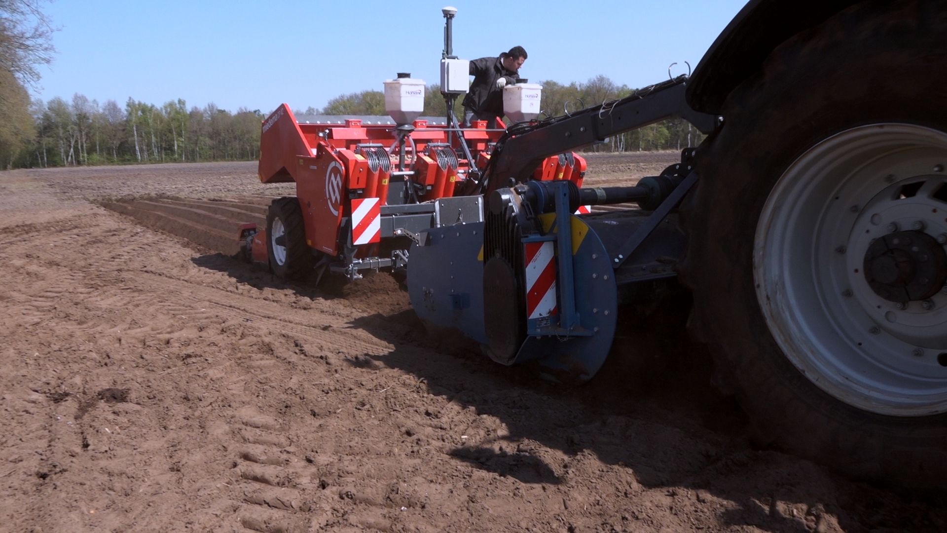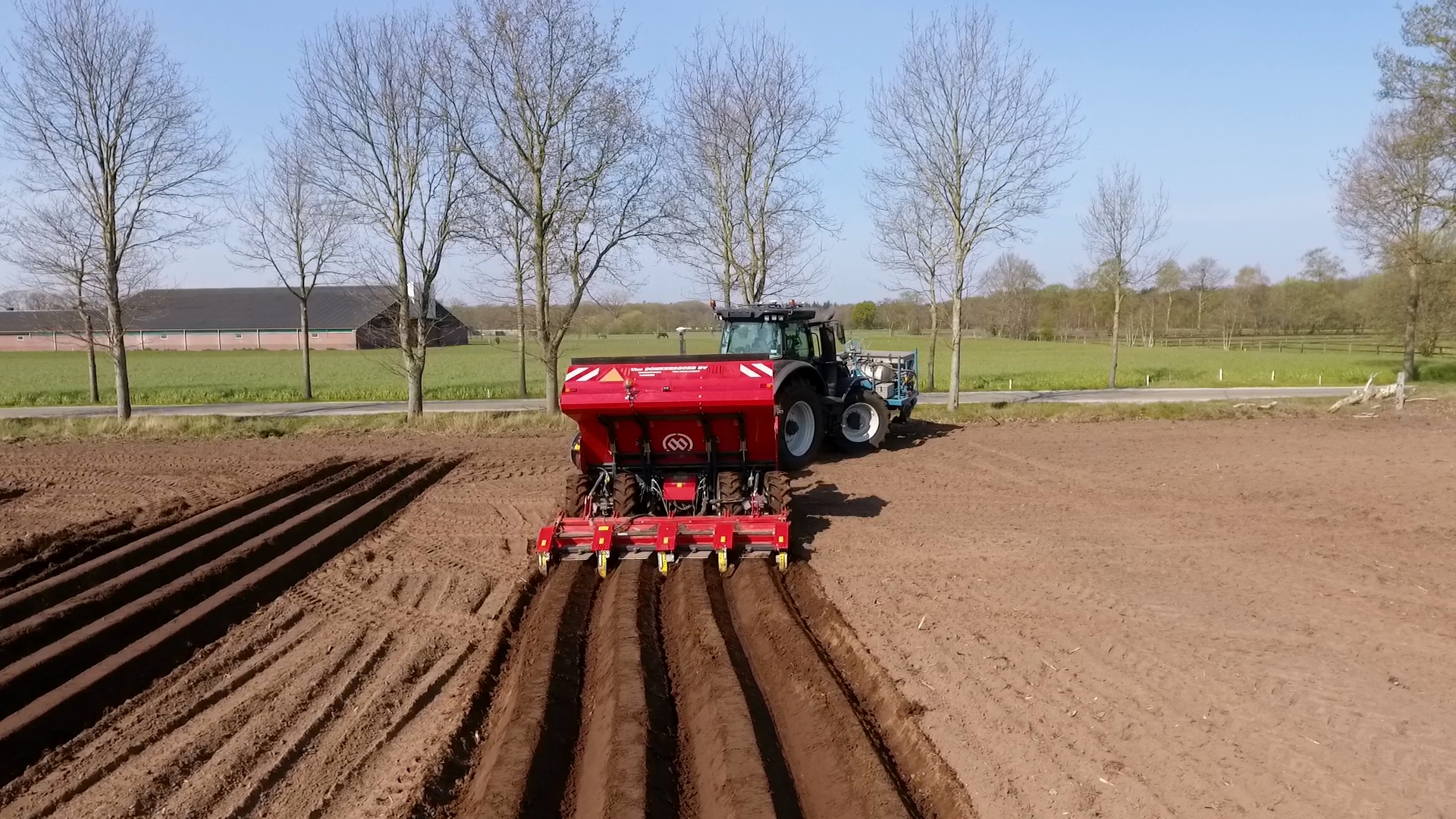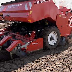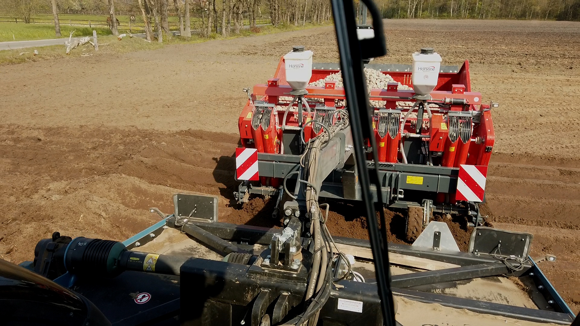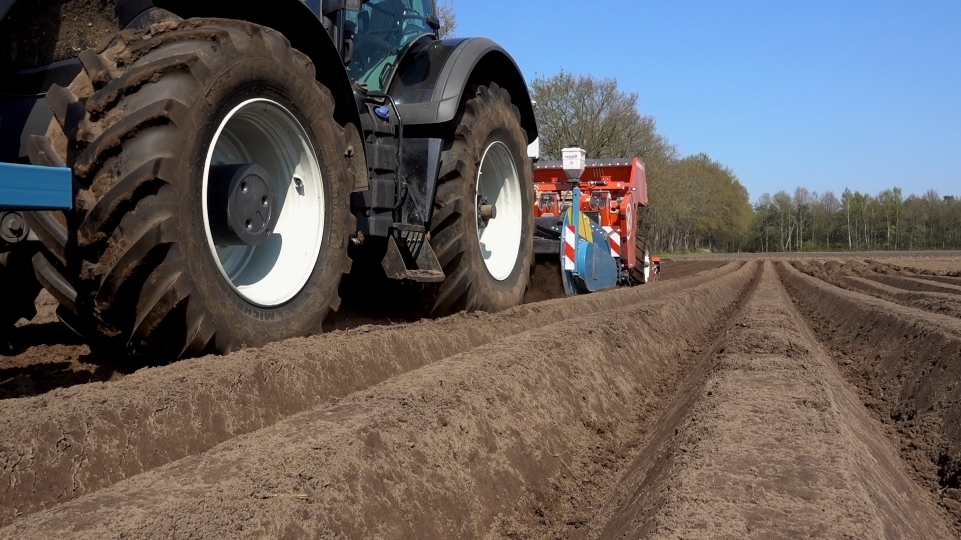 Aardappelen poten door Van Donkersgoed BV met deze imposante combinatie bestaande uit een Valtra S294 met Imants spitmachine en een getrokken Miedema CP 42.