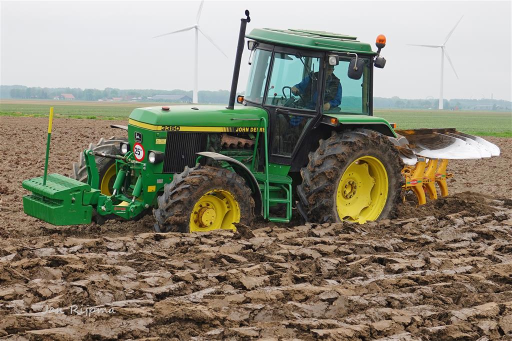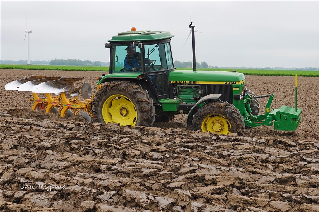 Braakland ploegen (30 cm diep). Door Jan Droogh uit Biddinghuizen met de John Deere 3350 Power Synchron en een Rumptstad 3-scharige wentelploeg.
