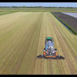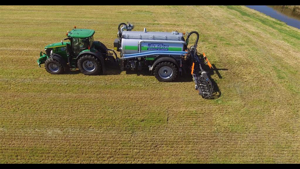 Loonbedrijf Nils de Wit uit Berkhout aan het mest uitrijden met de nieuwe Kaweco Dubbel Twin Shift versie 2.0