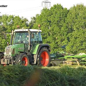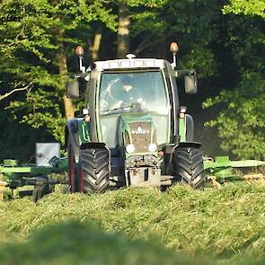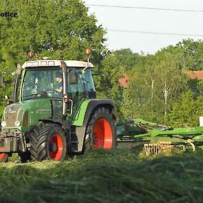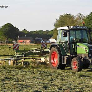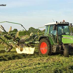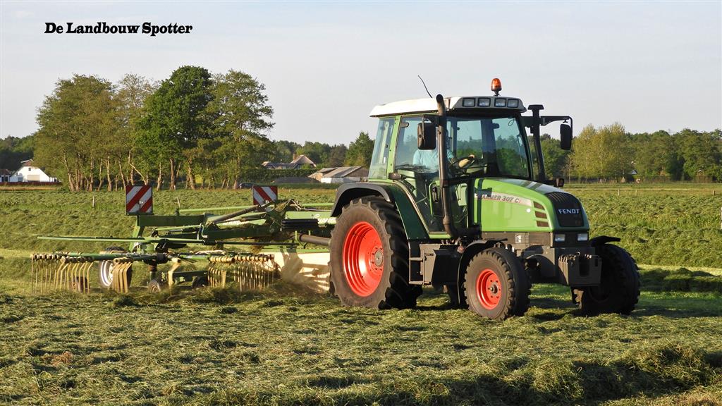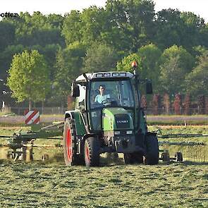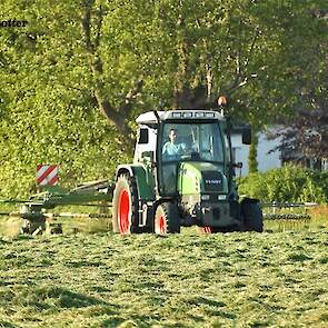 Gras harken bij veehouder Vliek Holsteins in Ermelo. Dit gebeurde met een Fendt Farmer 409 met een Krone Swadro 681 en een Fendt Farmer 307 C met een Krone Swadro 800/26.