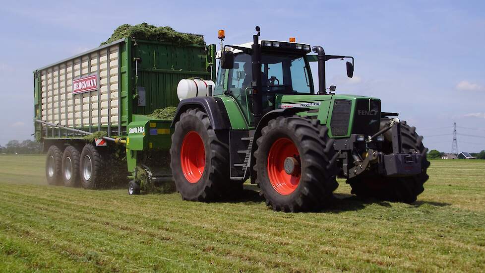 fendt favorit 916 met een bergman shuttle 940 S gras oprapen