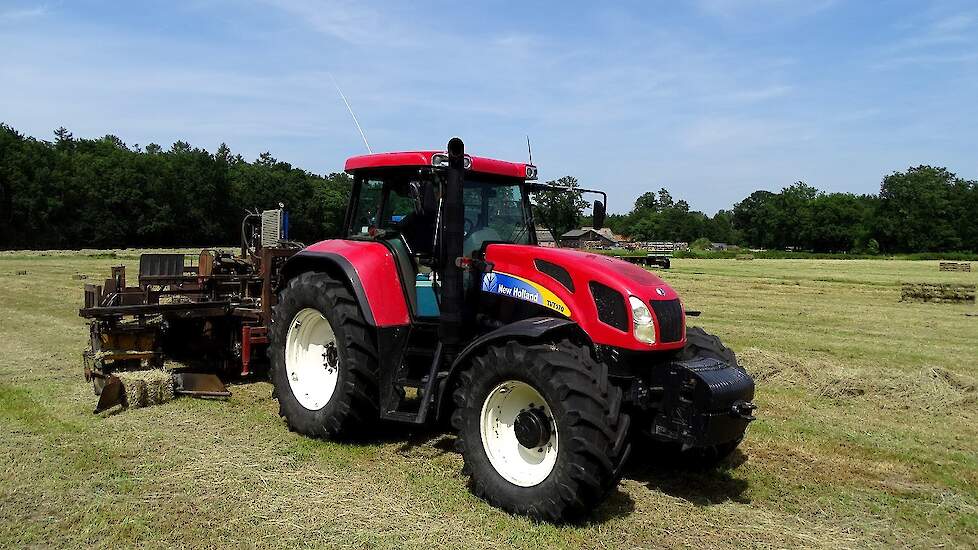 New Holland TVT170 met zelfgemaakte balenbundelaar