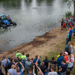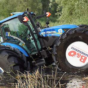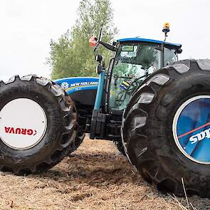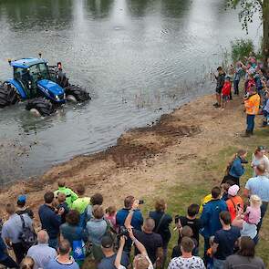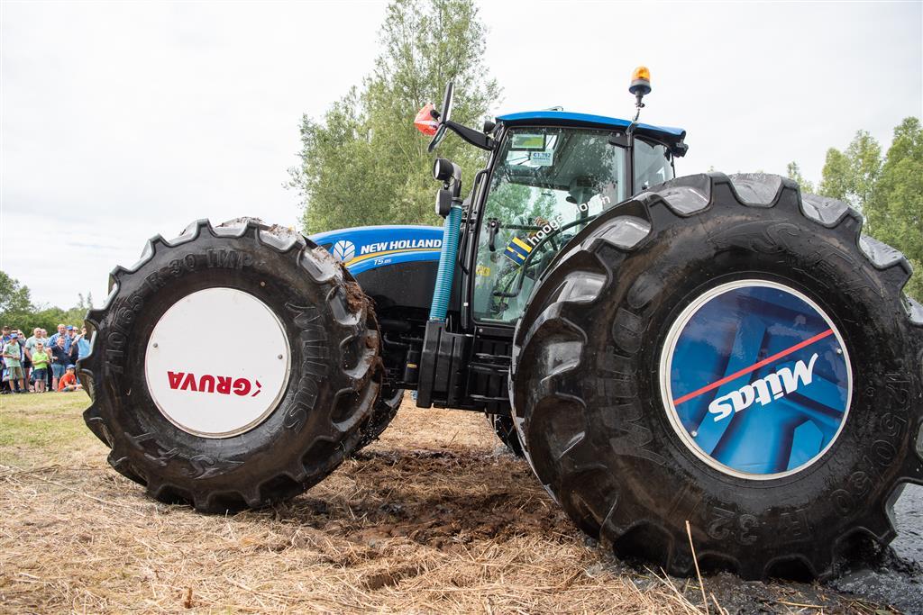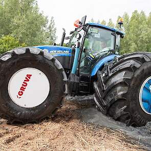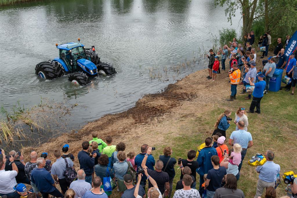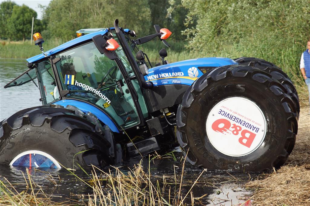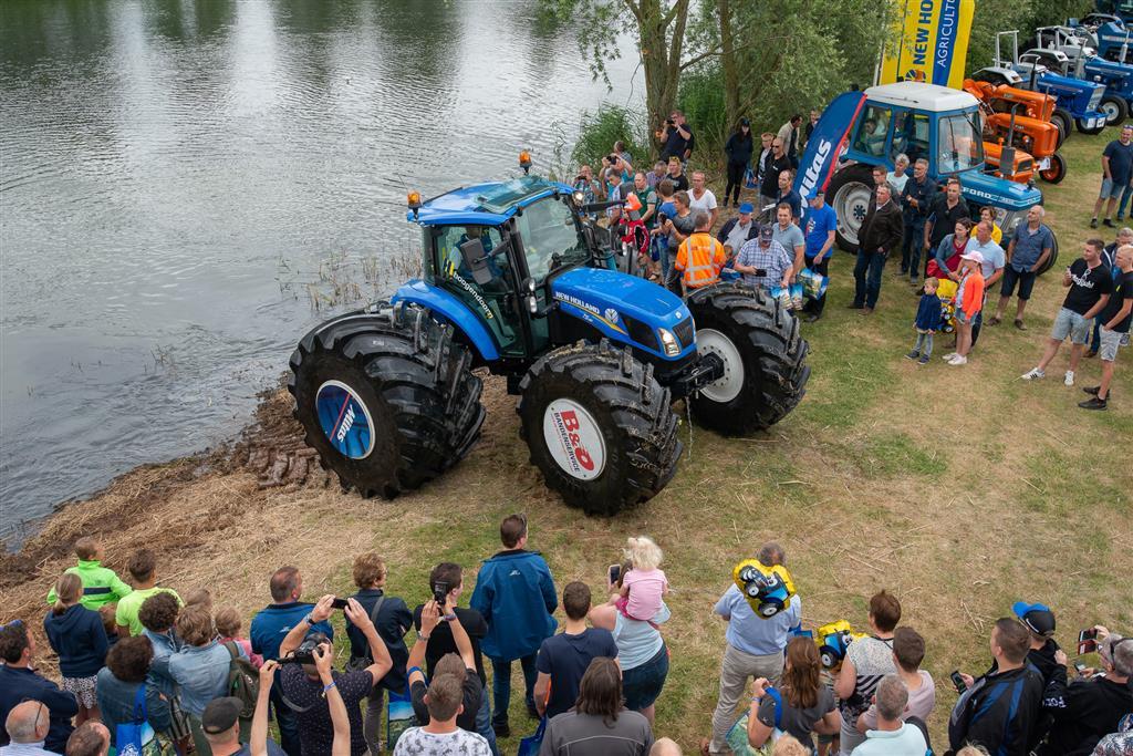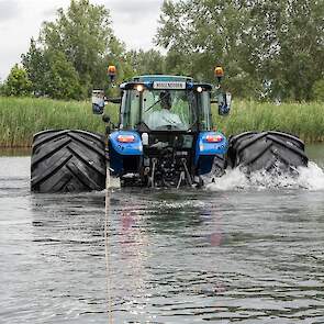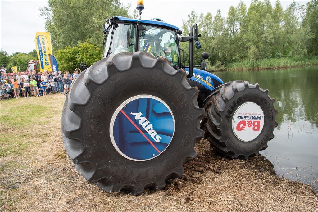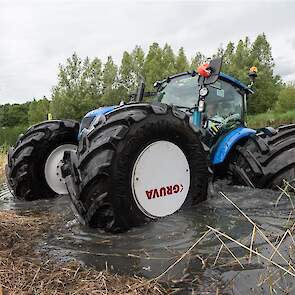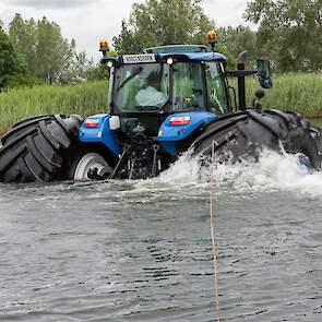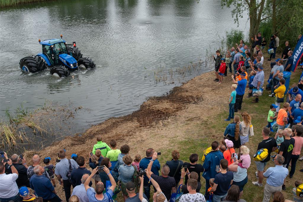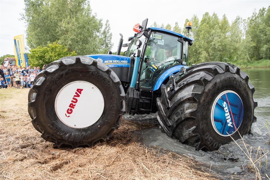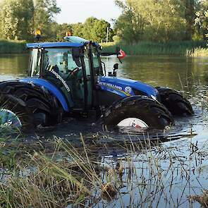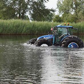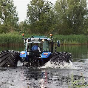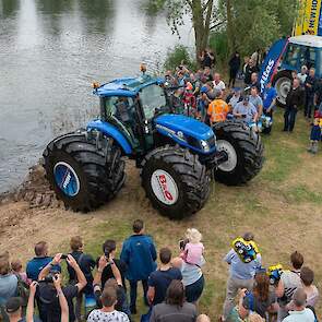 New Holland T5.85 neemt verfrissende duik: "Het gaat allemaal over drijfvermogen. De combinatie van volume en lucht in de gemonteerde banden maakte het mogelijk een trekker op het water te laten drijven. Stel je de lagedrukverdeling op de grond eens voor als de machine haar dagelijkse werk doet."