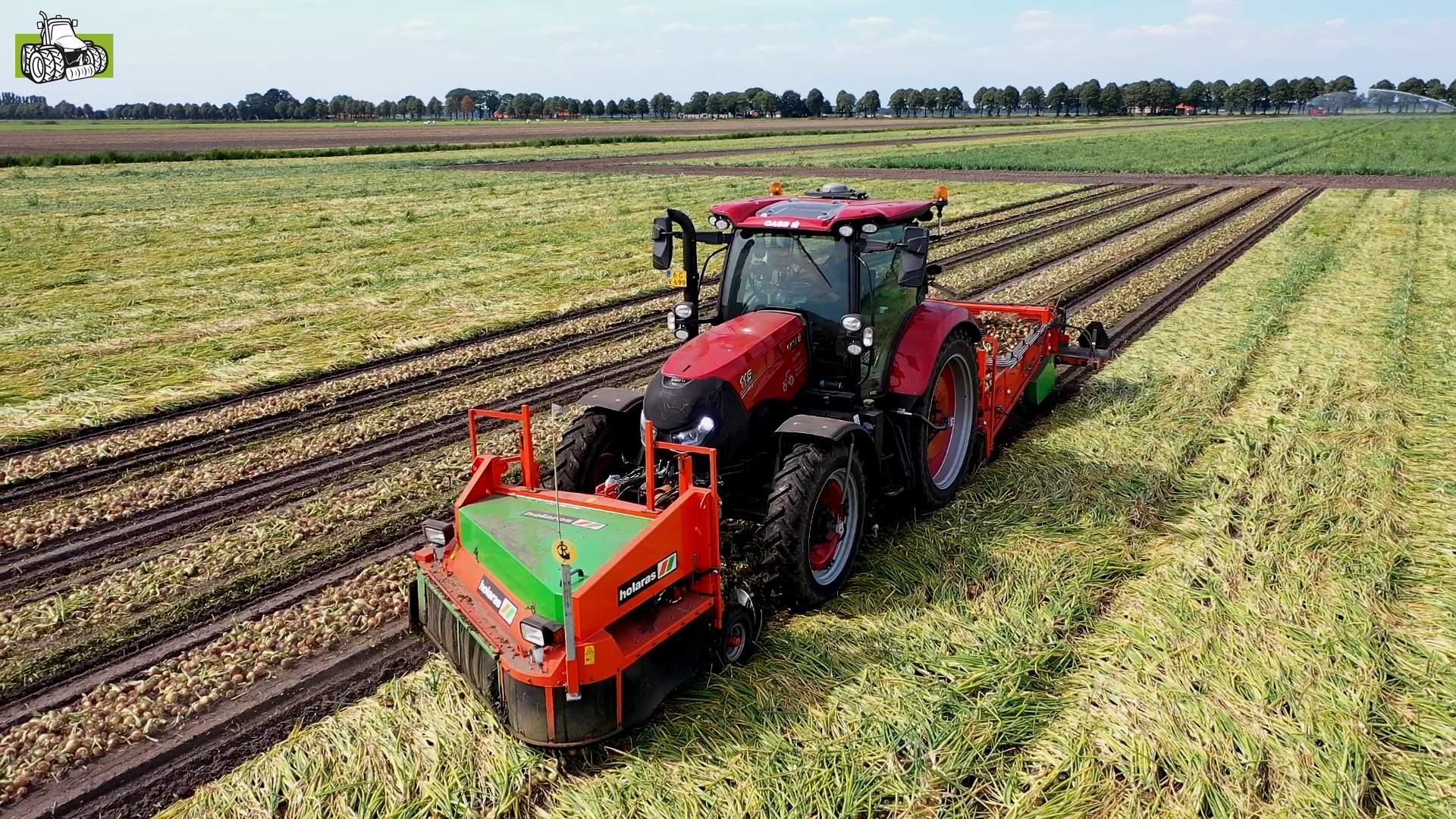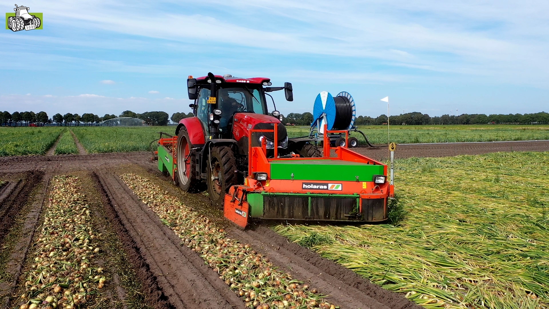 Emotioneel werk bij loonbedrjjf Haaijer, aldus René Haaijer. Uien rooien met de UR 170-uienrooier van Holaras en klappen met de UM180-F van Holaras. Daartussen de Case-IH Maxxum 115 CVX. Loonbedrijf Haaijer rooit met drie van deze combinaties en het bedrijf is gespecialiseerd in de uienteelt.