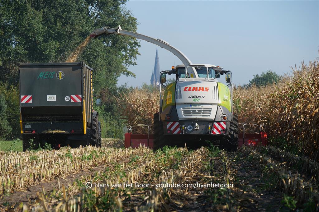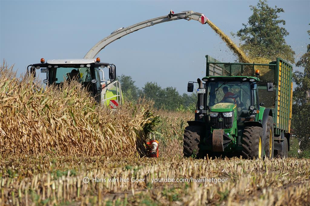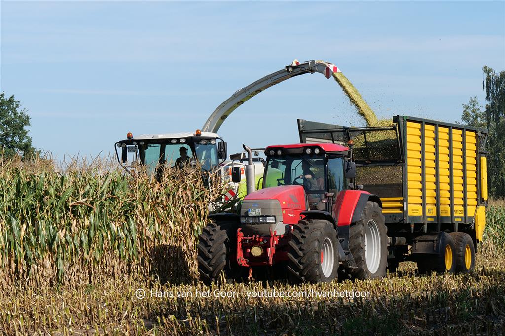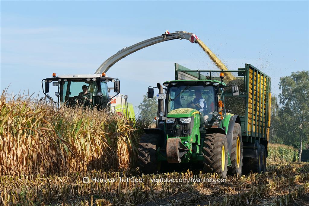 Maisoogst 2019 in het Duitse Münsterland. We zien Lohnunternehmen Meis uit Borken-Gemenkrückling met een Claas Jaguar 940 met een 8-rijer Kemper, een McCormick XTX 185 en een een John Deere 6140R met RO-DA Spirit 3500 silagewagens.