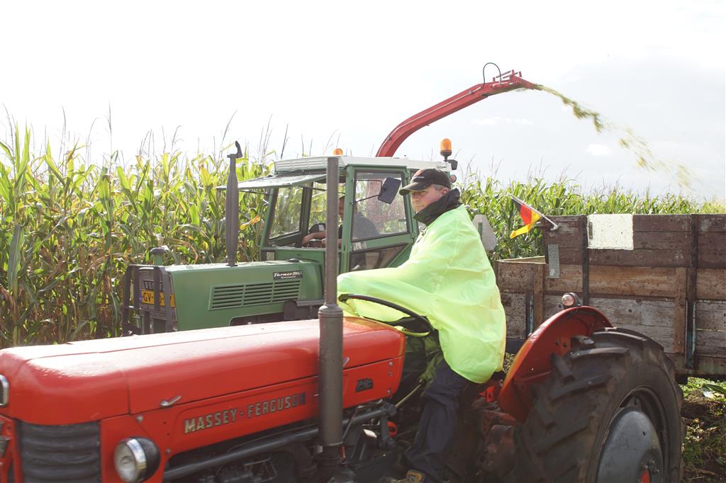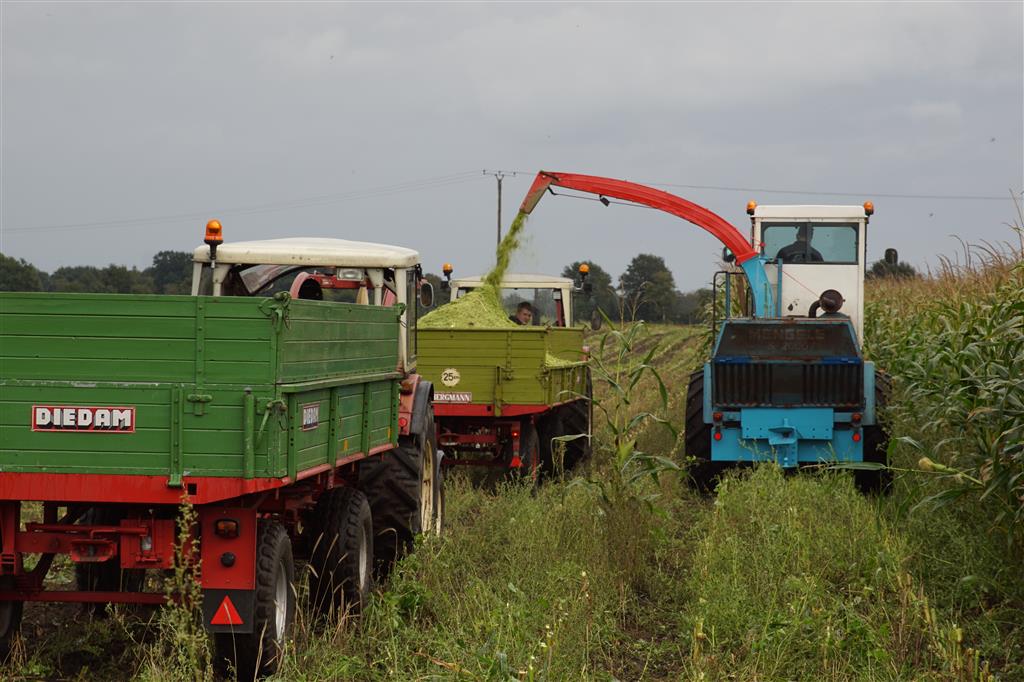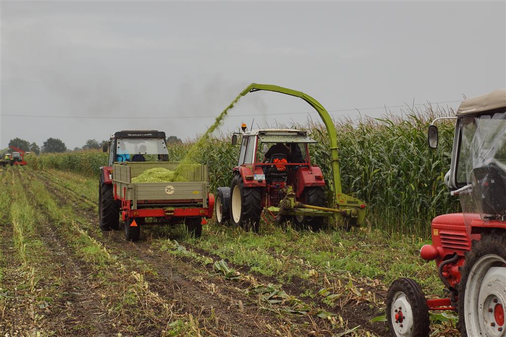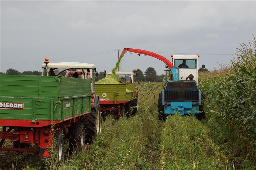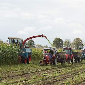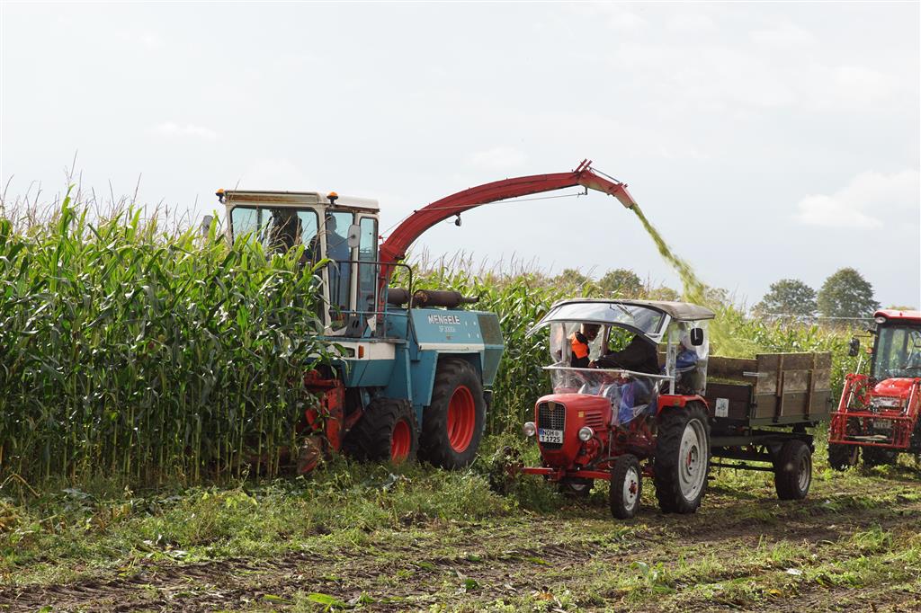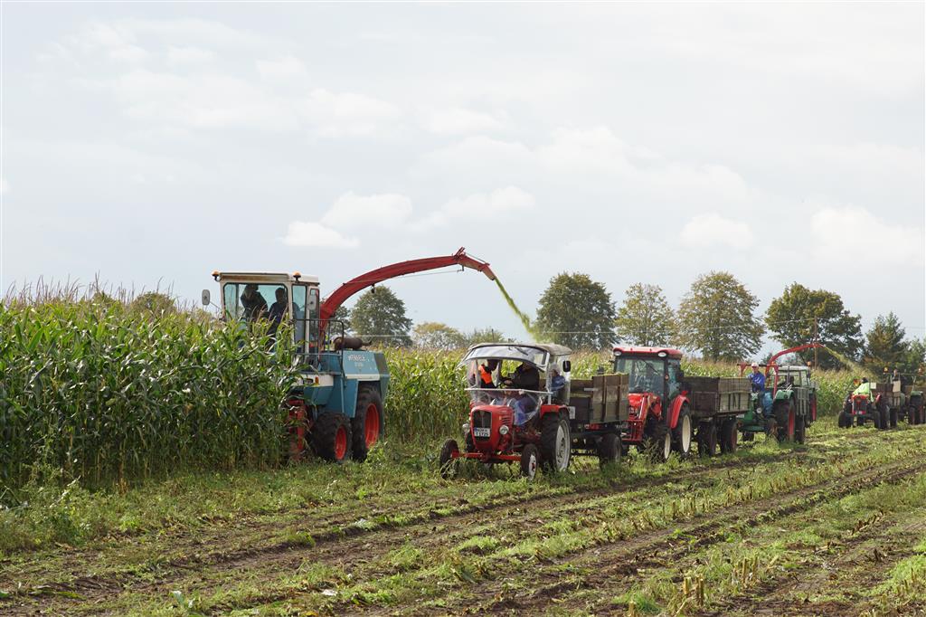 Tijdens deze maïshakseldemonstratiedag werken oude hakselaars in de maïs met behulp van oude trekkers en transportwagens. Nostalgisch geklede chauffeurs gaan terug in de tijd.