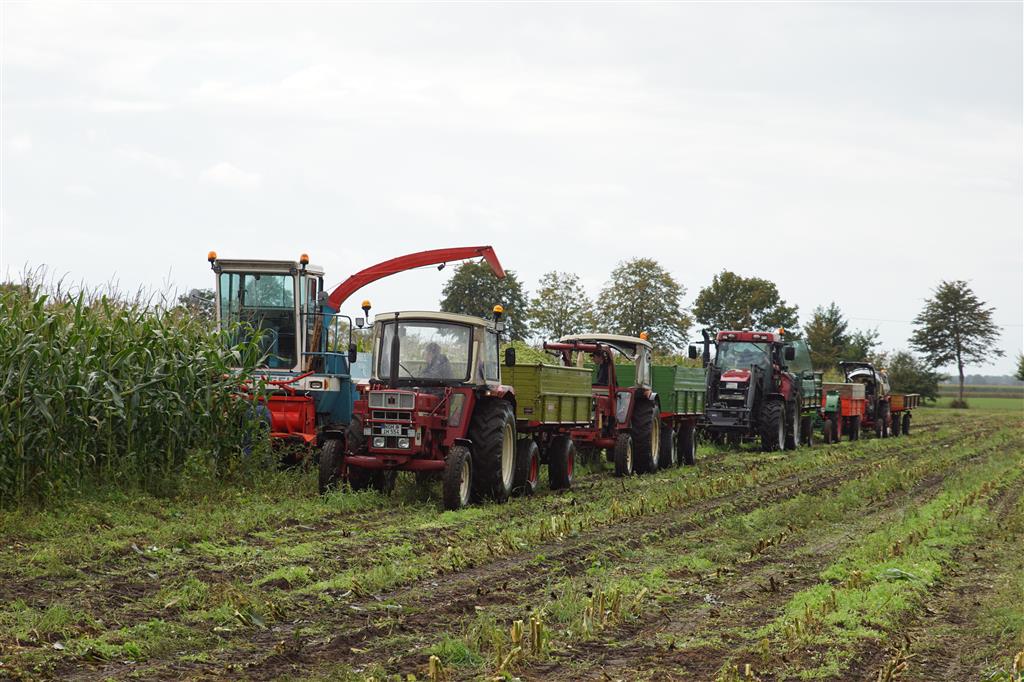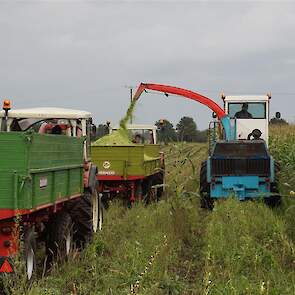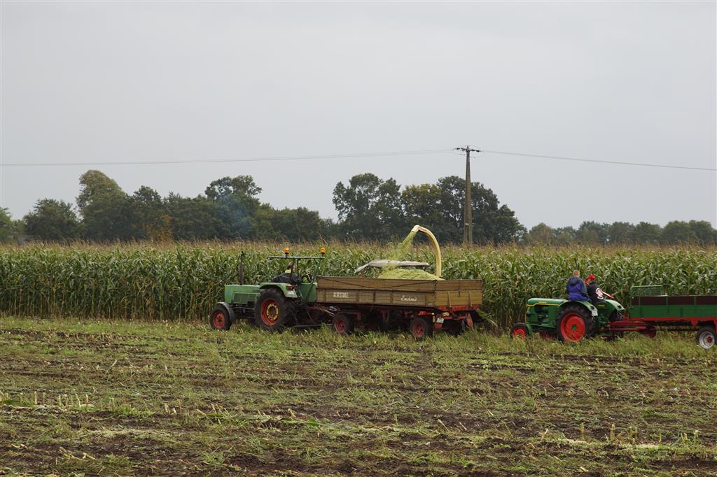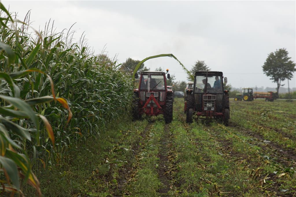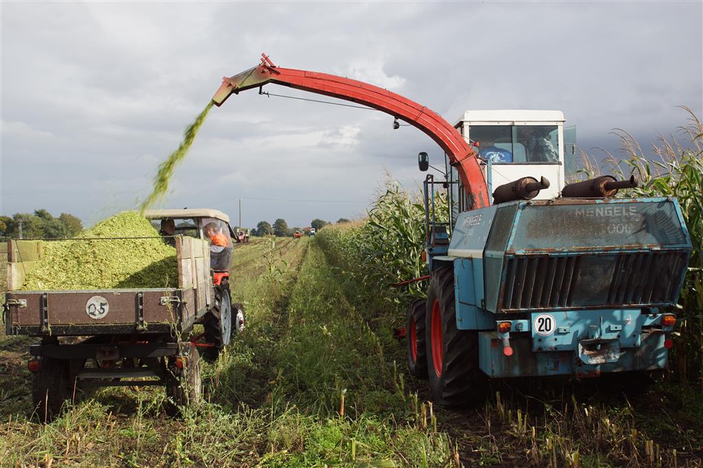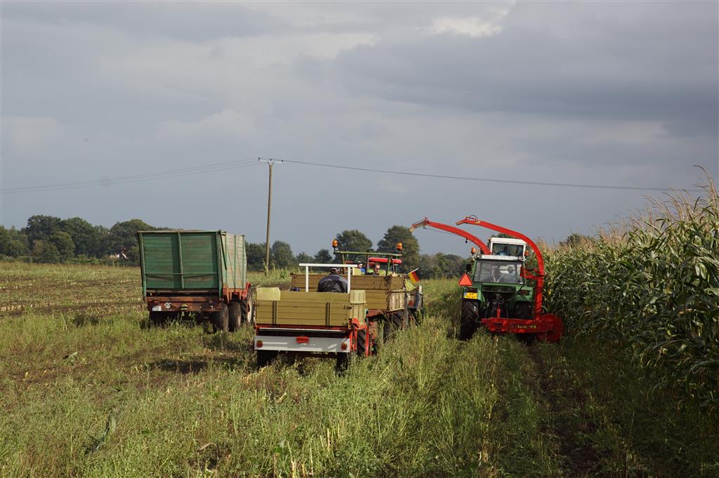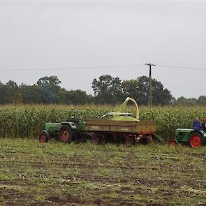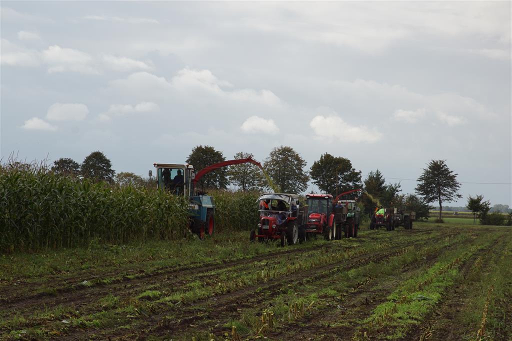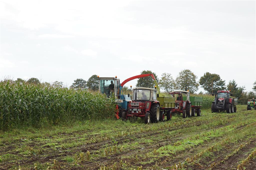 Tijdens deze maïshakseldemonstratiedag werken oude hakselaars in de maïs met behulp van oude trekkers en transportwagens. Nostalgisch geklede chauffeurs gaan terug in de tijd.