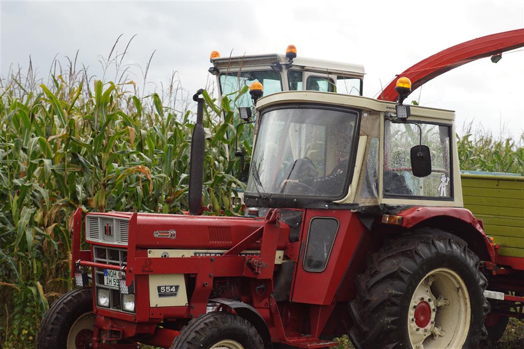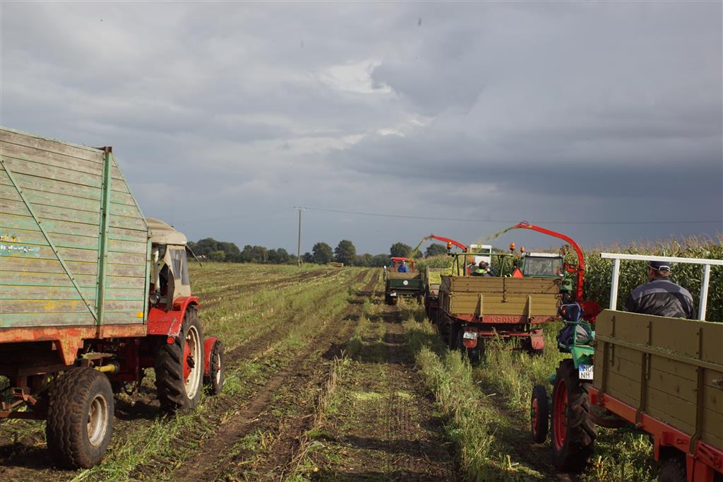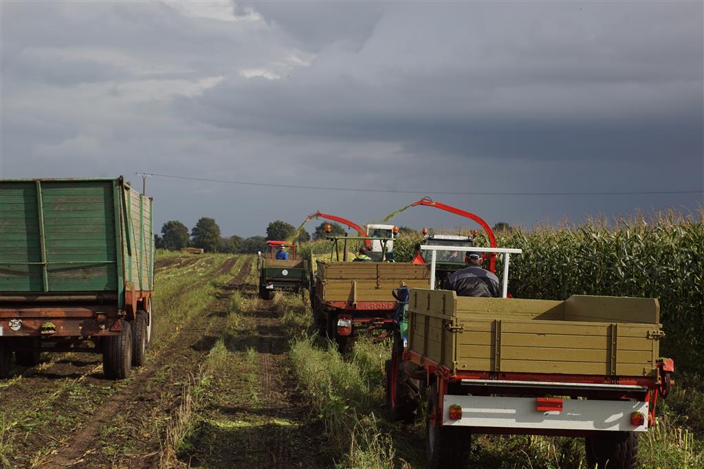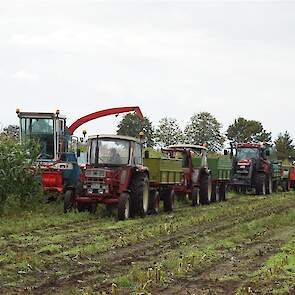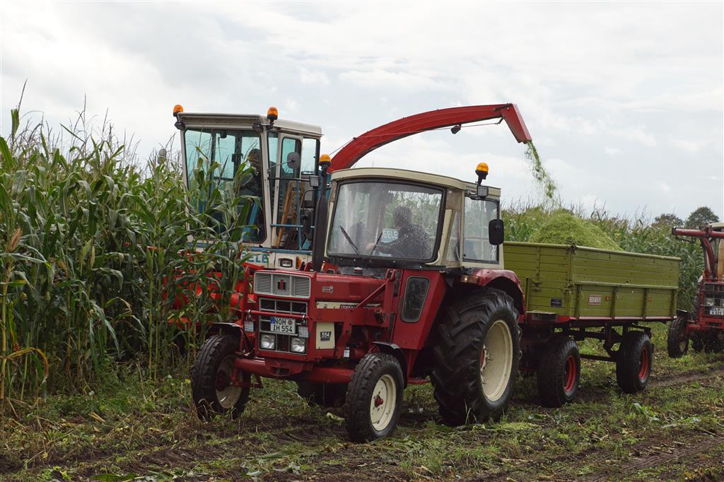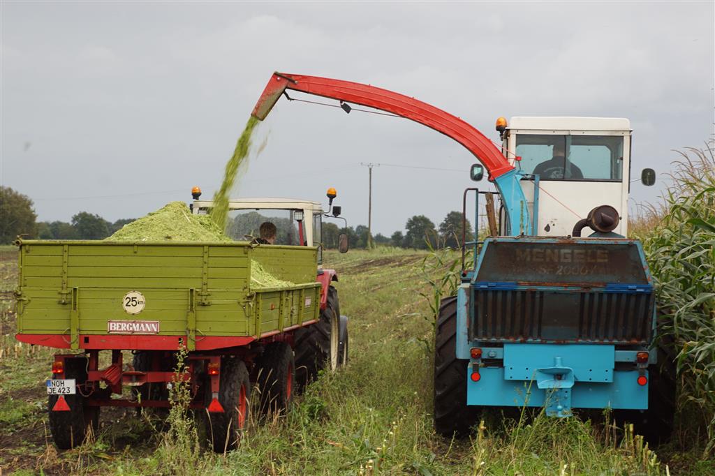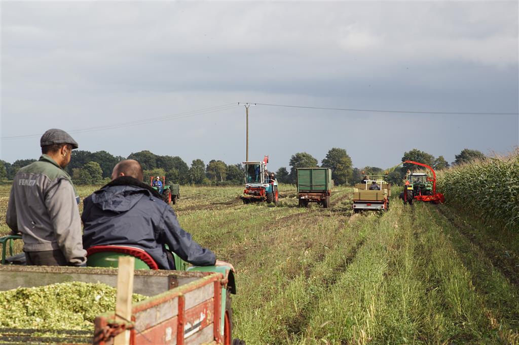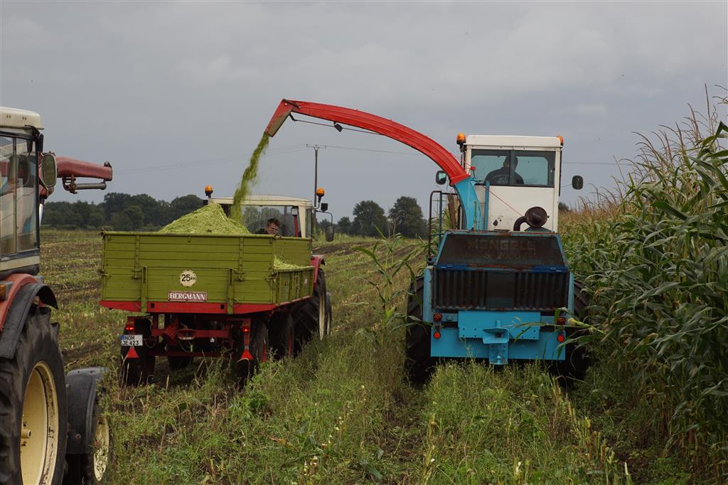 Tijdens deze maïshakseldemonstratiedag werken oude hakselaars in de maïs met behulp van oude trekkers en transportwagens. Nostalgisch geklede chauffeurs gaan terug in de tijd.
