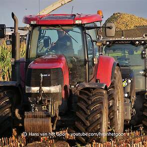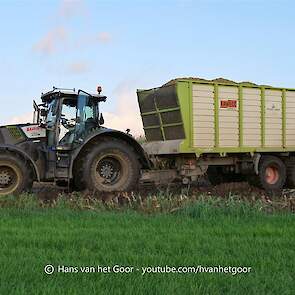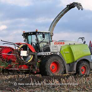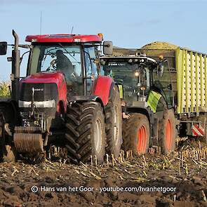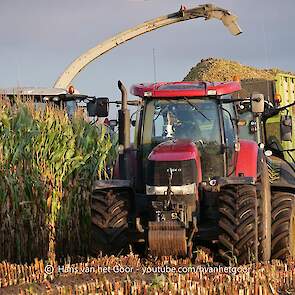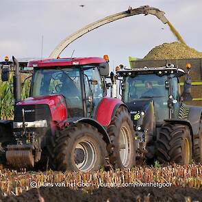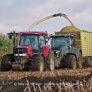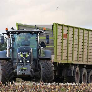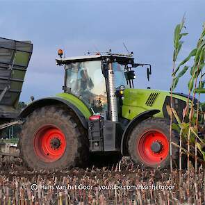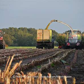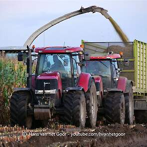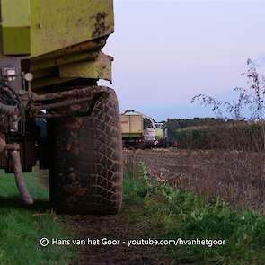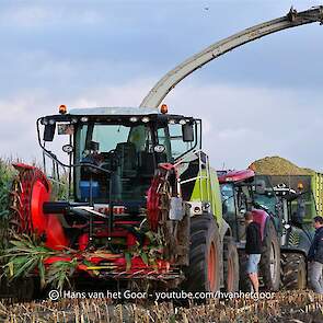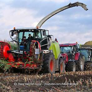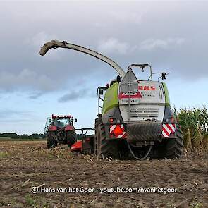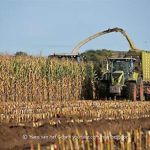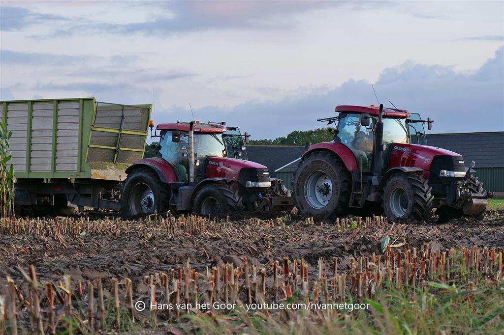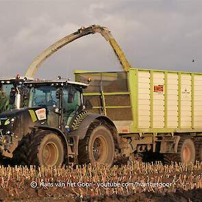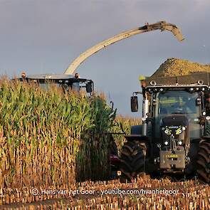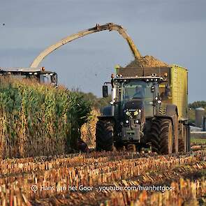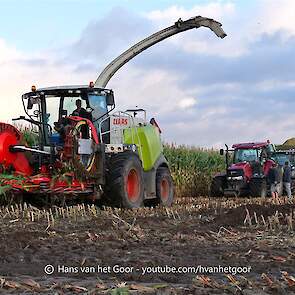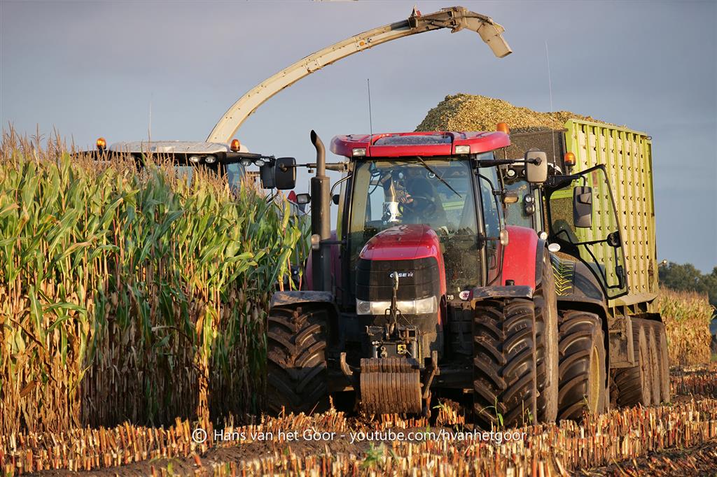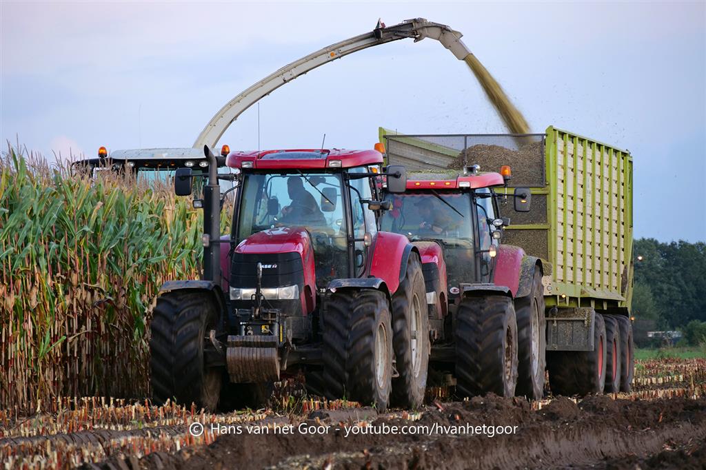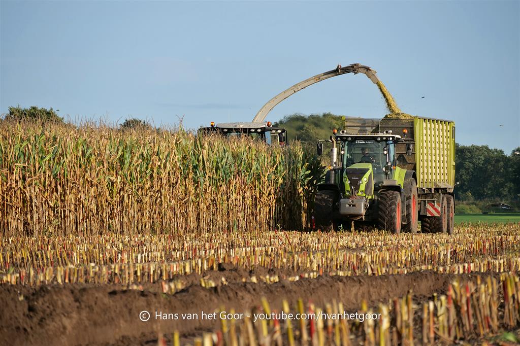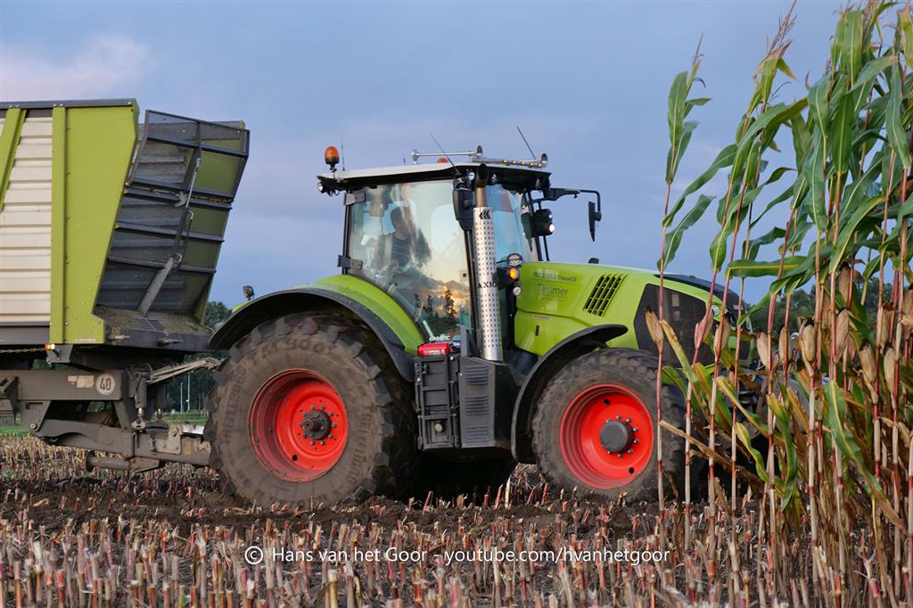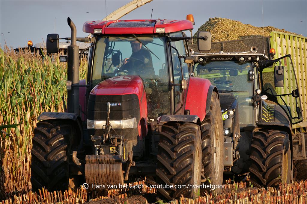 Na meer dan 60 mm regen in 24 uur, is het toch weer modderen in de mais bij Hoge Enk in de buurt van Elburg. We zien loonbedrijf Pleizier & Timmer met een Claas Jaguar 960/965 aan het worstelen tegen de elementen. De mais gaat naar een melkveebedrijf van Jan Bakker in Flevoland. Het transport wordt gedaan met diverse Claas Axion- en Case-trekkers, waaronder de mooie zwarte Claas Axion 850 Black Edition.