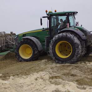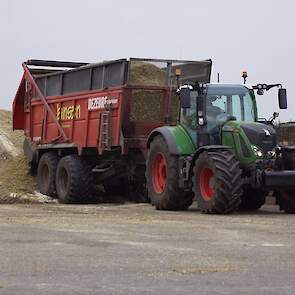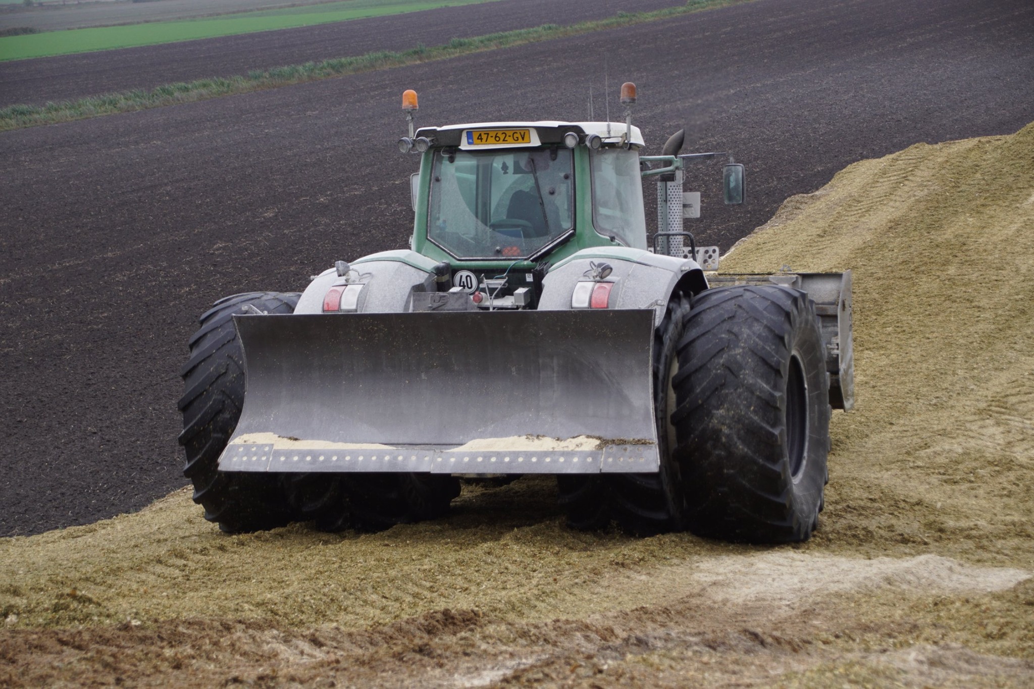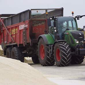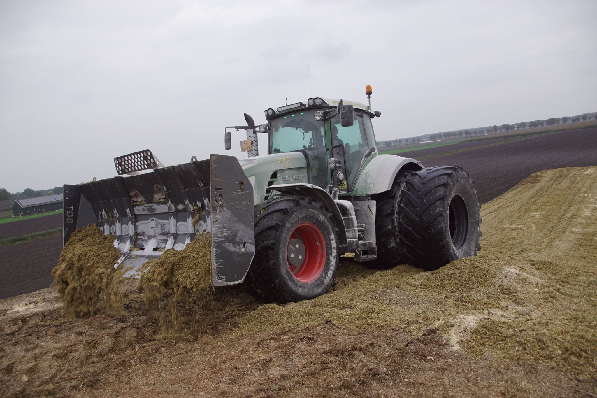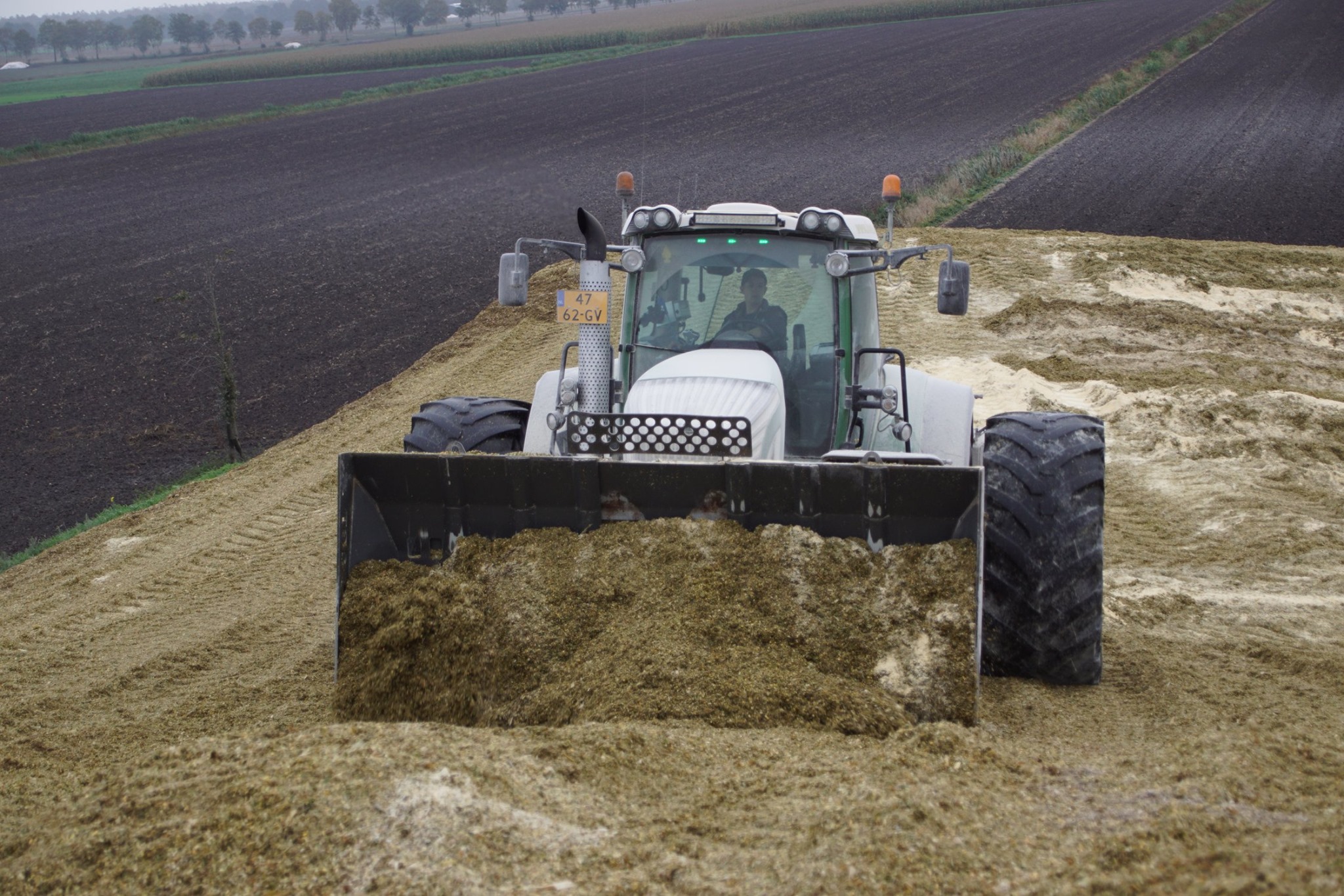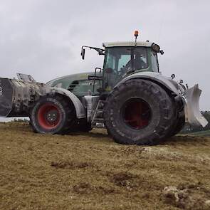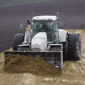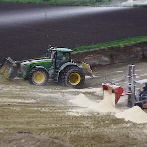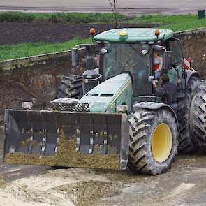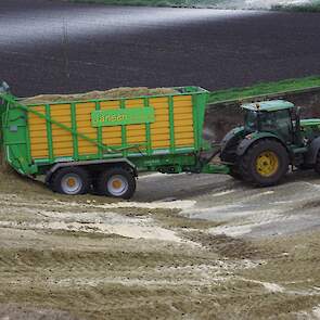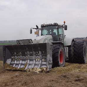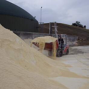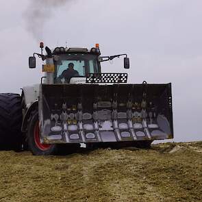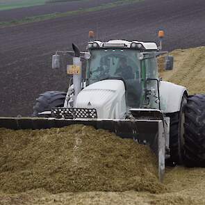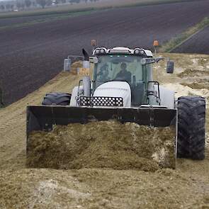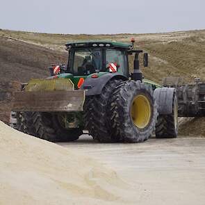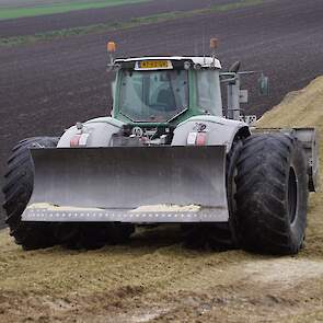 Biogasbedrijf Kloosterman druk bezig met het maken van een mega maiskuil.