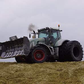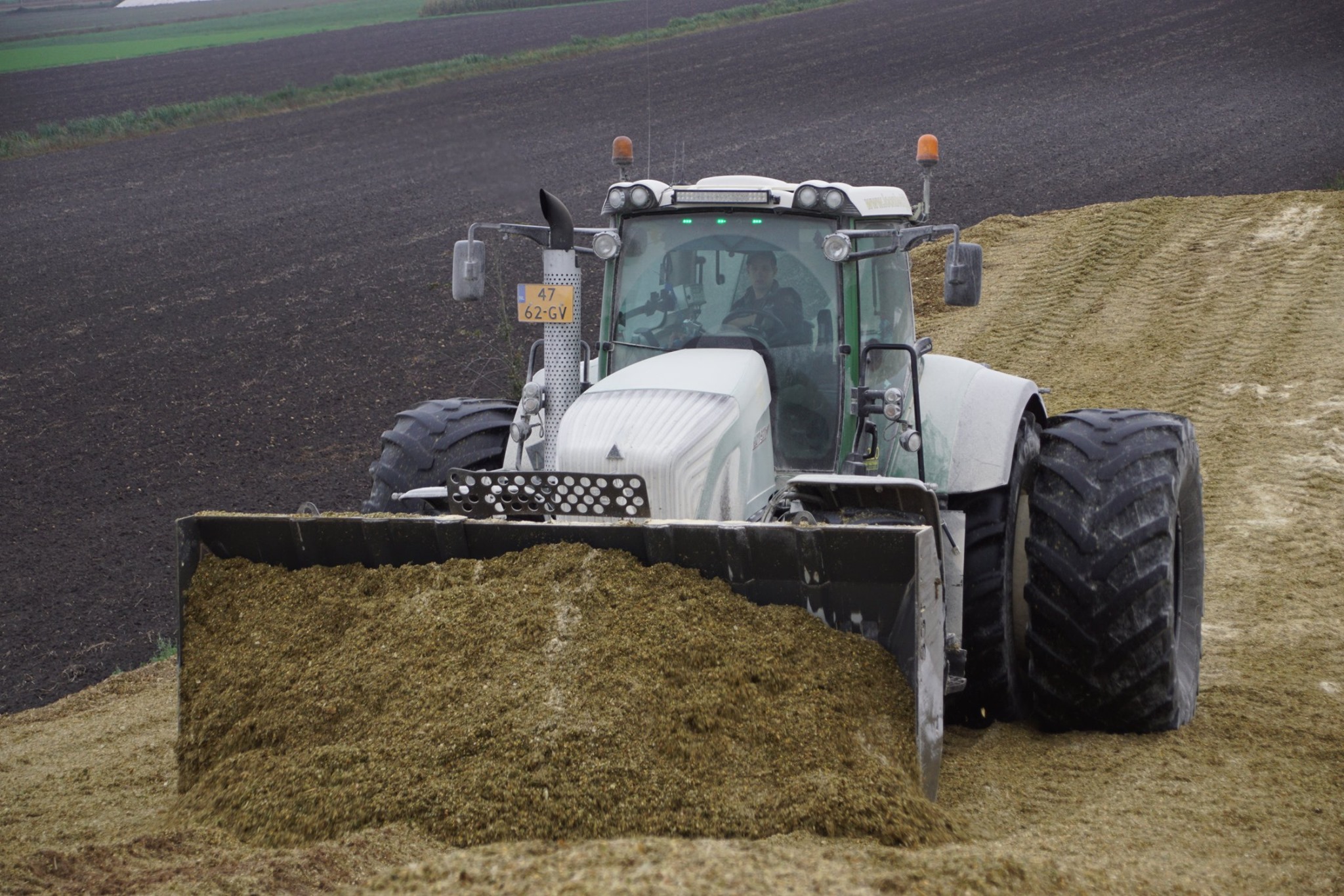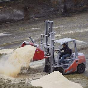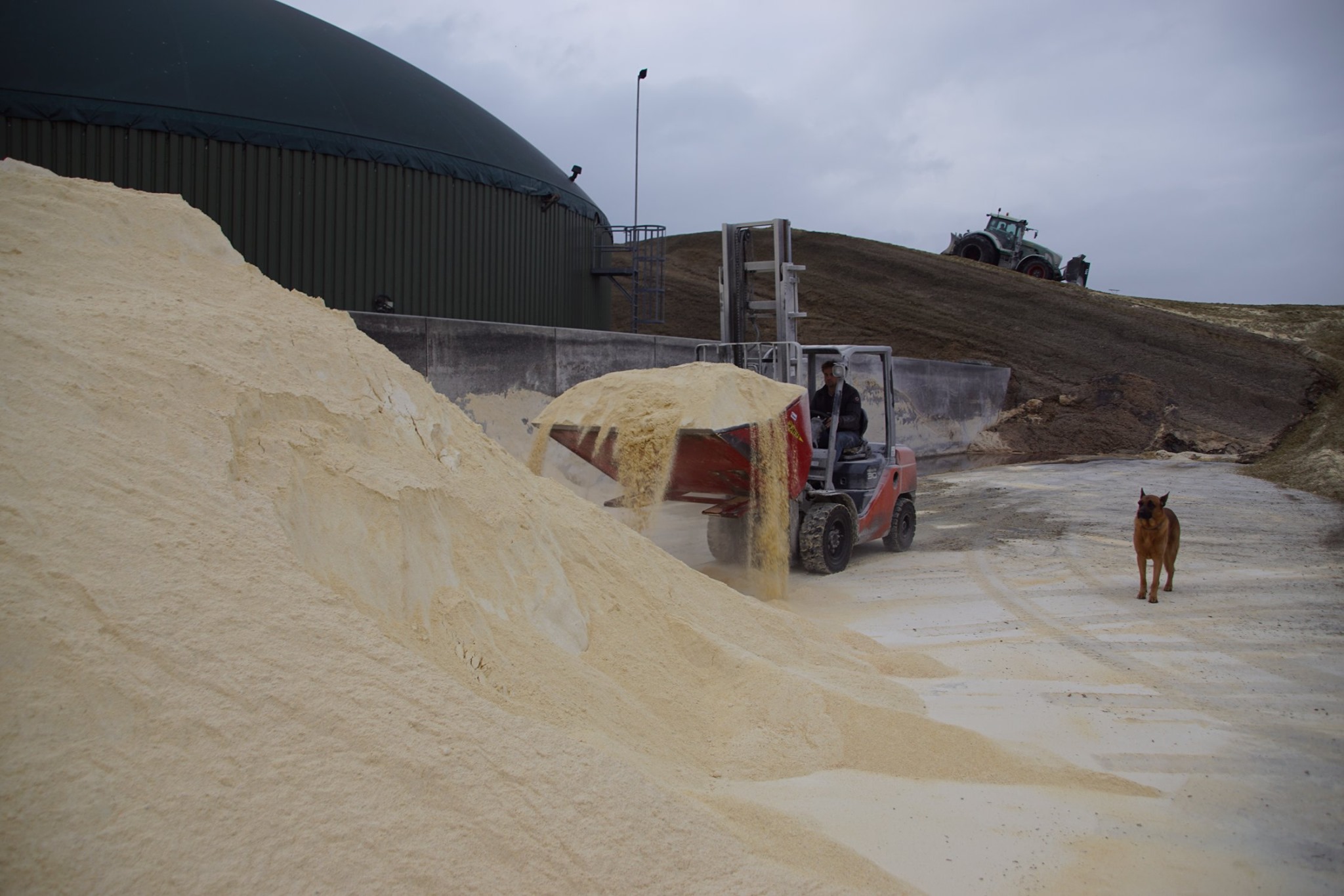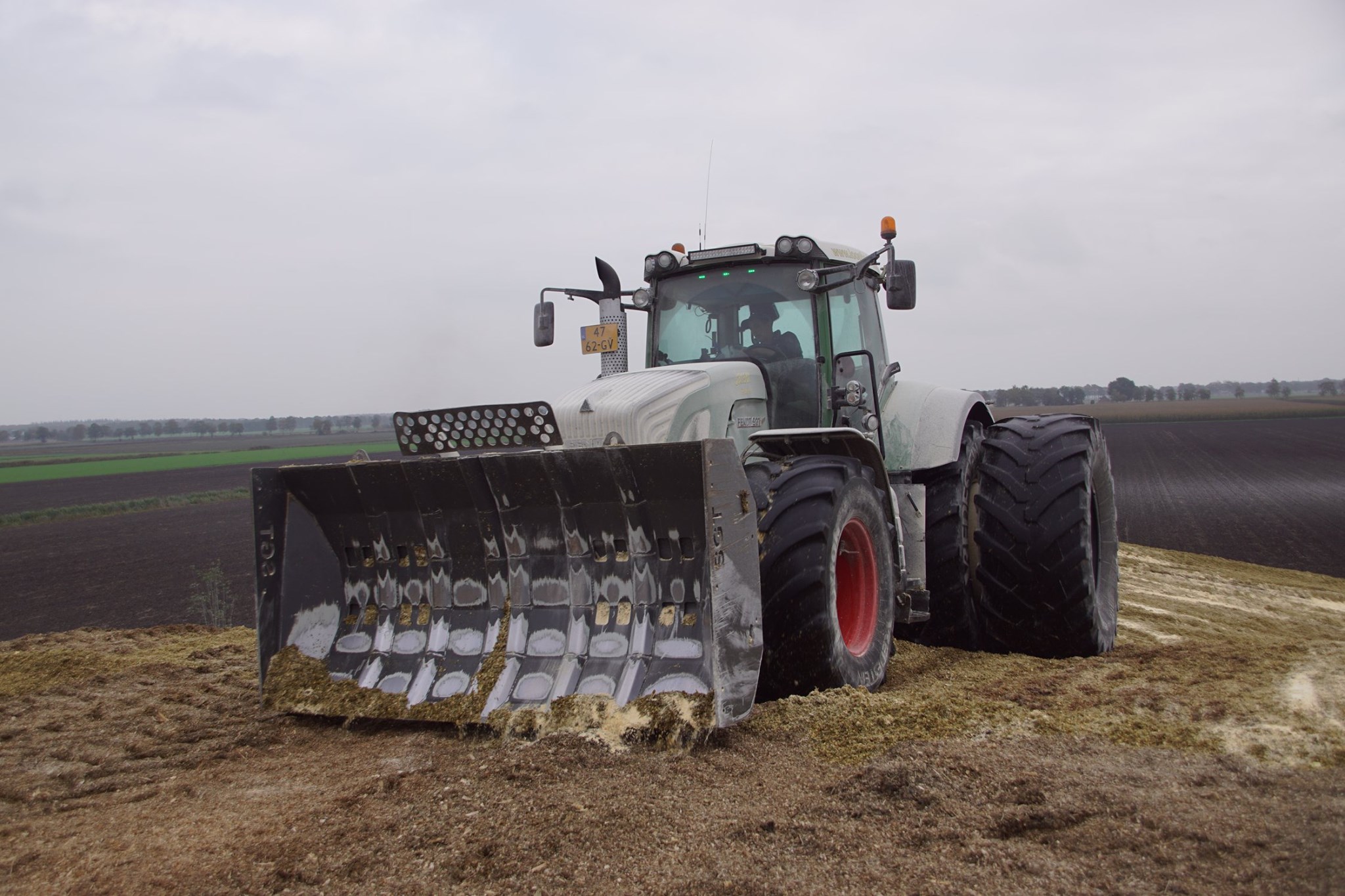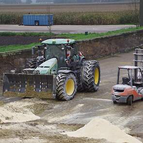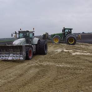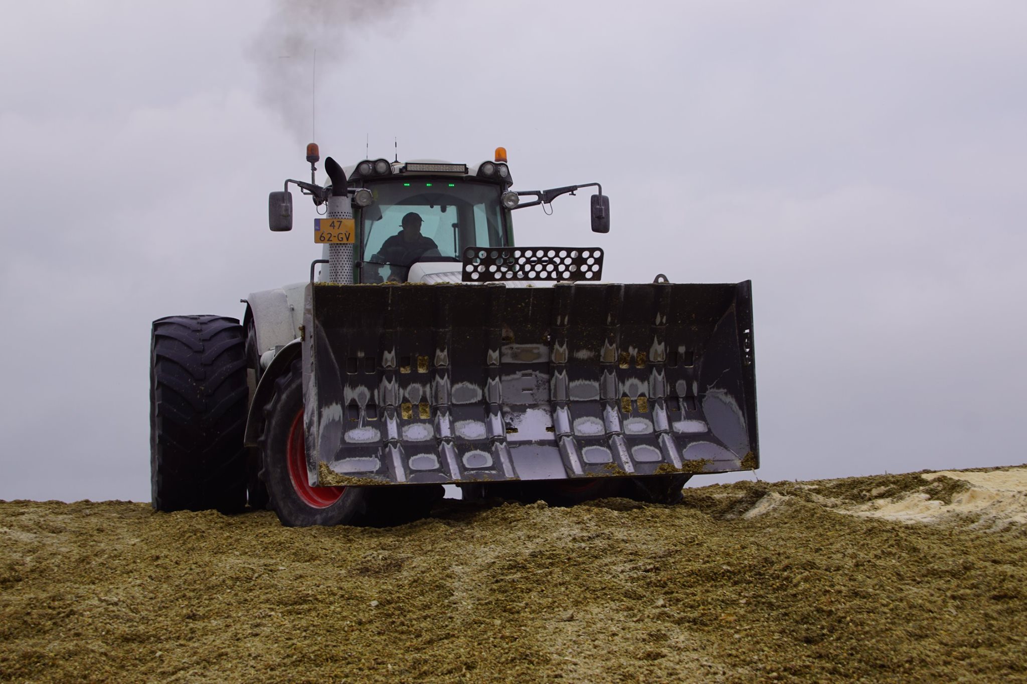 Biogasbedrijf Kloosterman druk bezig met het maken van een mega maiskuil.