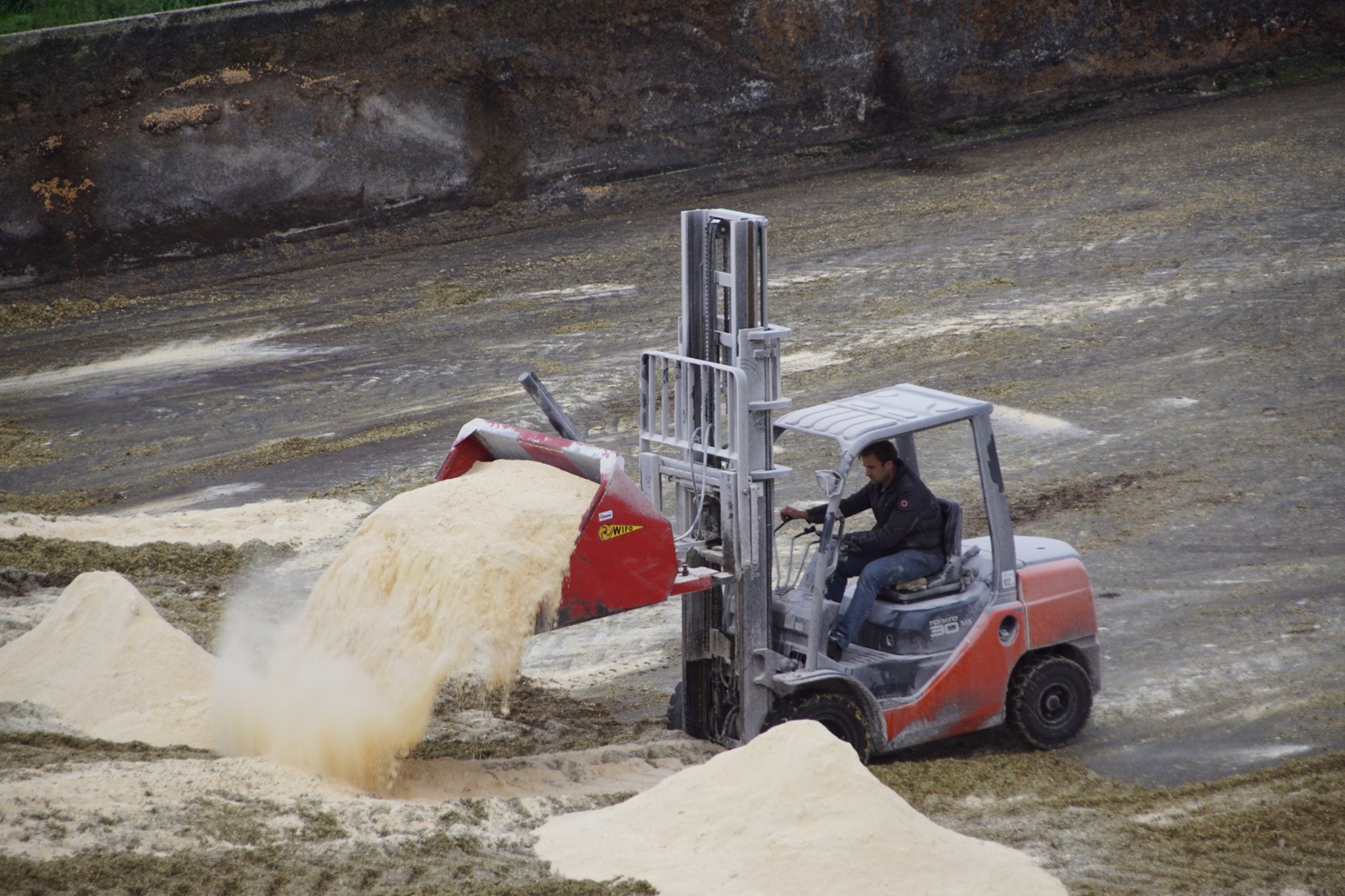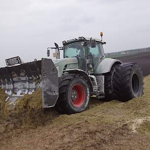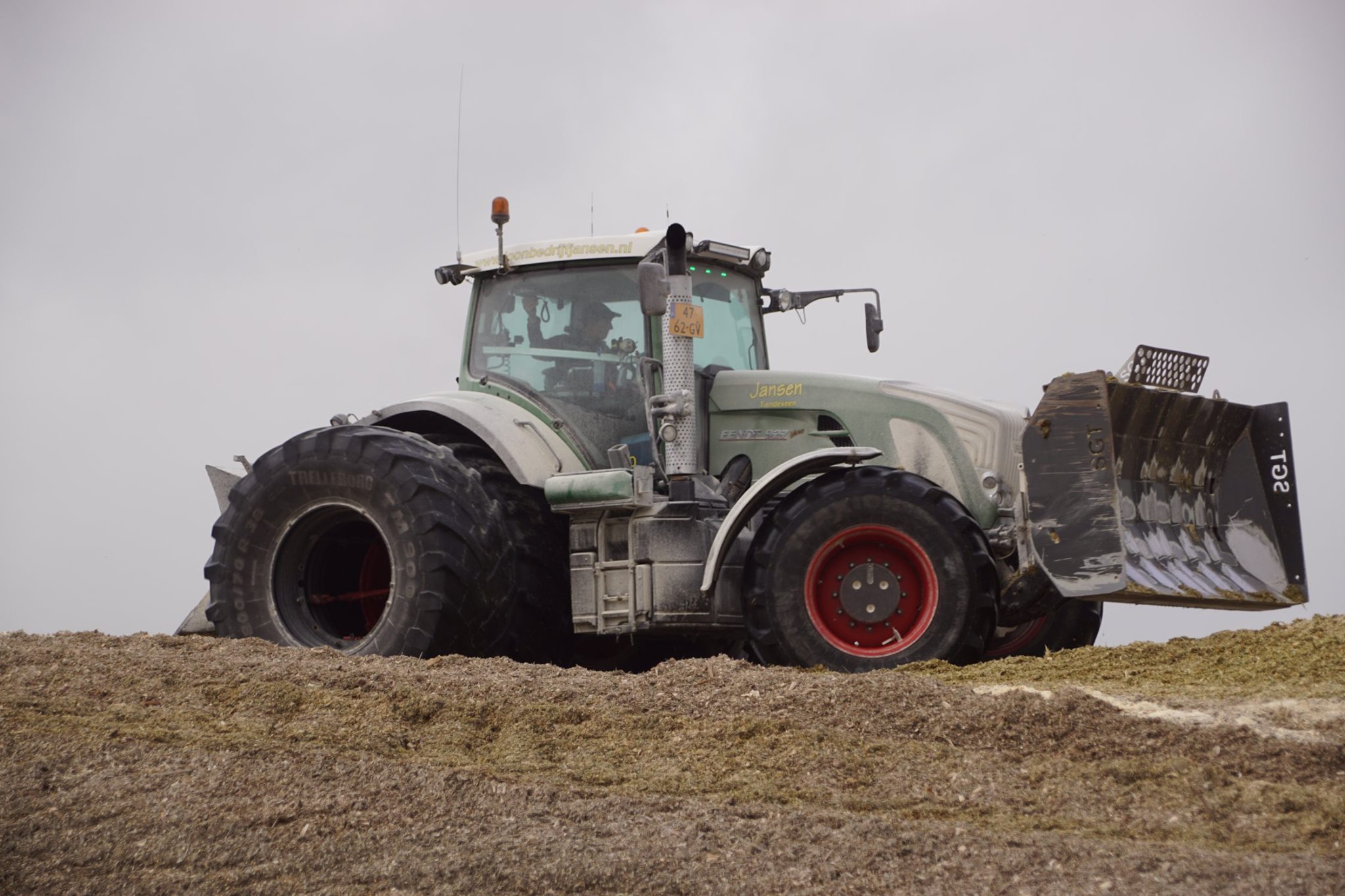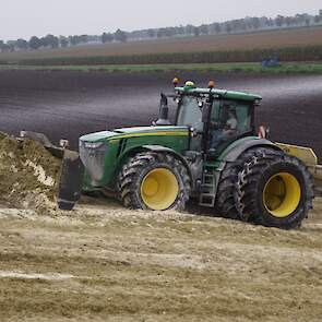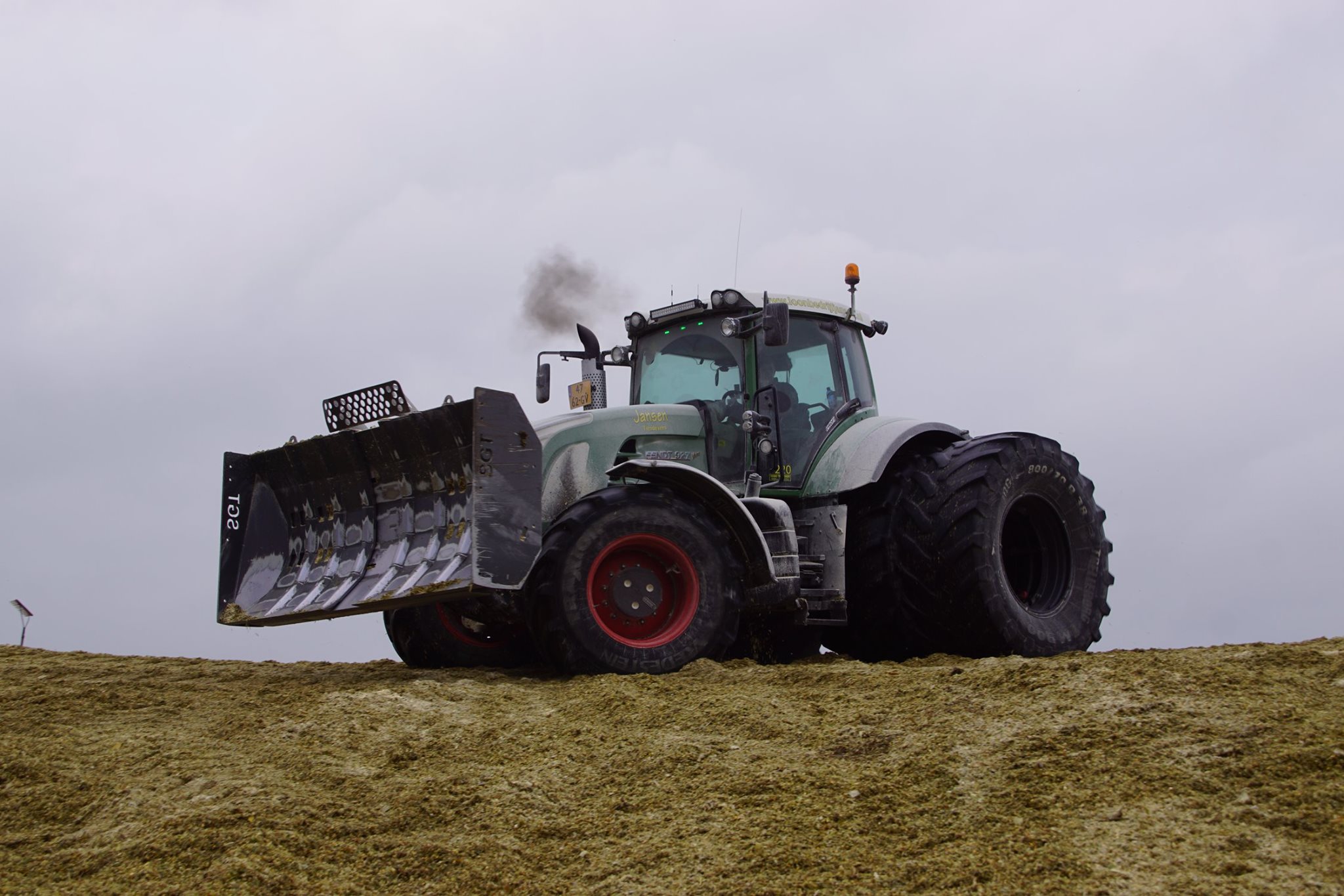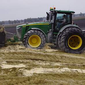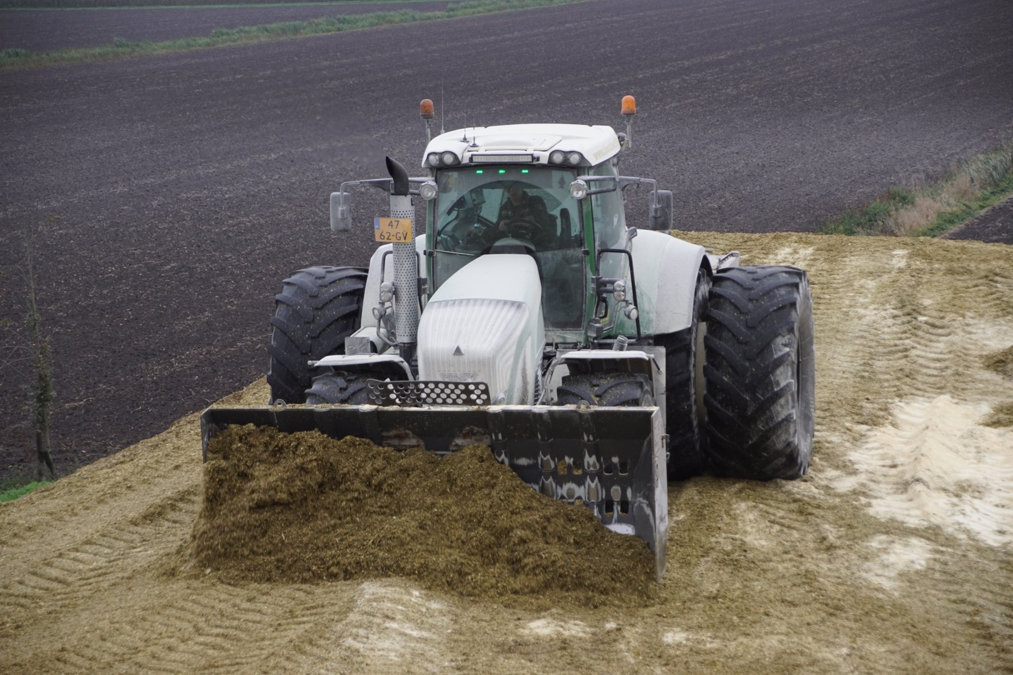 Biogasbedrijf Kloosterman druk bezig met het maken van een mega maiskuil.