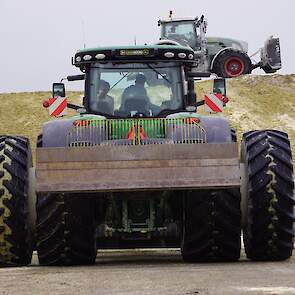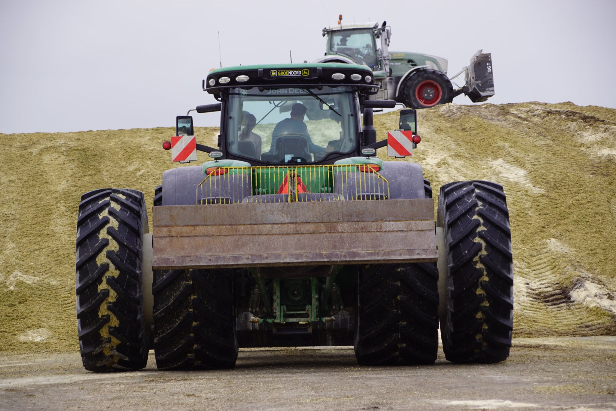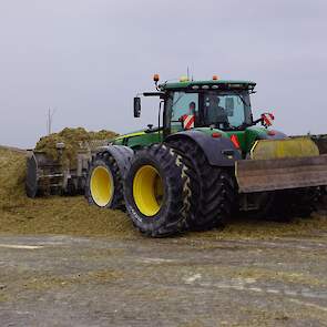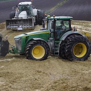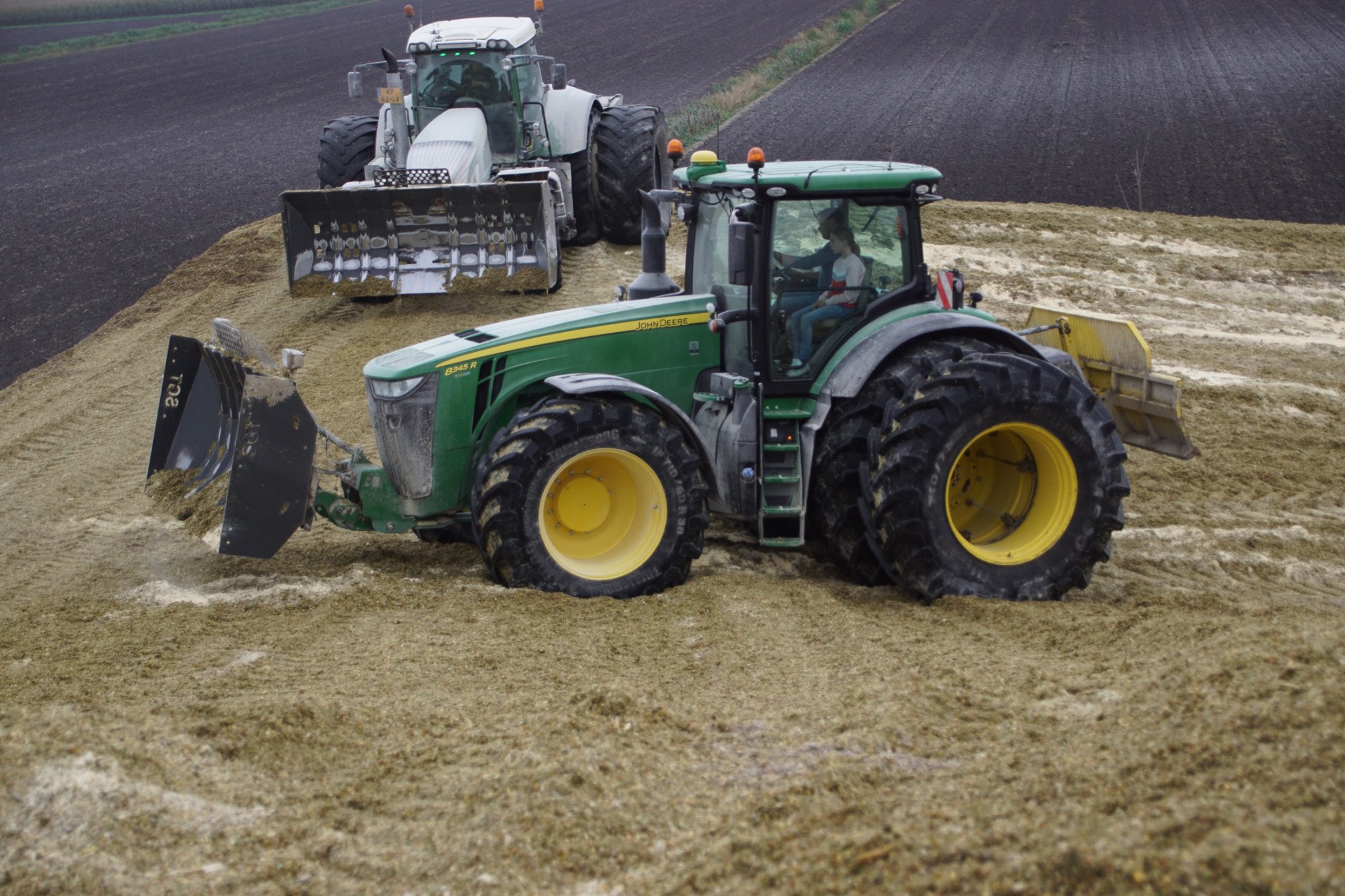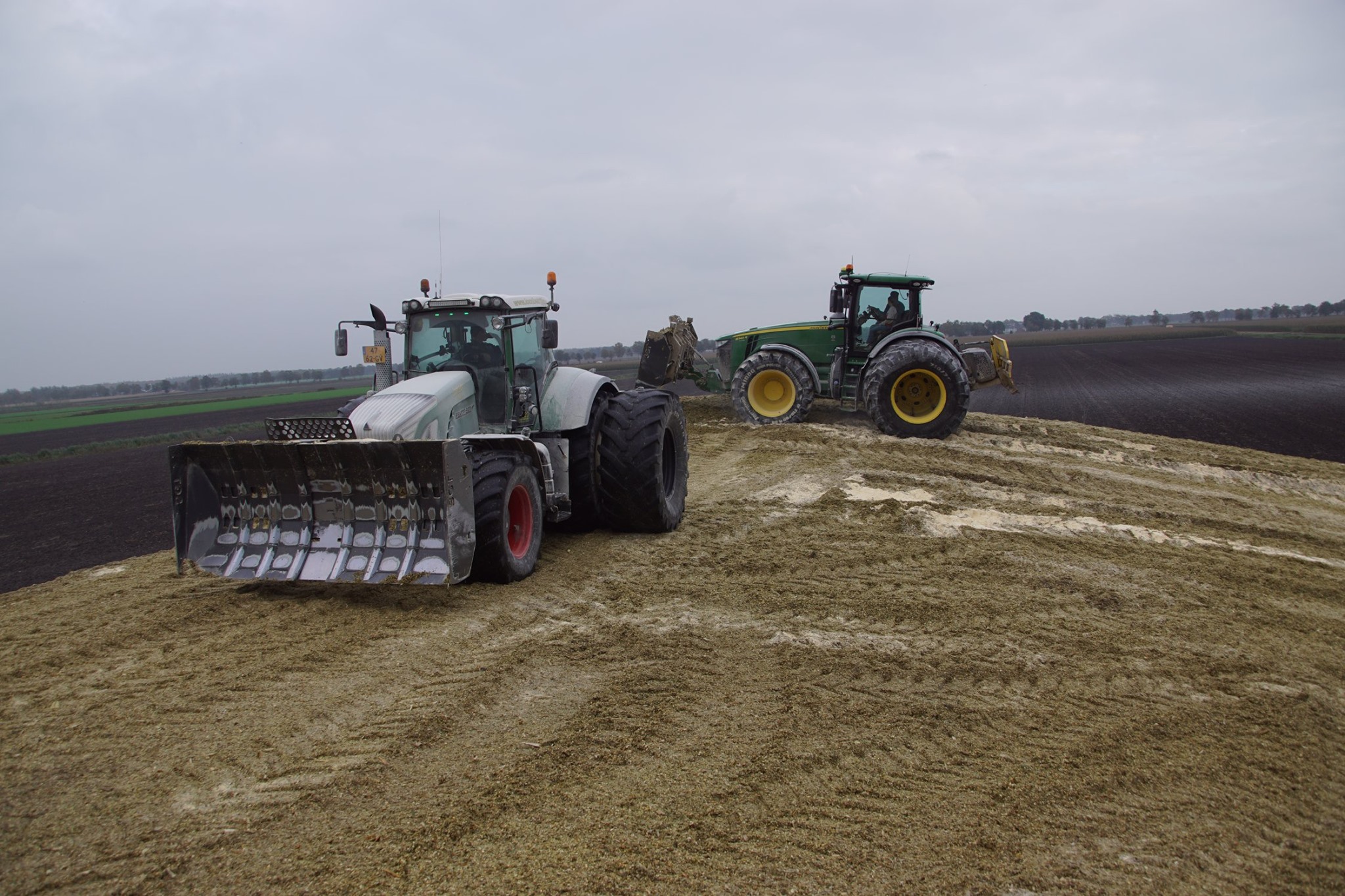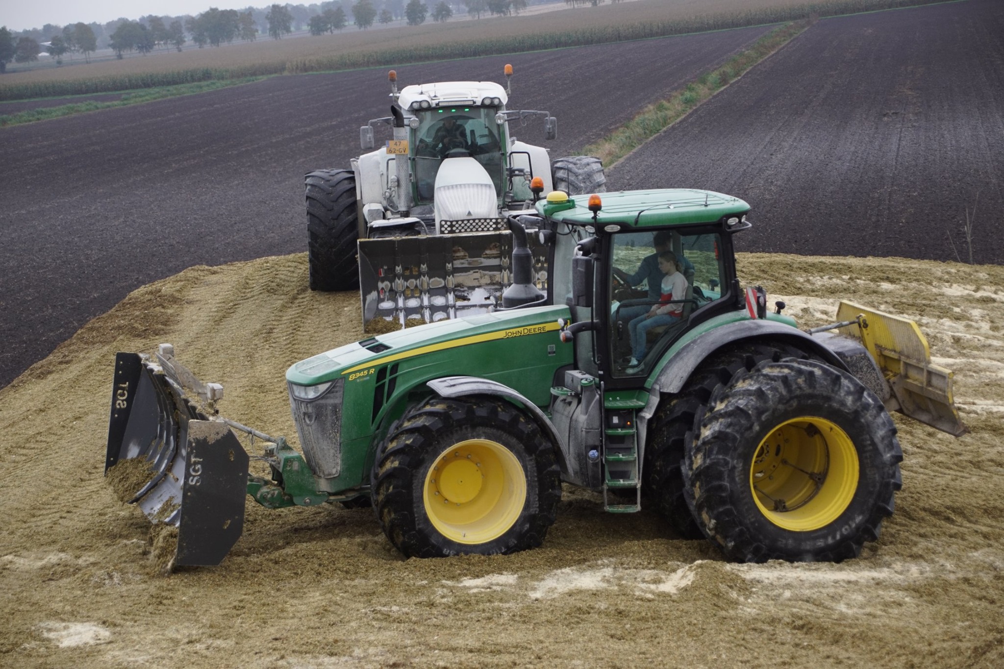 NieuwsTrekkersMaiskuil aanrijden XXL met John Deere 8345R en Fendt 927