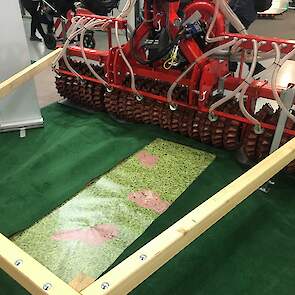 Een camera herkent open plekken en stuurt dienovereenkomstig het zaaiapparaat aan om precies waar nodig meer of minder bij te zaaien. Zo wordt veel duur graszaad bespaard. Het is nog een studiemodel, de komende tijd zal het systeem praktijkrijp worden gemaakt.