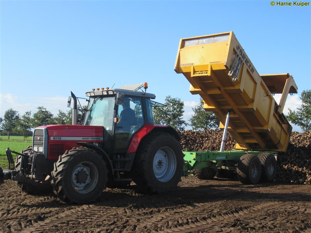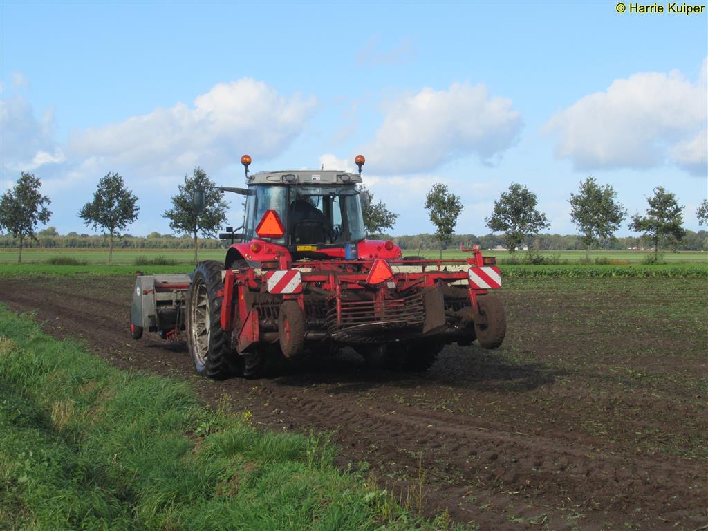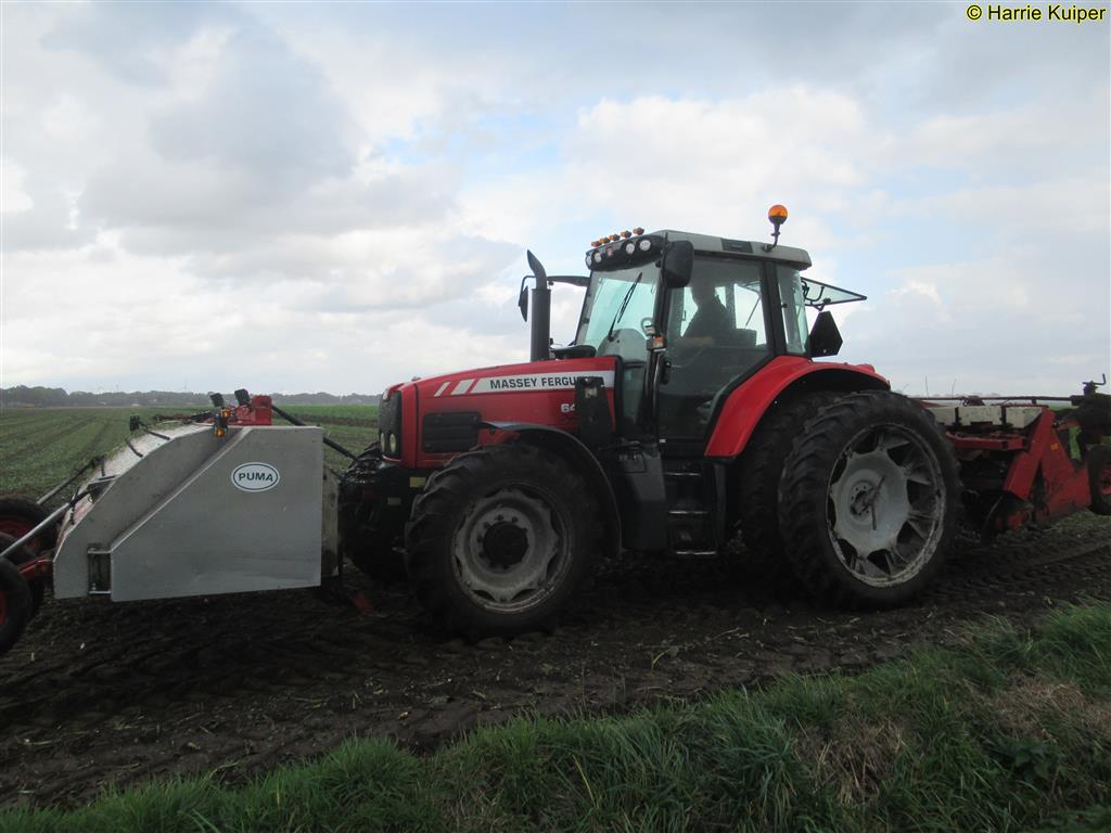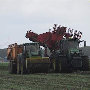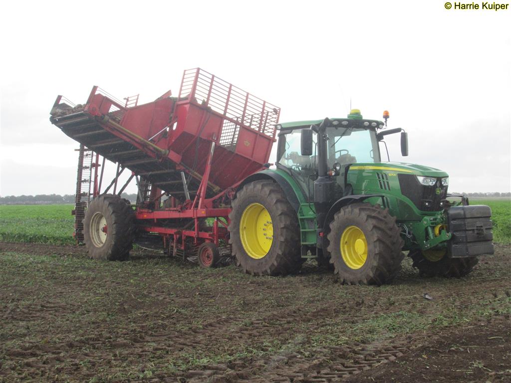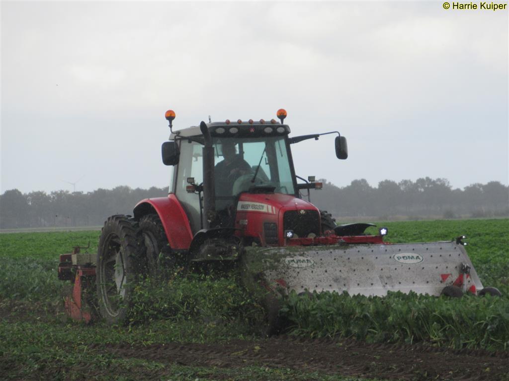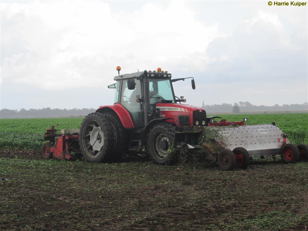 Massey Ferguson van Lammert Potze uit de Maten aan het bieten rooien achter Roswinkel. De lader met John Deere is van een collega-boer. Met bieten rooien werken ze altijd samen.