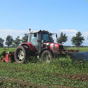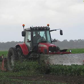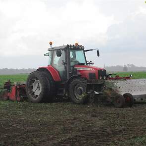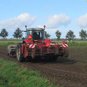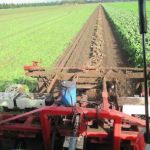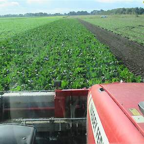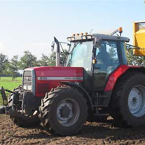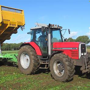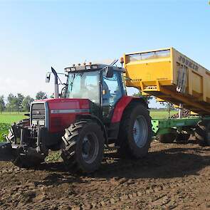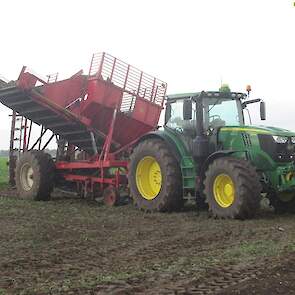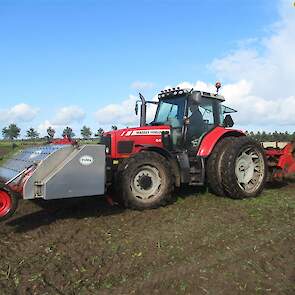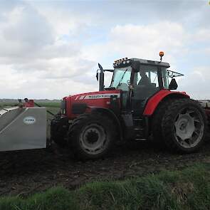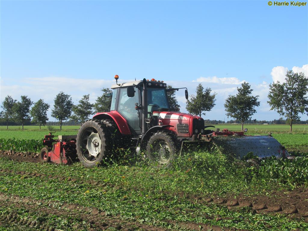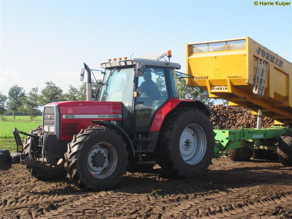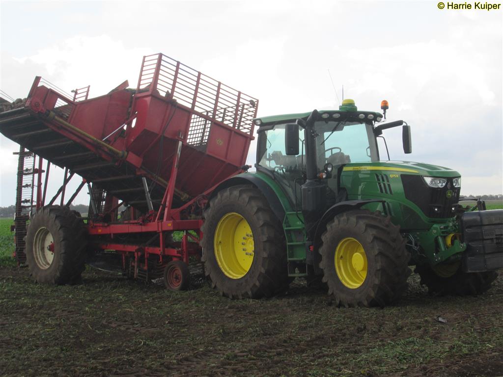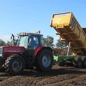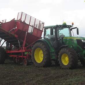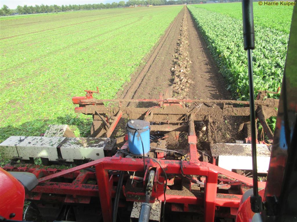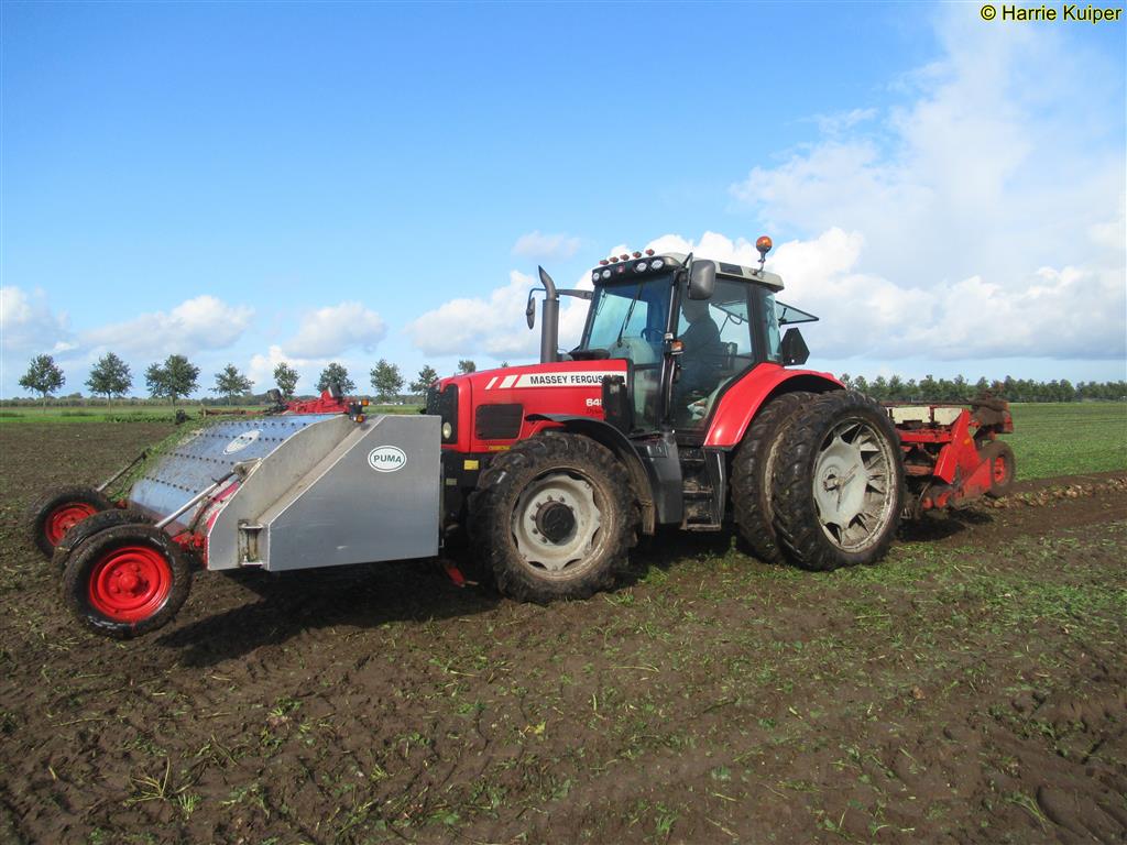 Massey Ferguson van Lammert Potze uit de Maten aan het bieten rooien achter Roswinkel. De lader met John Deere is van een collega-boer. Met bieten rooien werken ze altijd samen.