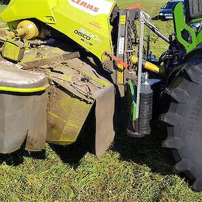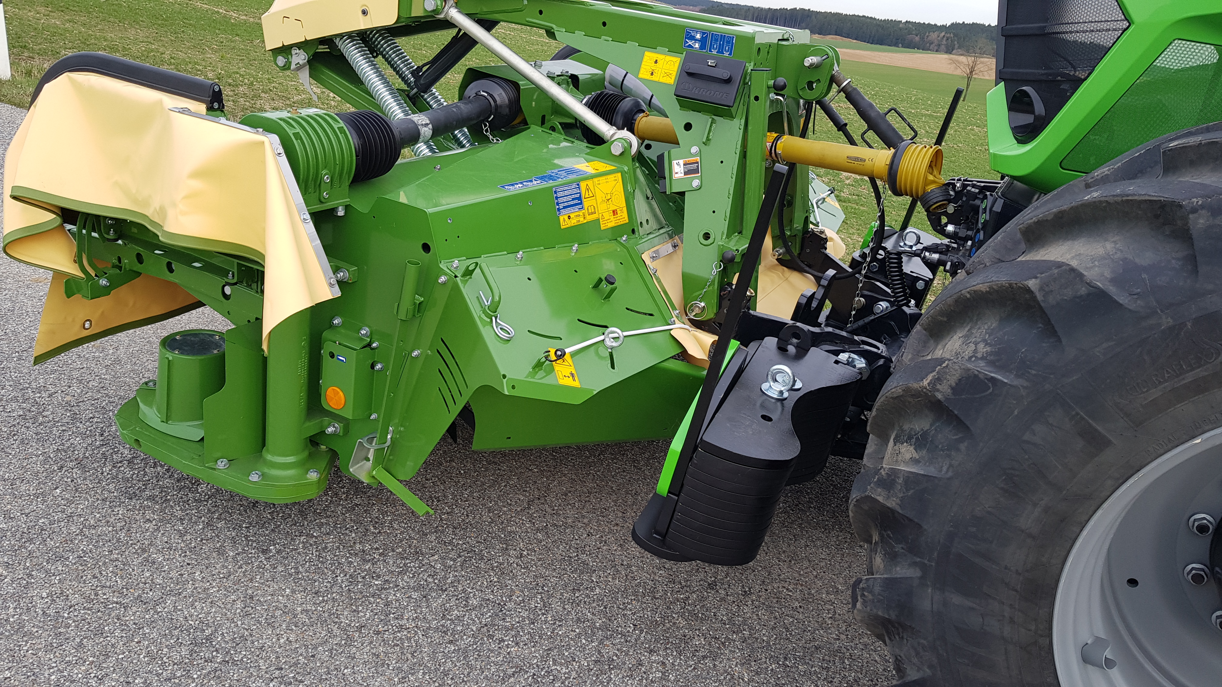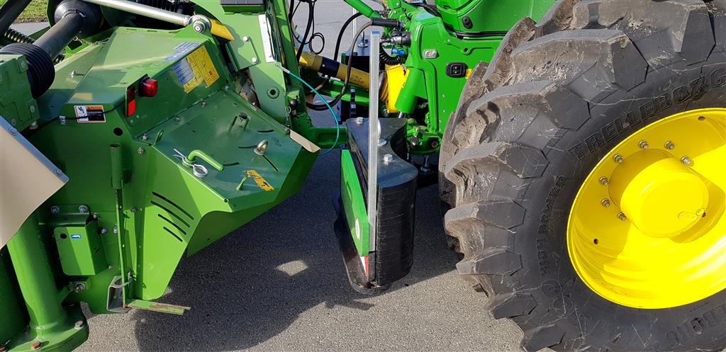 Bij gebruik van tractoren tot ca. 9 ton eigengewicht ontstaat er echter een bijkomend nadeel bij 1000 kilo zwaardere achtermaaiers. Immers als de frontmaaier zn werk doet ontlast deze de fronthef en vooras van de trekker omdat de maaier in een eigen frame hangt, daarin op en neer beweegt en over de grond sleept. Ga je dan op de gps maaien dan is de kans op dwaling en signaalverlies groot. Zeker wanneer het heuvelachtiger wordt en de ondergrond nog vochtig / nat is, is de kans groter dat het systeem niet goed werkt. Er zijn gebieden in Nederland waar dat een rol kan spelen. Kijken we naar de landen om ons heen dan is dit probleem ineens heel groot. Op steile hellingen is de drift zo groot dat het op gps totaal niet gaat. Tot voor kort stond menig ingenieur voor een raadsel. Druk in het hydraulisch systeem van de maaier aanpassen, water in de voorbanden, oplossingen waar men vanaf de tekentafel mee kwam. Of de gps dan maar helemaal uitzetten en op zicht verder maaien. Daar sta je dan met je modernste investering en scheef afgesleten, hobbelende voorbanden en alle verdere kosten en gevolgen van dien. Met een Agribumper veilig frontgewicht is elk probleem eenvoudig op te lossen met bijvoorbeeld een 900 kg of 1200 kg versie. Deze past er bij de meeste trekkertypes en machines gewoon tussen, omdat de aanbouw van deze revolutionaire gepatenteerde trekkerbumper anders is.