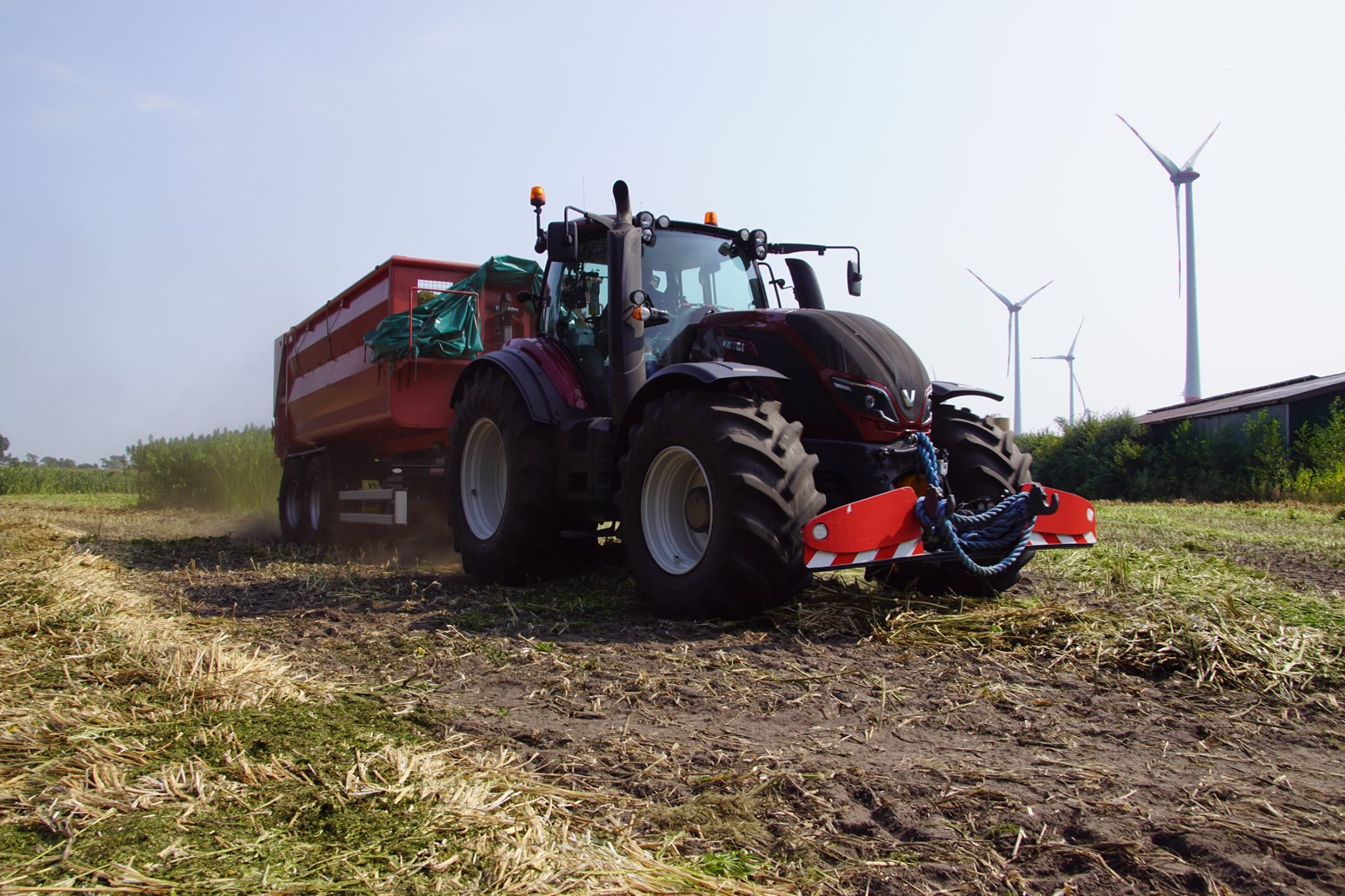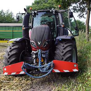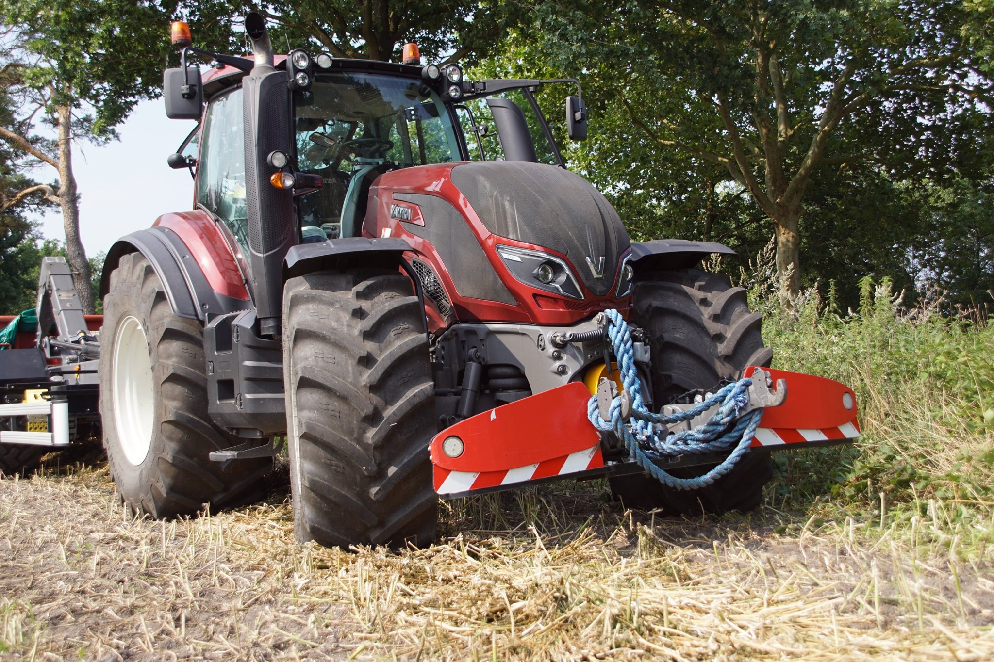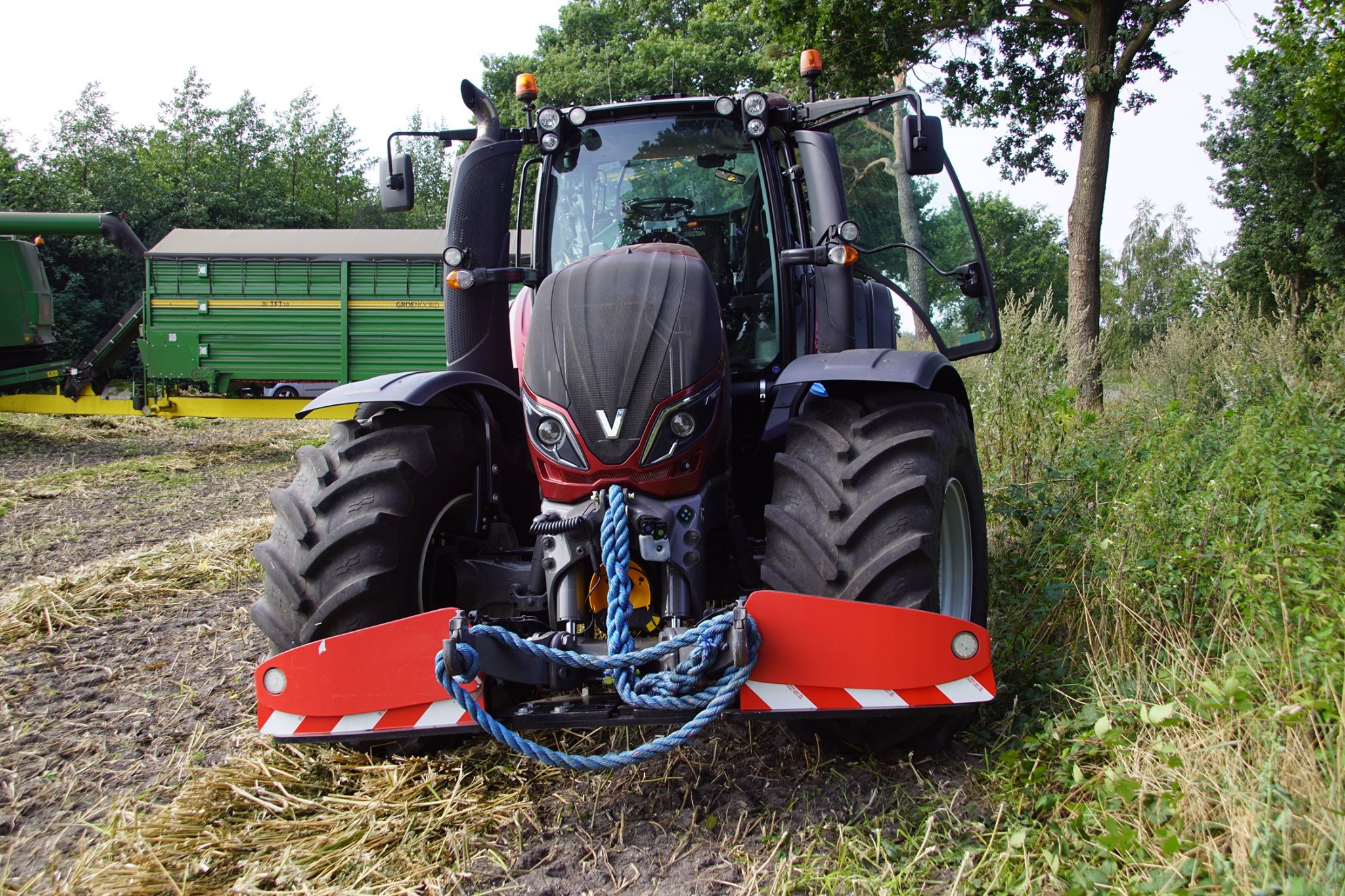 Een mooie Agribumper-bumper voor op deze Valtra van Haijo van Lessen die wordt ingezet bij het transport van hennep.