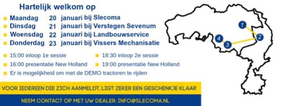 New Holland maakt een tour door Zuid-Nederland bij onderstaande dealers.