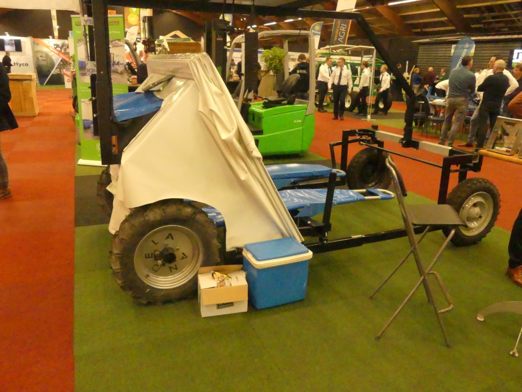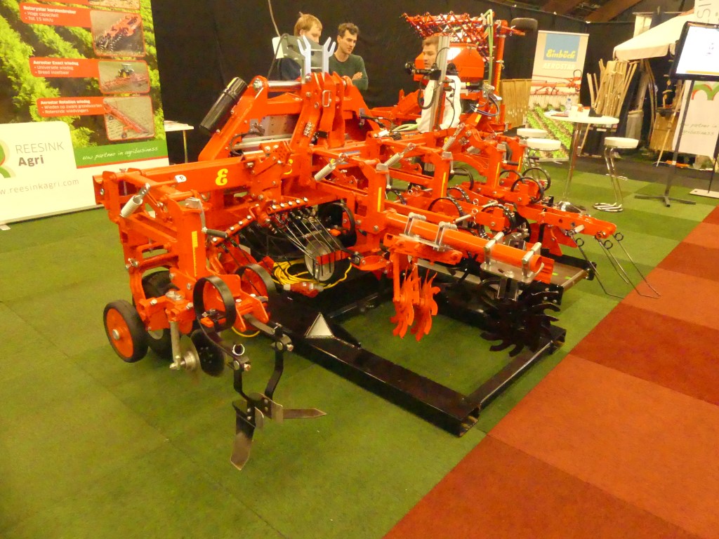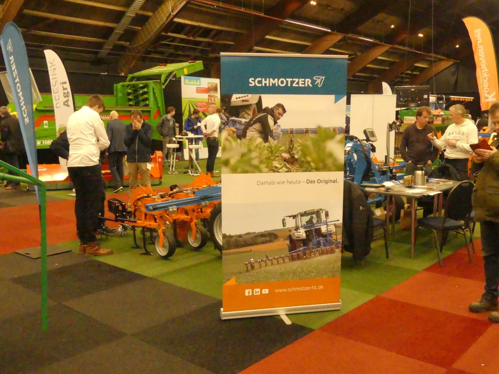 BioMechaTech-hal met een meet&greet-terras en stands met techniek en mechanisatie voor de biologische landbouw.