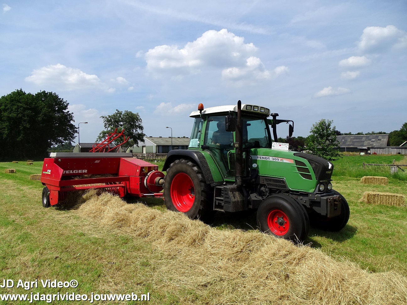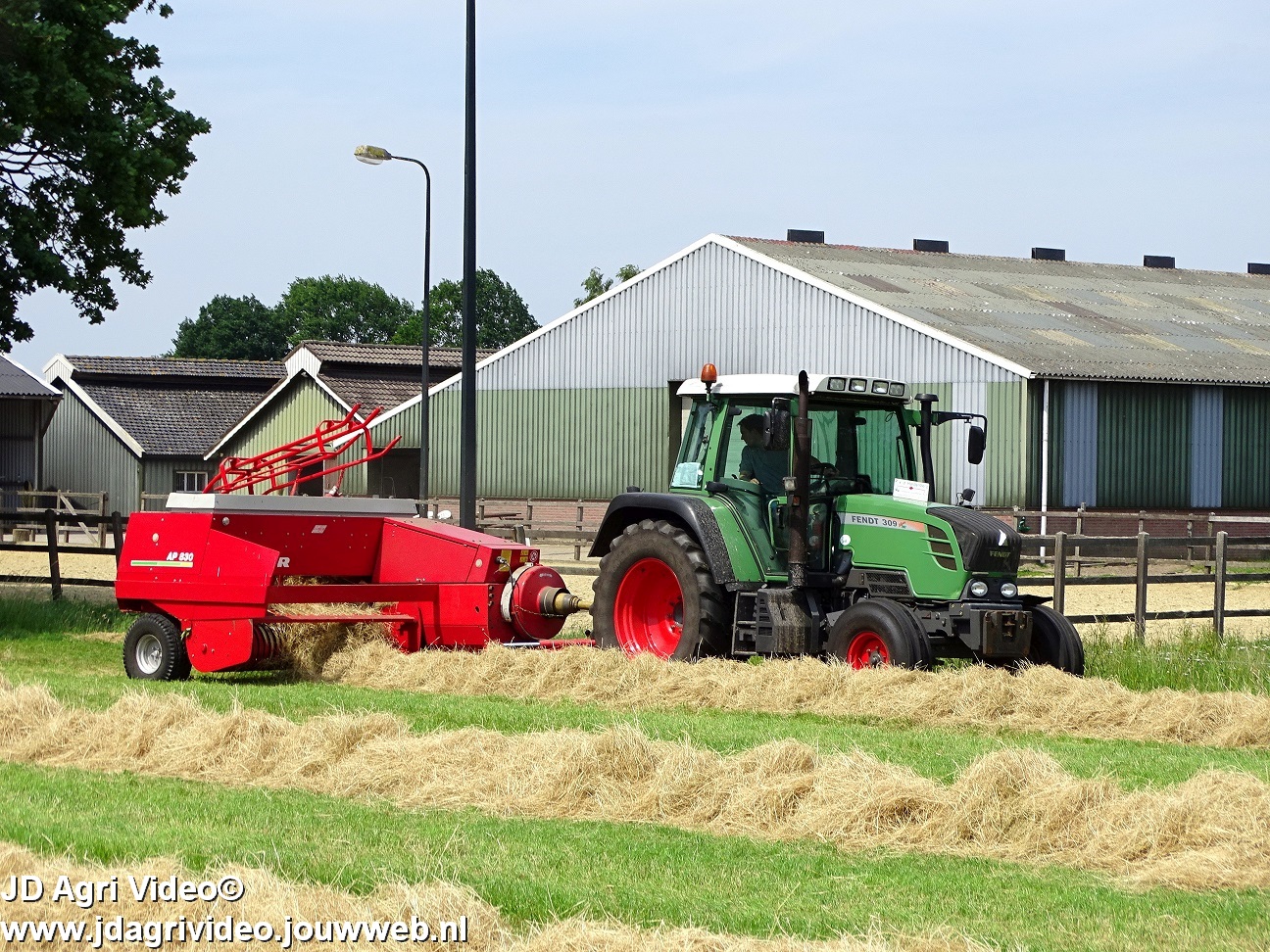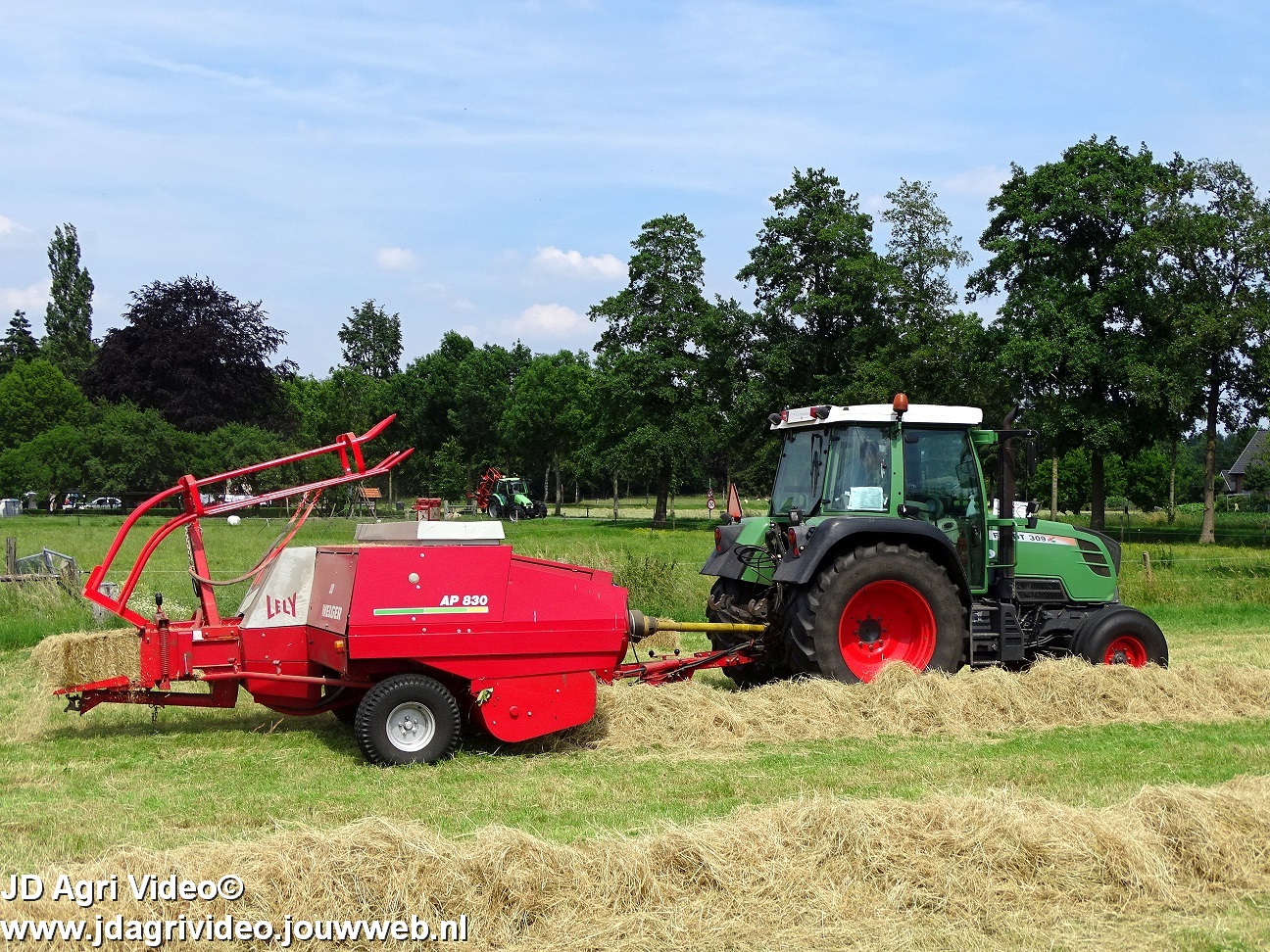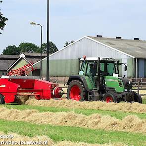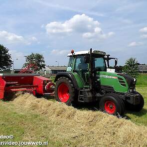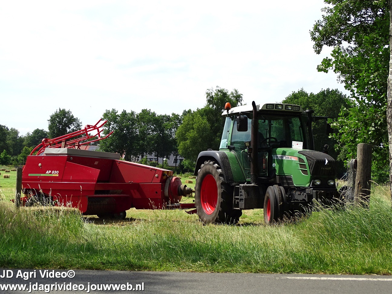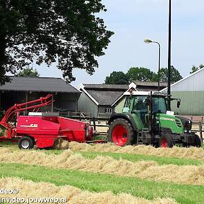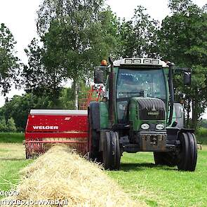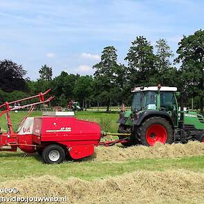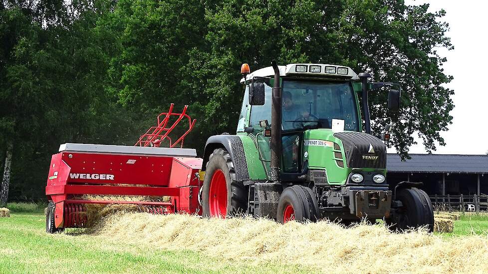 Loonbedrijf P. van den Hardenberg uit Elspeet aan het hooibalen persen met een Fendt 309 Vario TMS met een Welger AP 820-balenpers.