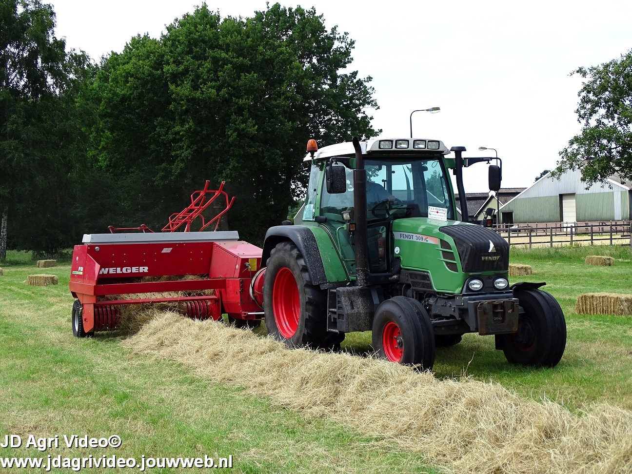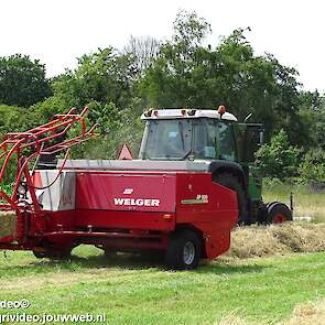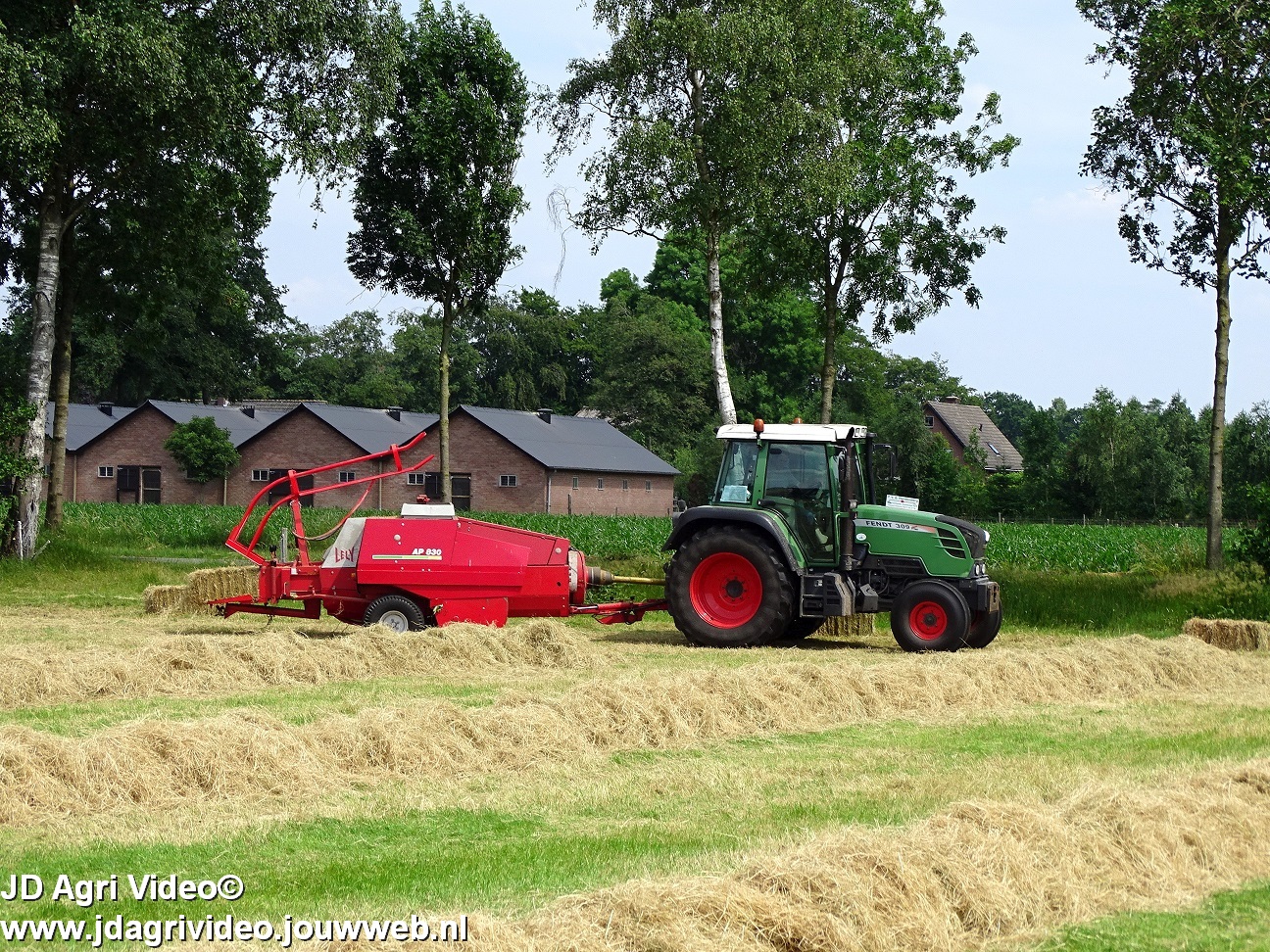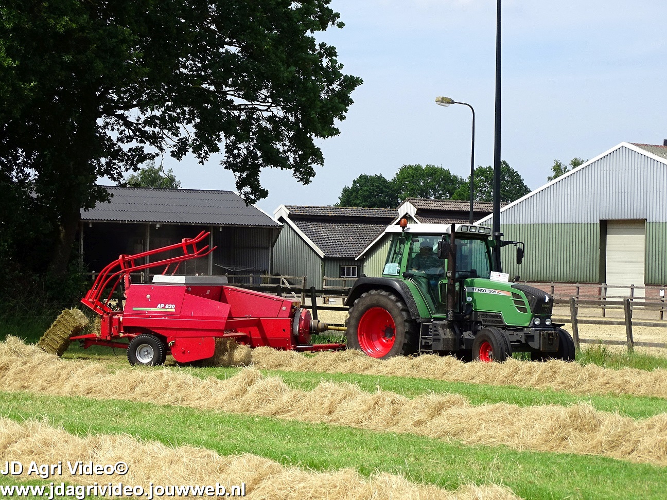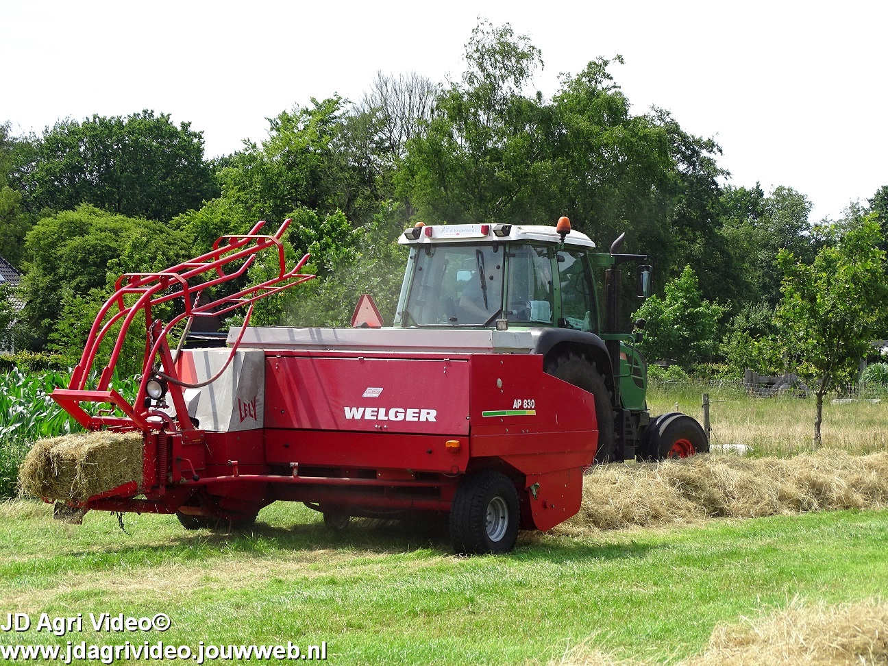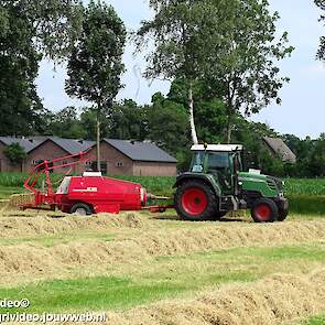 Loonbedrijf P. van den Hardenberg uit Elspeet aan het hooibalen persen met een Fendt 309 Vario TMS met een Welger AP 820-balenpers.