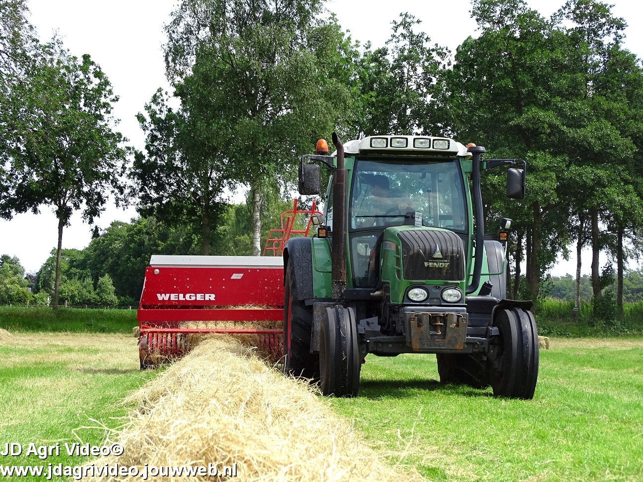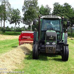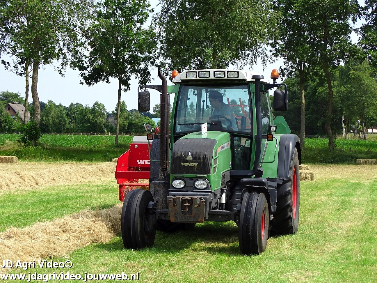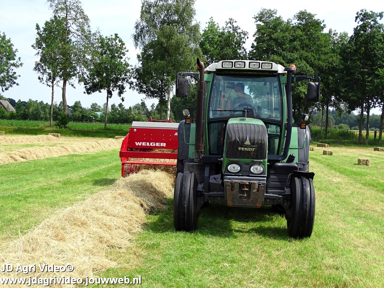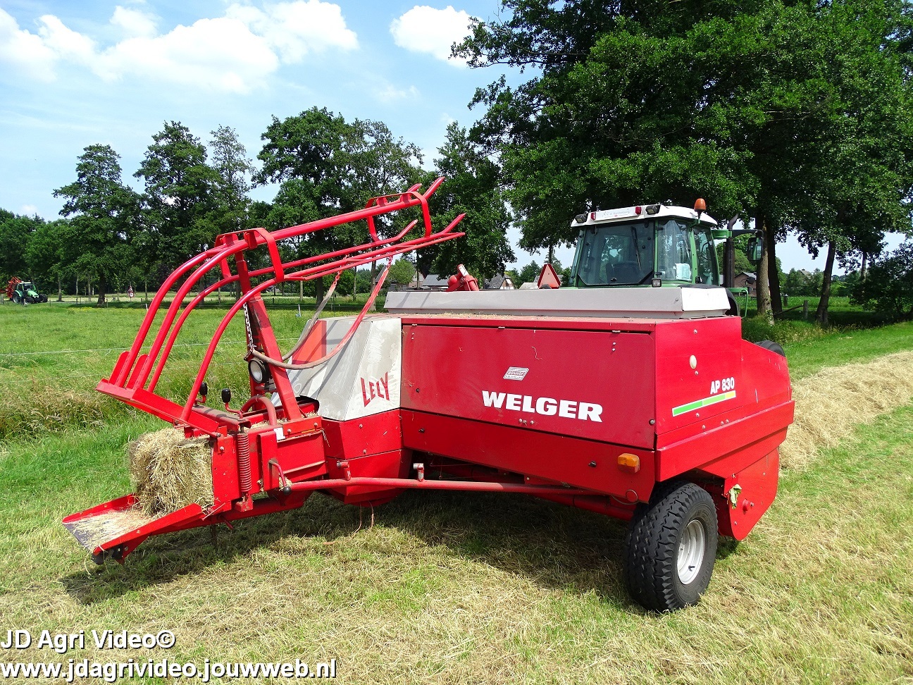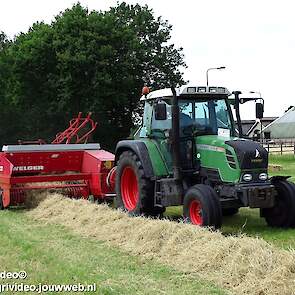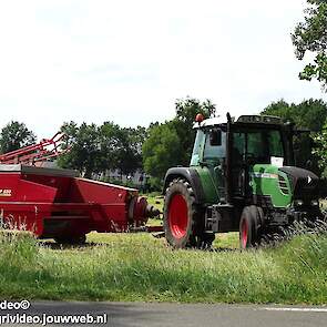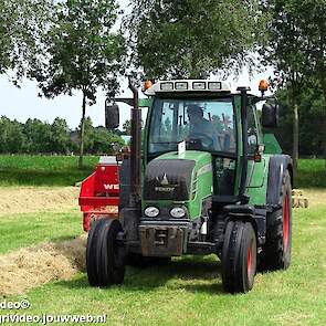 Loonbedrijf P. van den Hardenberg uit Elspeet aan het hooibalen persen met een Fendt 309 Vario TMS met een Welger AP 820-balenpers.