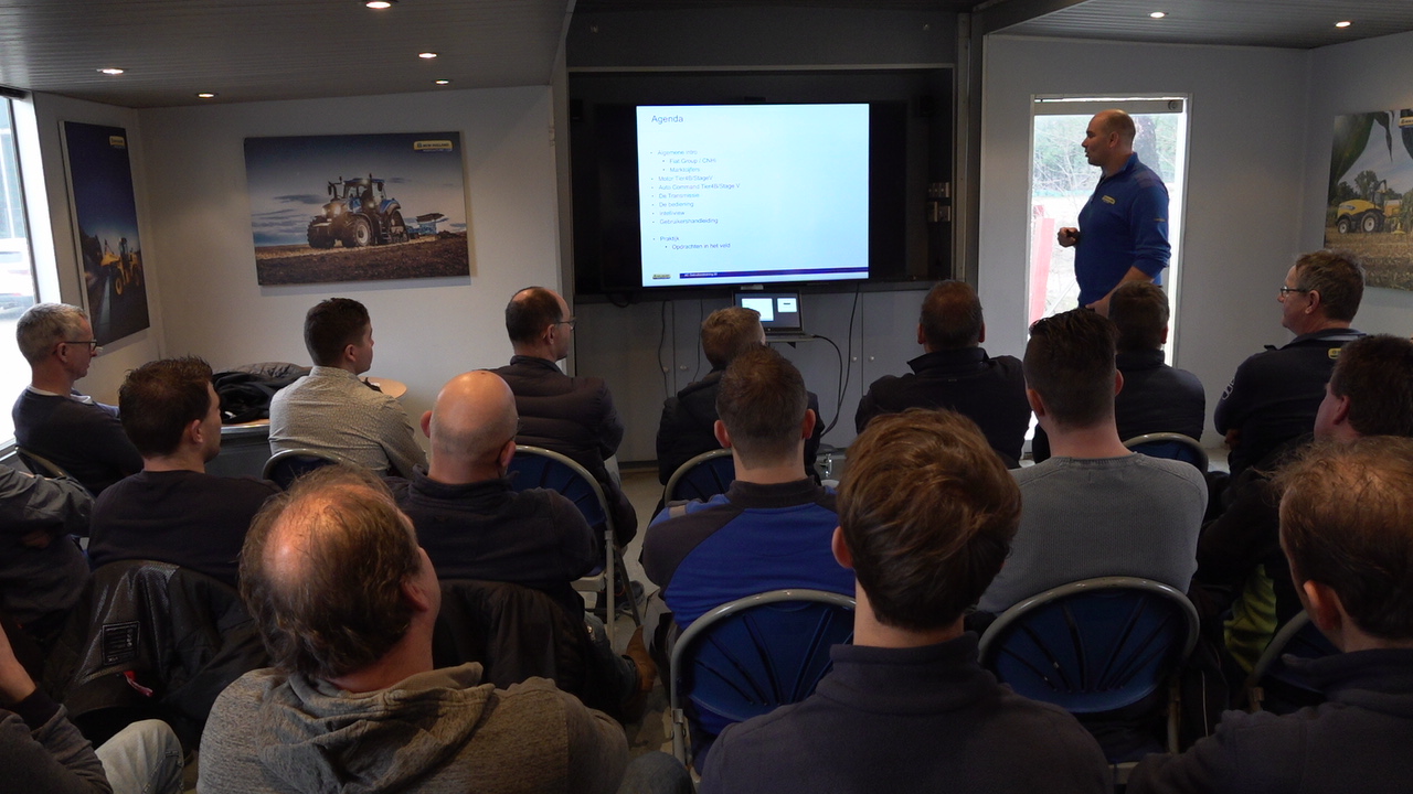 Chauffeurs krijgen training bij New Holland. De gehele week ontvangen eindgebruikers uitleg over specifieke toepassingen van de nieuwe trekker welke zij afgelopen jaar aangeschaft hebben. De chauffeurs krijgen in een programma van vier uur een theoretische en praktische uitleg over de Autocommand-transmissie, Dynamic Command en RTK GPS. Tijdens het praktijkgedeelte van de training staan er trekkers klaar met verschillende werktuigen, waar de cursisten aan de hand van opdrachten de theorie in de praktijk kunnen gaan brengen.