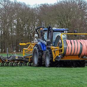 Loonbedrijf Donselaar uit Woudenberg aan het sleepslangen.