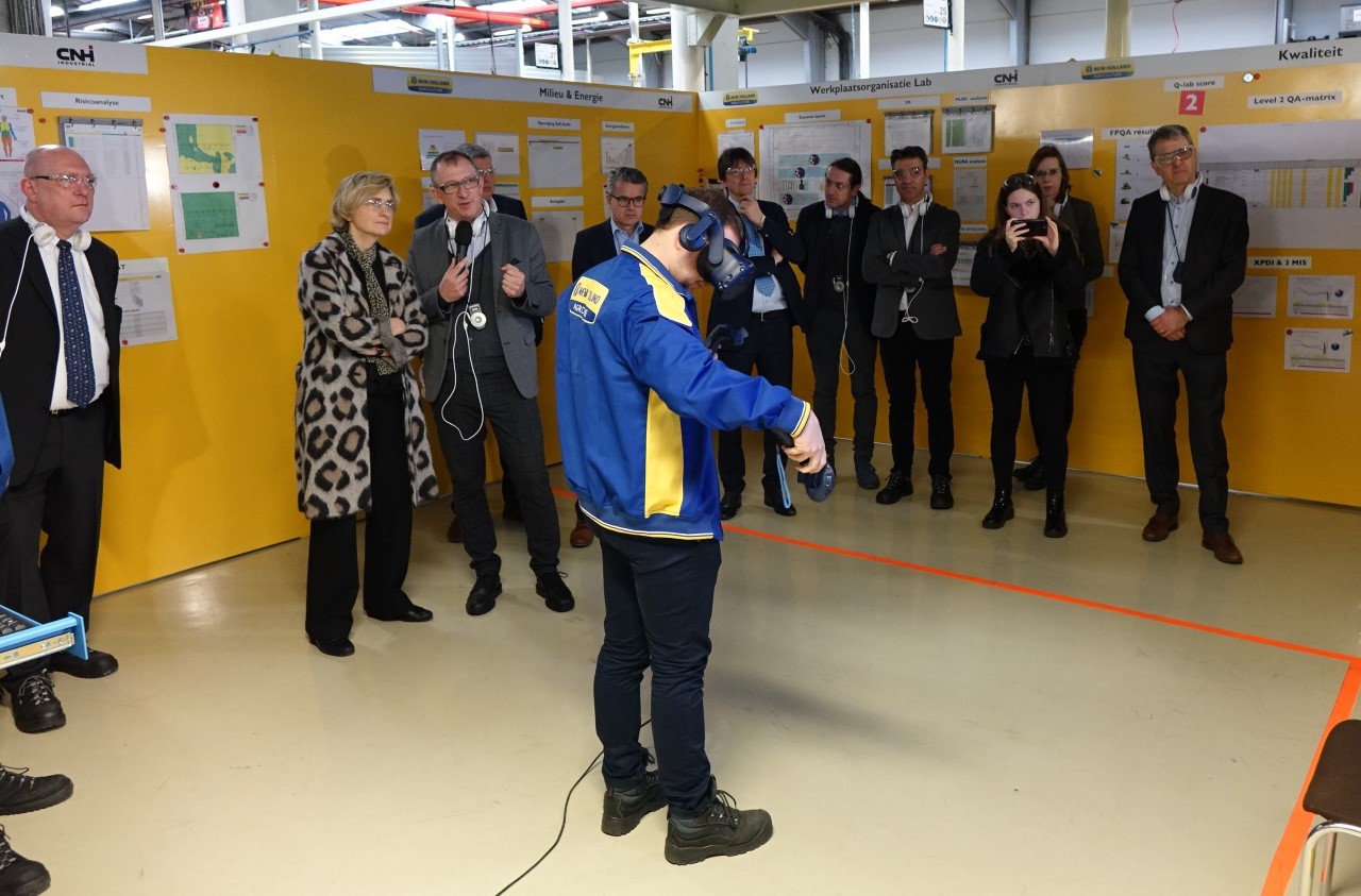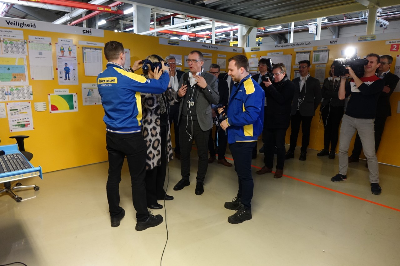Tijdens het bezoek aan de assemblagelijn van de grote pakkenpers (waar later dit jaar de productie van de nieuwe High Density Big Baler van start gaat), kreeg minister Crevits een aantal demonstraties te zien van werkbaar werk in de praktijk. Eén van de productiemedewerkers toonde hoe hij bij het verschroeven live begeleid wordt via een scherm. Op het scherm ziet de medewerker wat de volgende actie is die hij of zij moet uitvoeren. Op die manier wordt de kans op fouten zo goed als uitgesloten. Op een andere plaats draagt een medewerker een exoskelet tijdens het uitvoeren van zijn taak. Een exoskelet is een bovenpak waarbij armen en schouders worden ontlast bij het tillen van zware objecten. Luc Nauwynck, Human Resource Director Benelux vertelt: We zetten sterk in op technologie en innovatie om zowel de cognitieve belasting van onze medewerkers te verminderen, als de ergonomie te verbeteren. Daarnaast besteden we de nodige aandacht aan de work/ life balans. Zo zijn we in 2018 van start gegaan met telewerken en dit jaar initiëren we een Industry 4.0 pilootproject omtrent primaire preventie van stress en burn-out. Ook hechten we in Zedelgem veel belang aan de ontwikkeling van onze medewerkers, werken we met zelfsturende teams en tonen we ons maatschappelijk engagement door leerlingen en studenten warm te maken voor techniek, in te zetten op duaal leren en het schooljaar rond scholen uit te nodigen om kennis te maken met ons bedrijf. CNH Industrial Zedelgem opende tijdens de Open Bedrijvendag in 2019 zijn deuren voor het grote publiek. Met meer dan 10.000 bezoekers was de machinebouwer het meest bezochte bedrijf in Vlaanderen, een mooie illustratie van de brede interesse in het bedrijf.